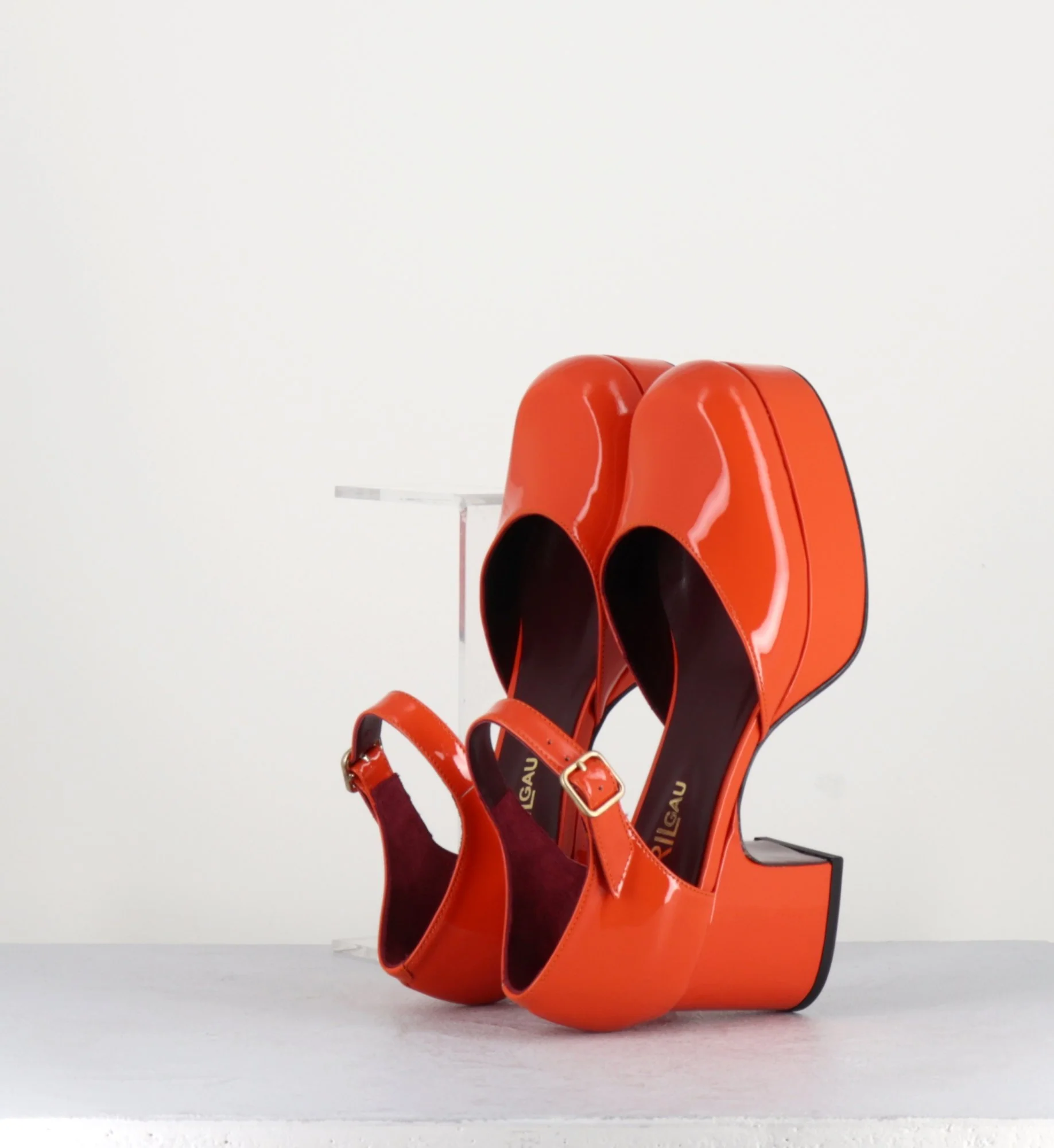 Babies 70s à plateforme en cuir vernis orange Garrice x Avril – MALAGA R72 PERSIMON