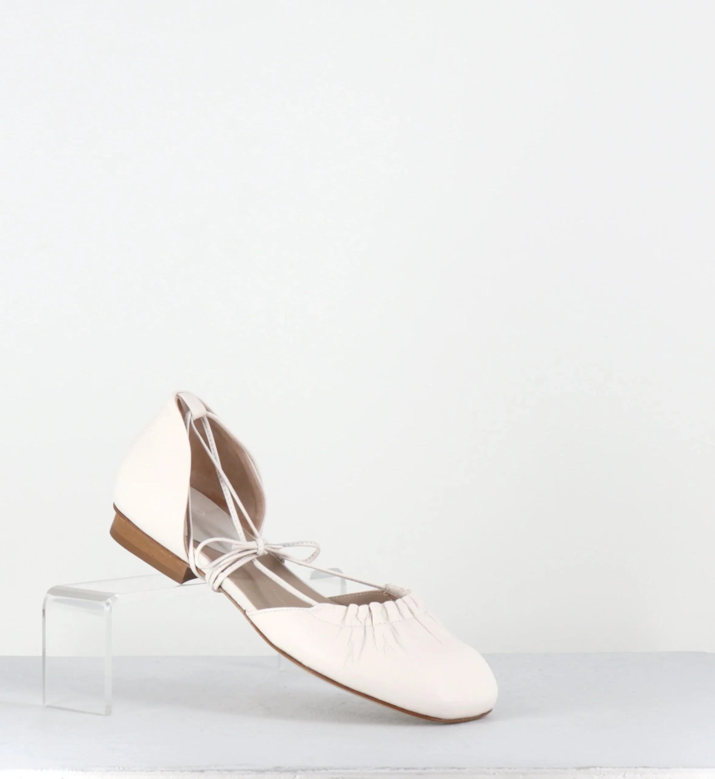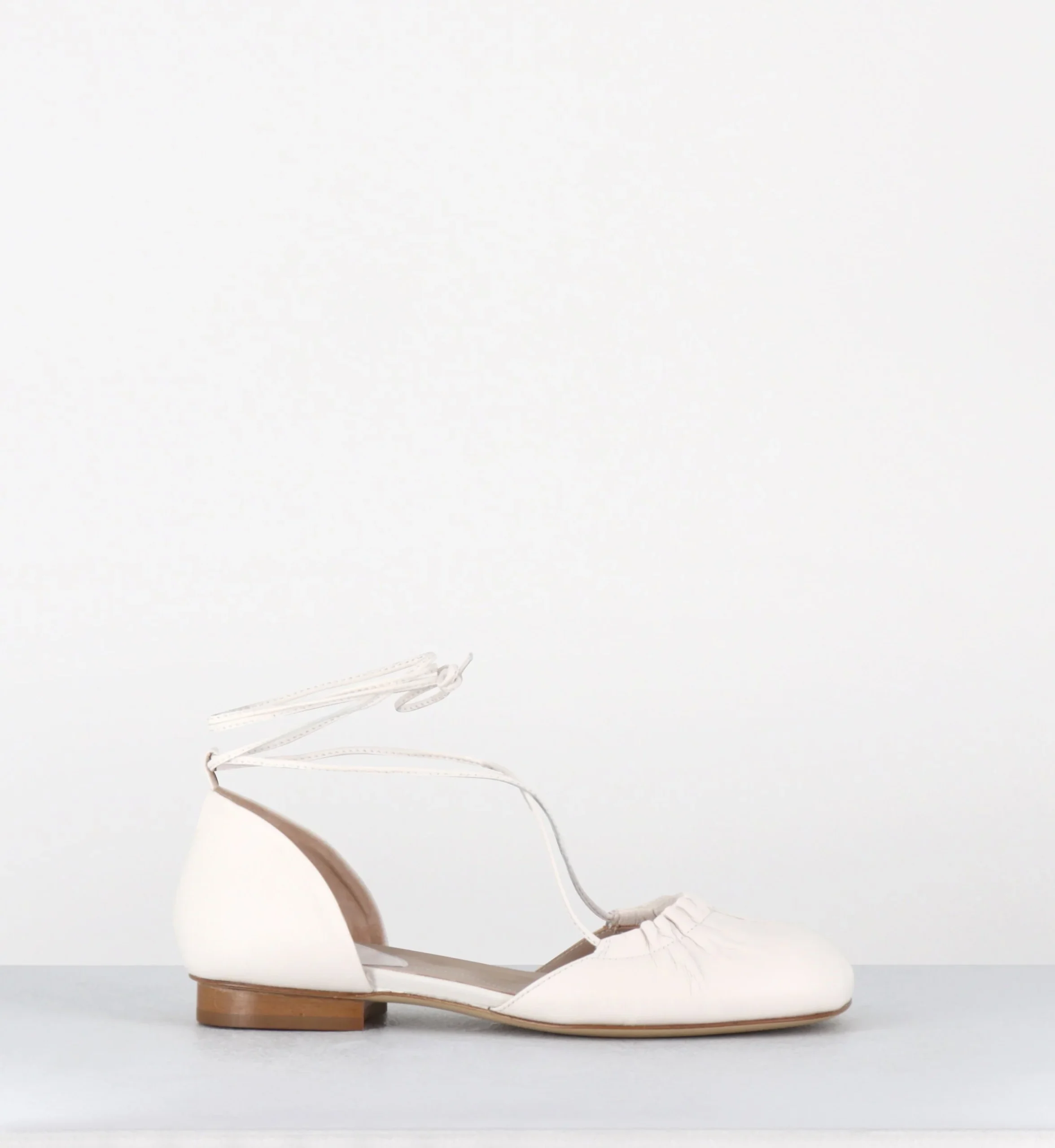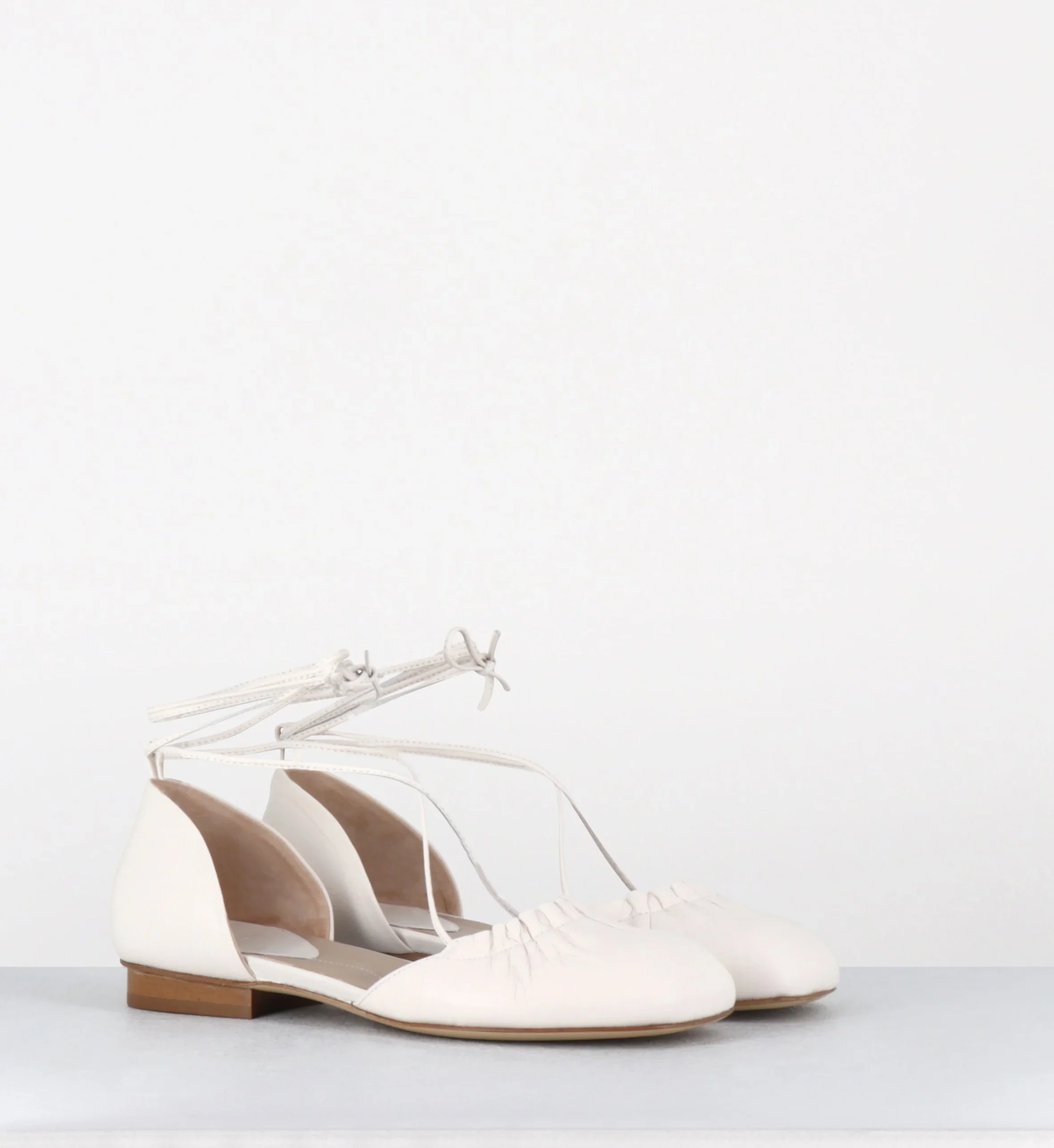 Ballerines à lacets ligne minimaliste en cuir blanc – MARGE002 SHOE BONE