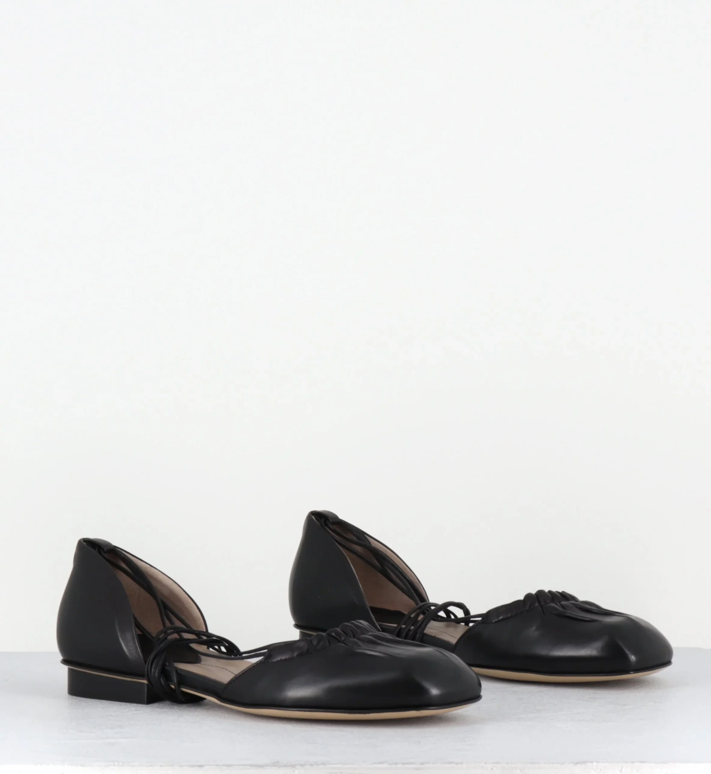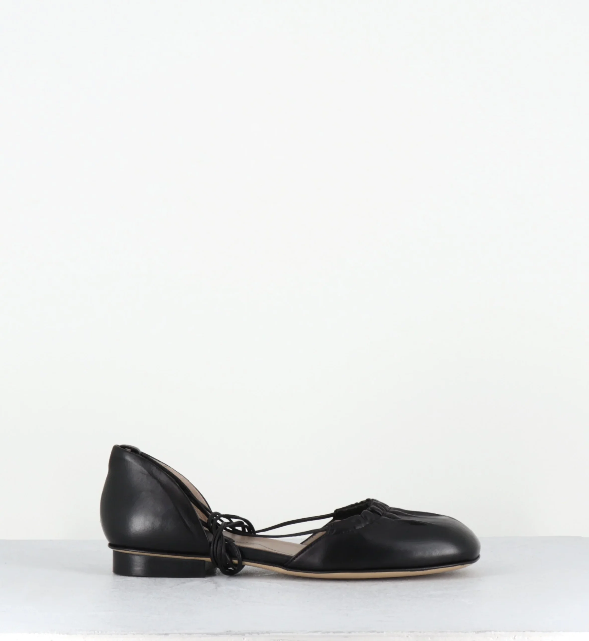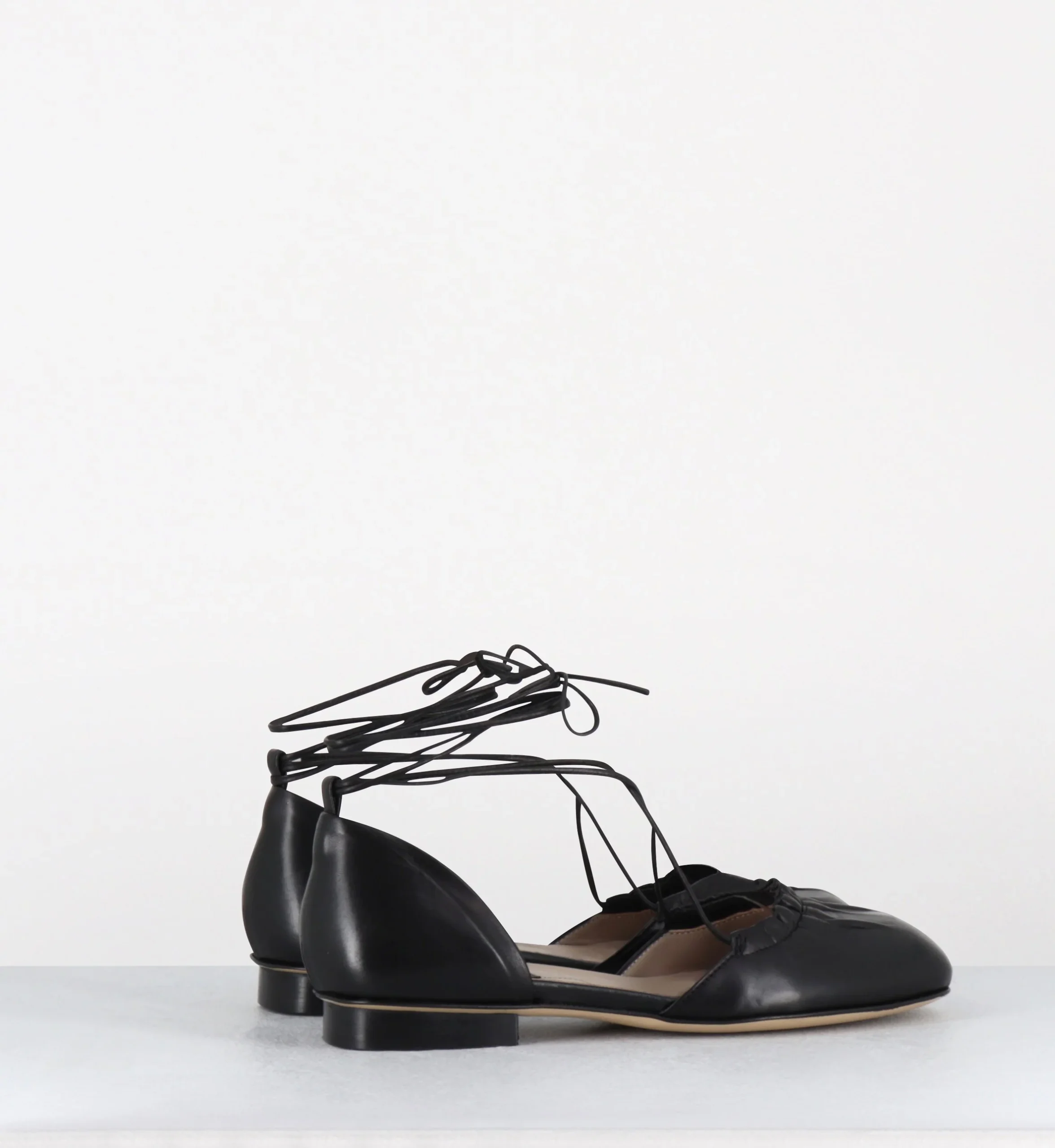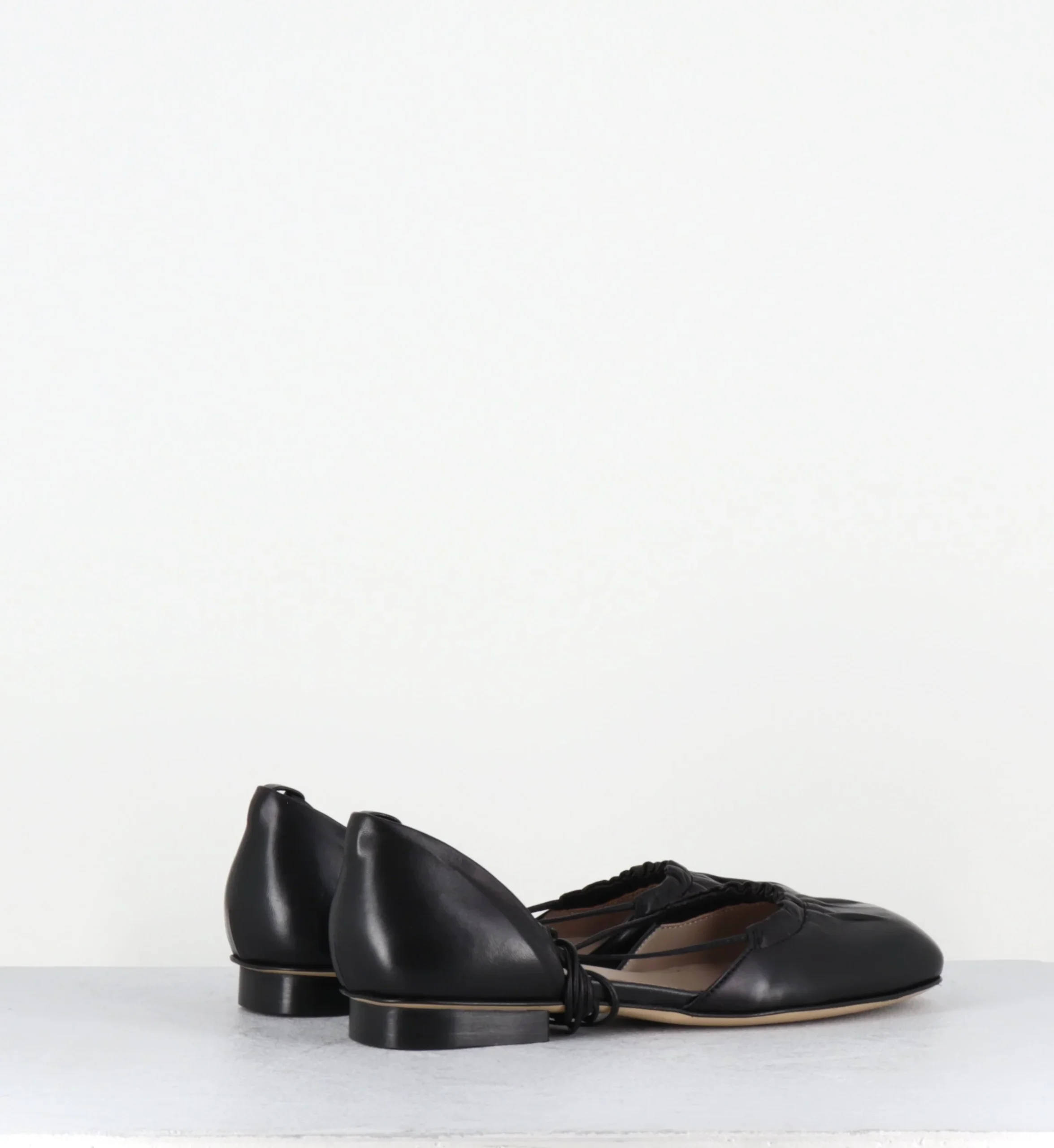 Ballerines à lacets ligne minimaliste en cuir noir – MARGE002 SHOE BLACK