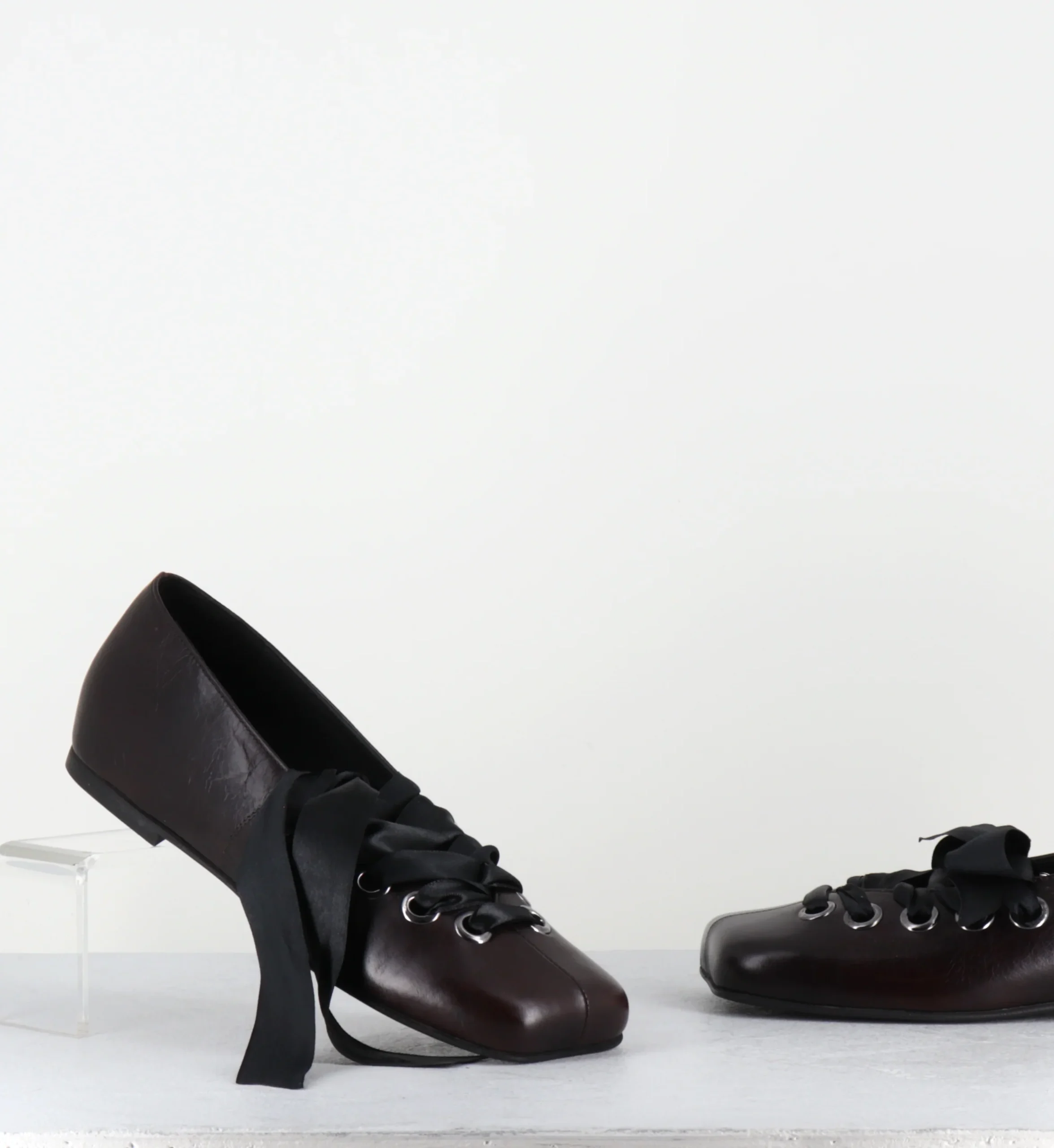 Ballerines anatomiques cuir marron & ruban – FAB15 PATHOS MOGANO