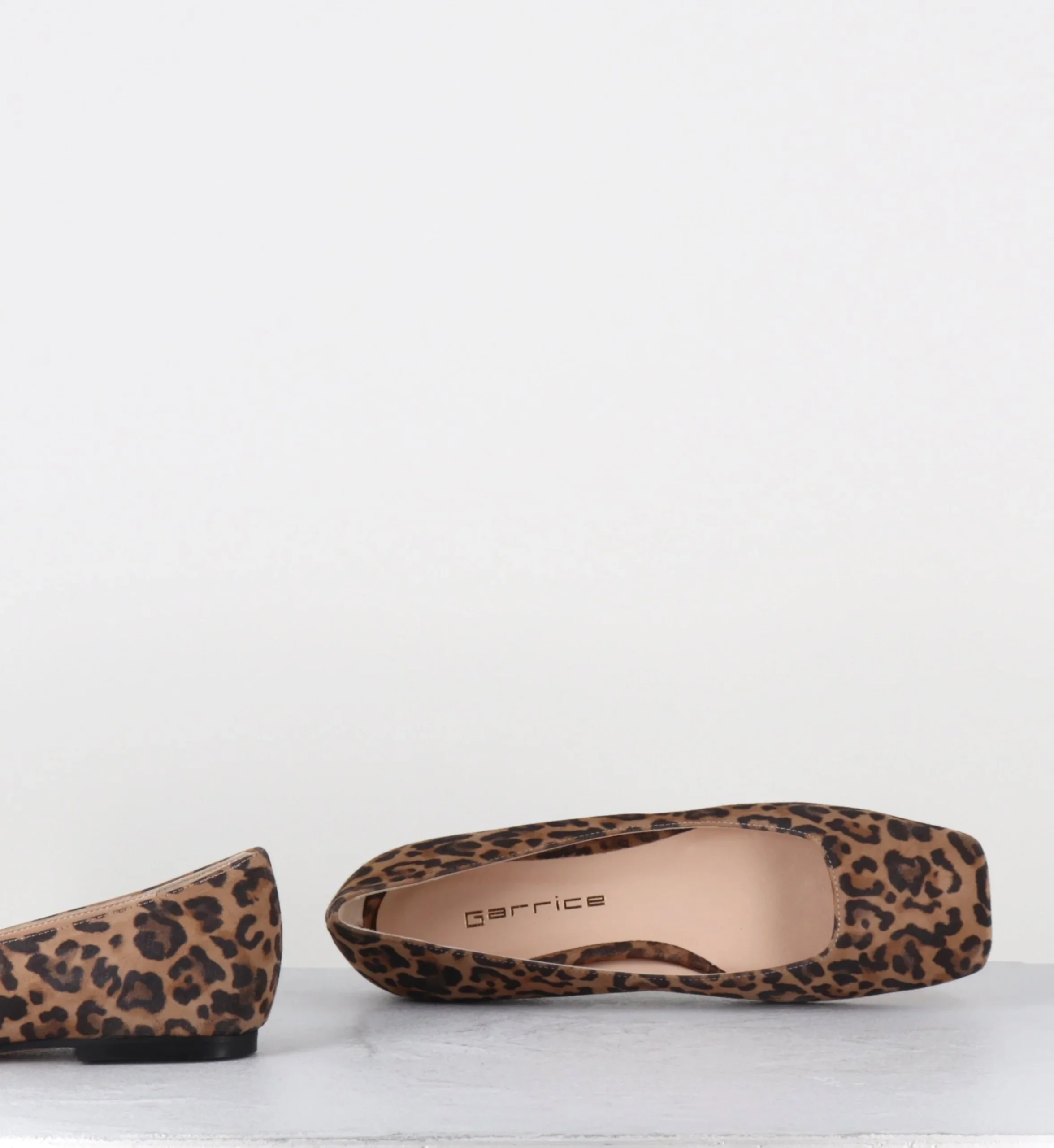 Ballerines en cuir suede imprimé léopard, bout carré, semelle avec renfort pour plus de confort Fabrication Artisanale Italienne – Ateliers GarriceLab
