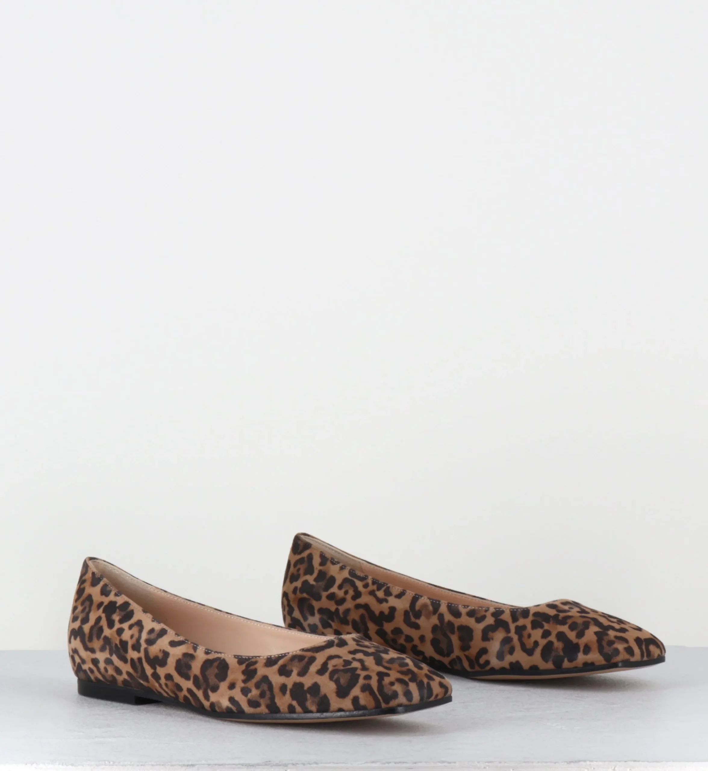 Ballerines en cuir suede imprimé léopard, bout carré, semelle avec renfort pour plus de confort