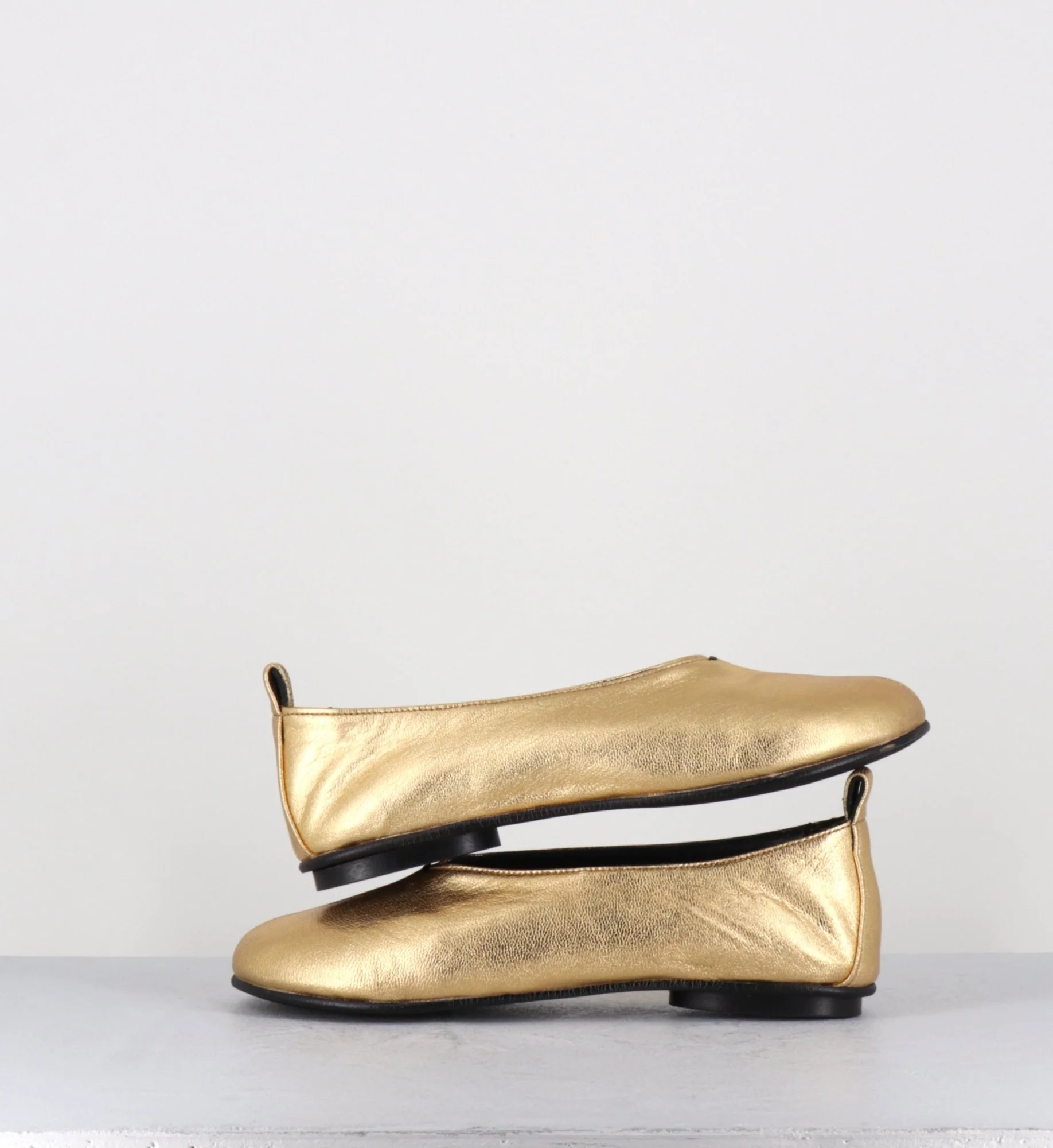 Ballerines minimalistes en cuir souple doré – LESTER4 NAPPA ORO