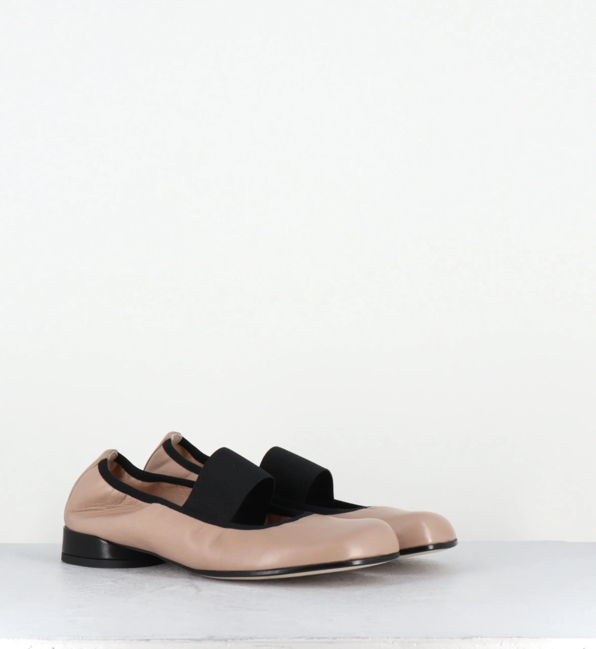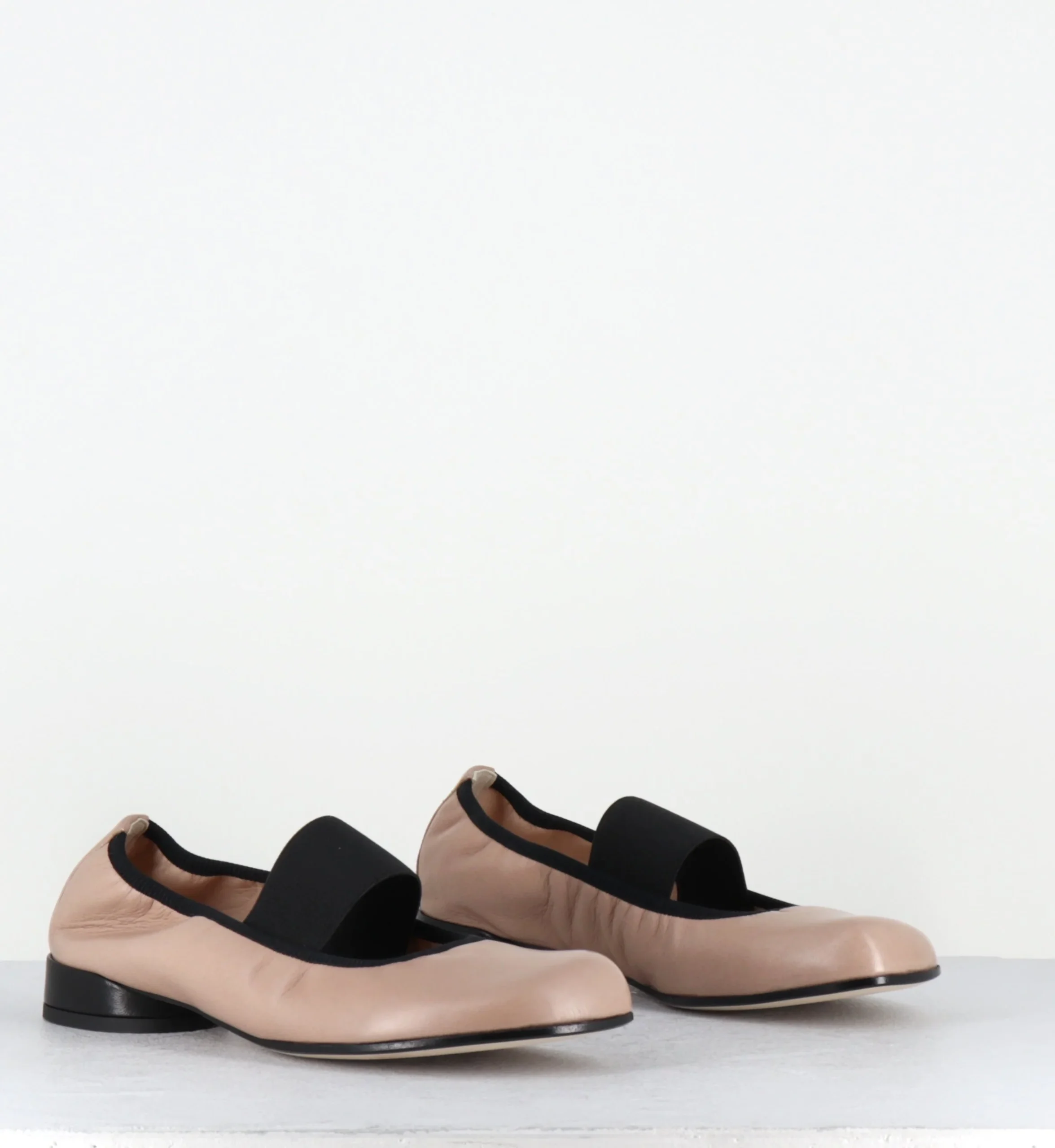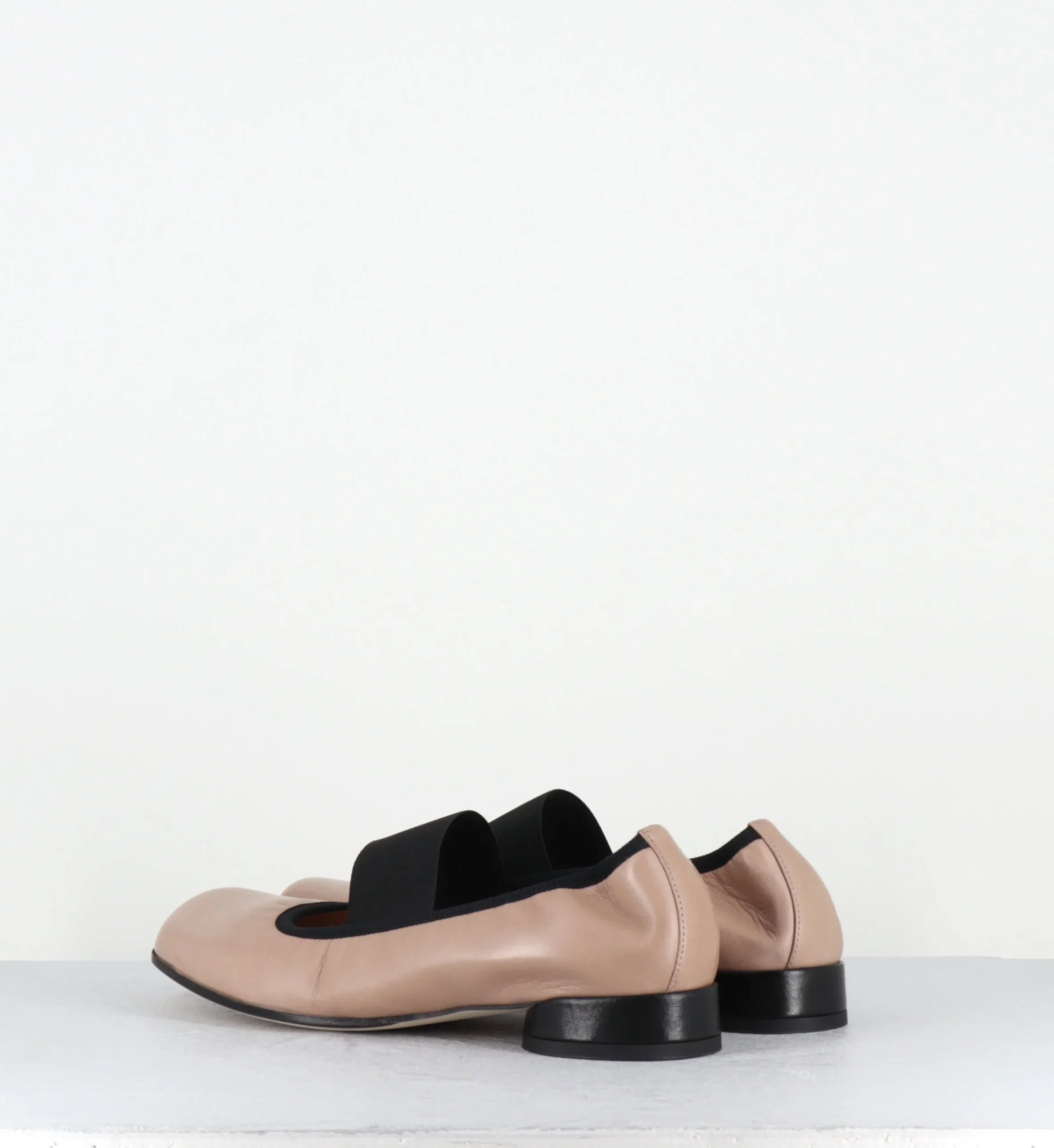Ballerines petit talon & élastique en cuir nude et noir – LAZI CLOE SAND