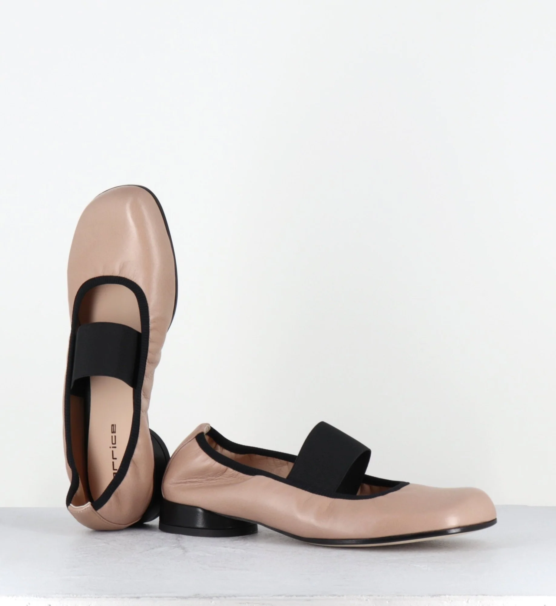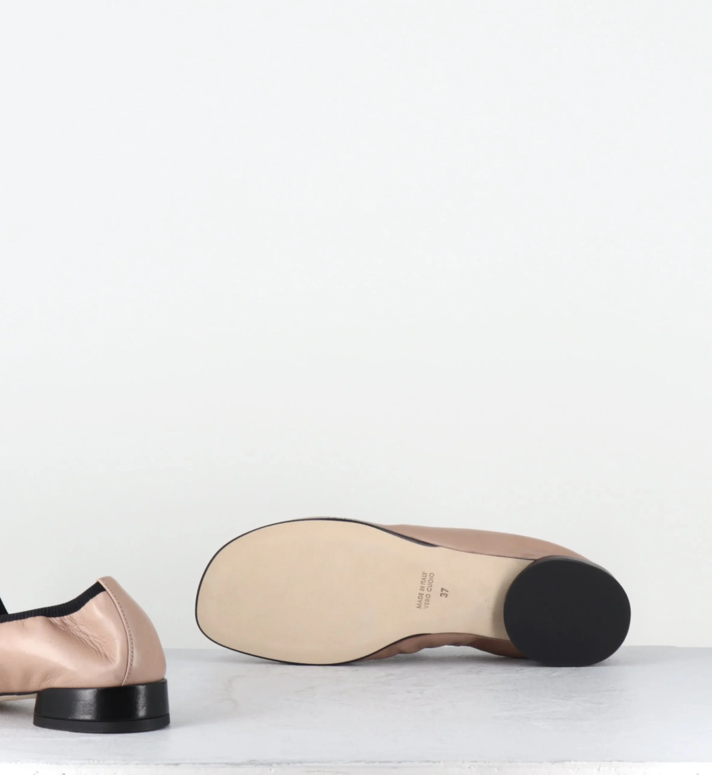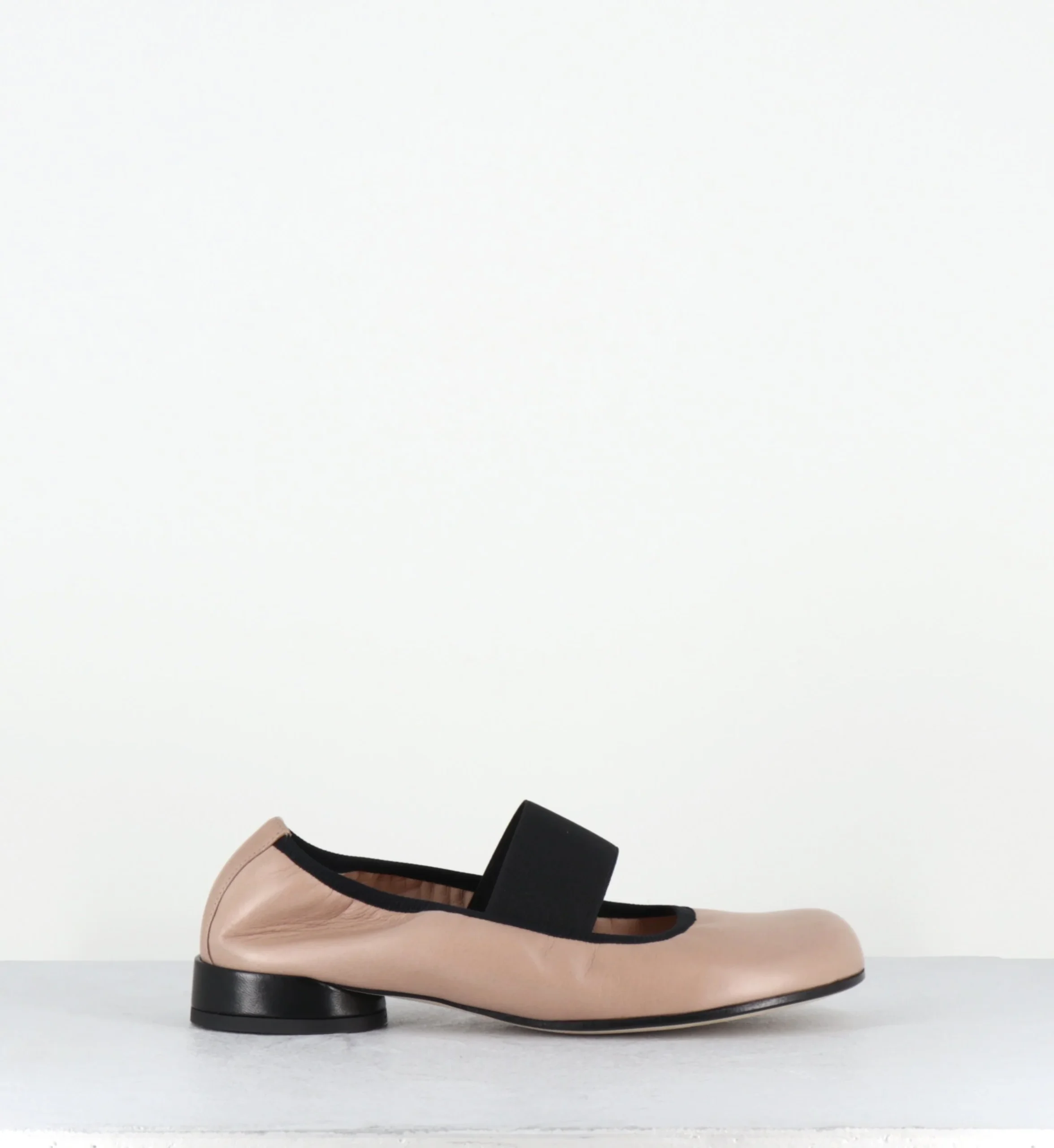 Ballerines petit talon & élastique en cuir nude et noir – LAZI CLOE SAND