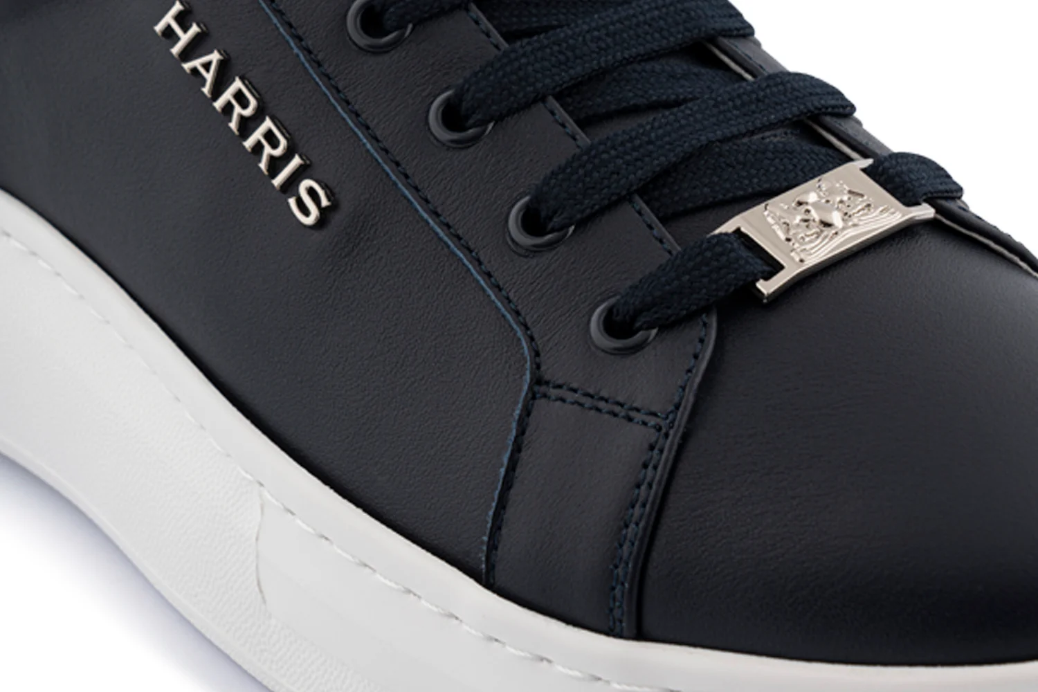 Bleu bleu marine avec détails en cuir verni blanc. Un design raffiné et décisif, construit avec la fabrication Strobel et la semelle cassette.Coupe étroite – taille au-dessus recommandée.