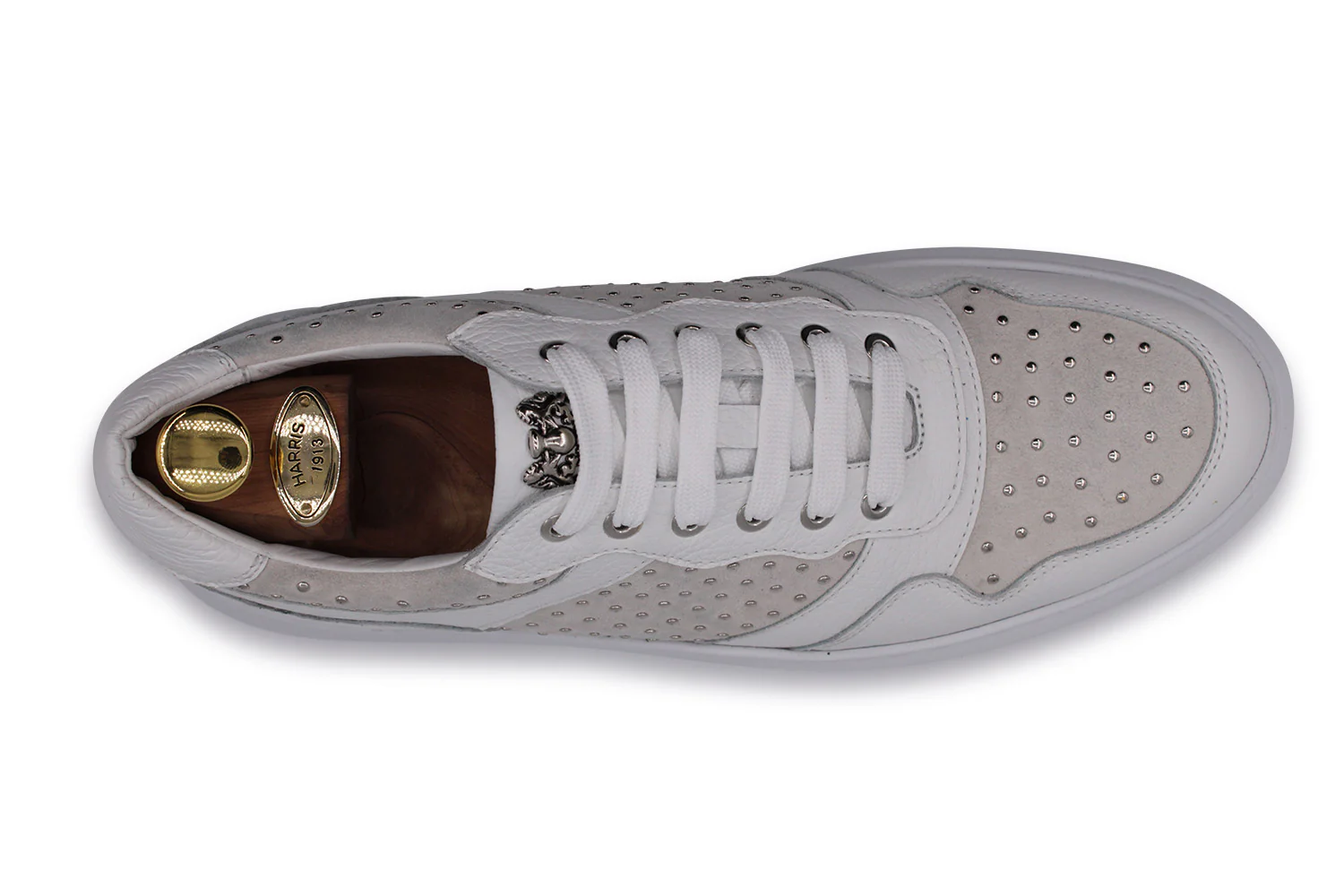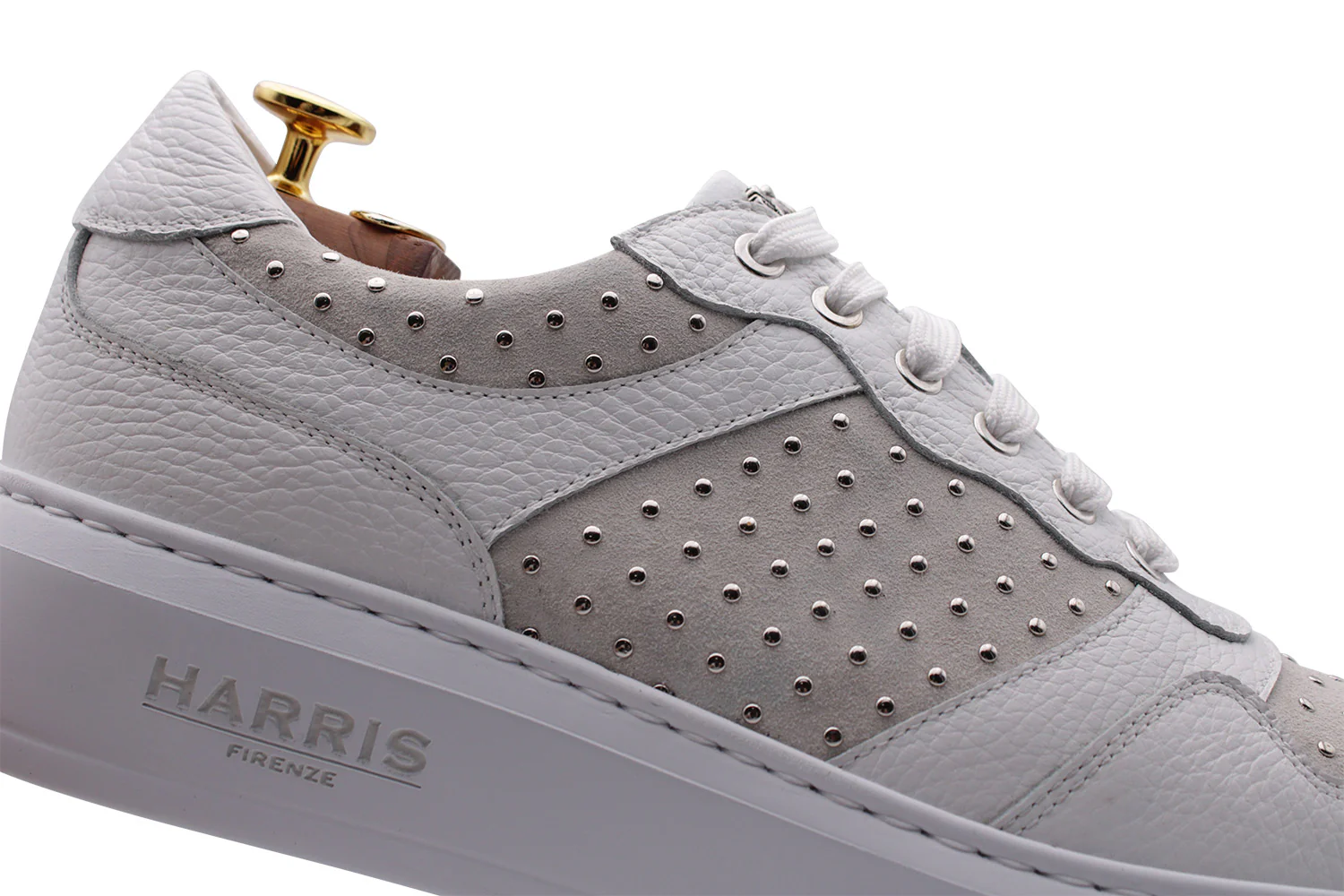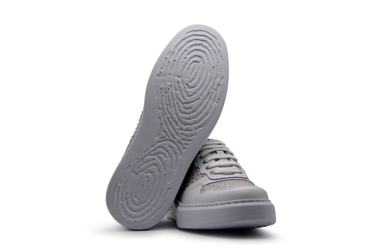Sneakers en cuir de chaussures, d’alce et de daim uniques et élégants. Design raffiné avec des clous et une semelle de boîte, parfait pour chaque occasion. Ajoutez une touche de luxe à votre look avec ces baskets exclusives.