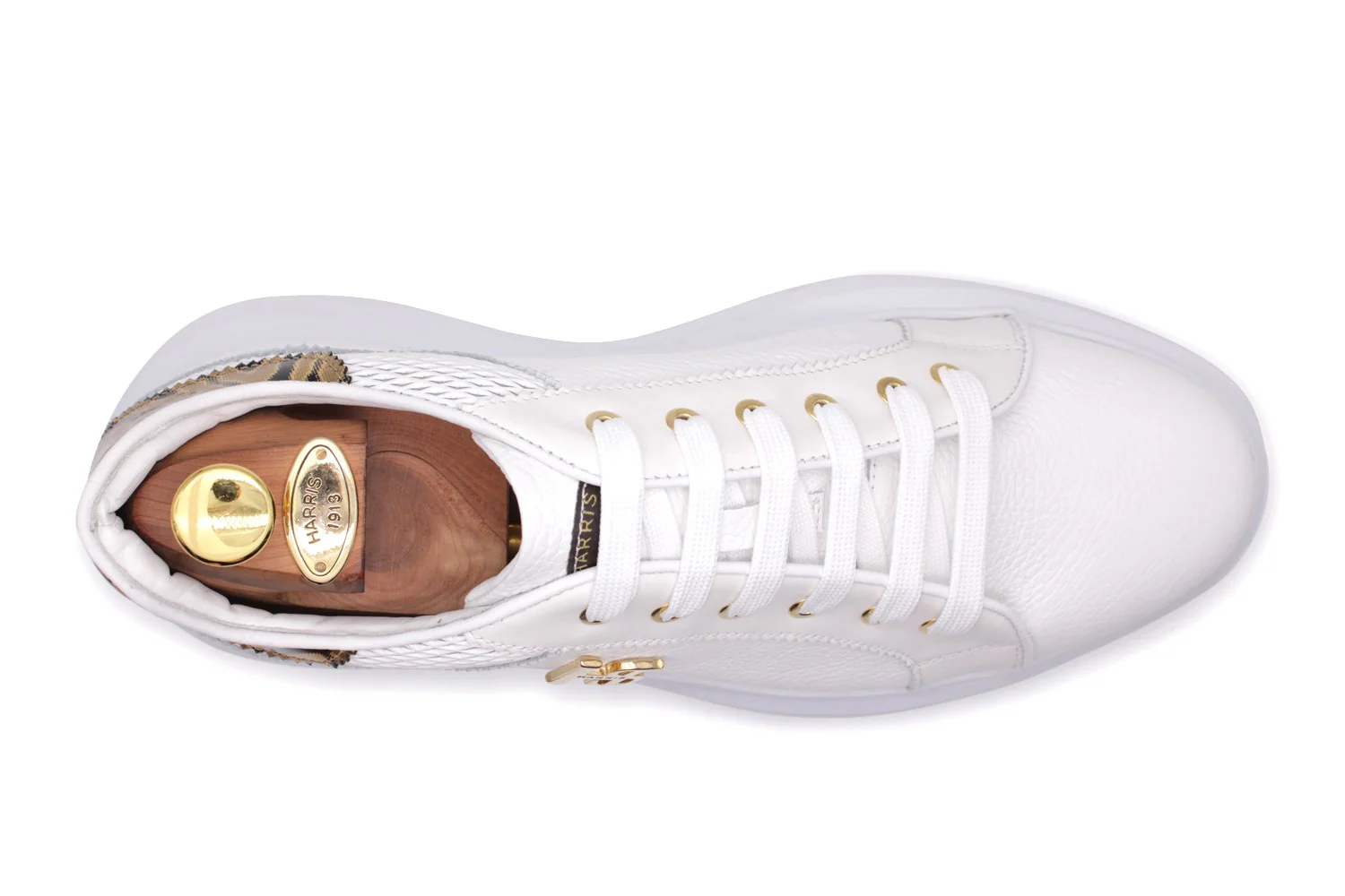 Ces baskets ont une combinaison raffinée de cuir précieuse, avec la principale principale en peau de veau douce caractérisée par une impression élégante d’effet d’alcé qui donne une apparence naturelle et sophistiquée. Les inserts latéraux et sur le talon sont ornés d’une peau percée avec un motif géométrique qui crée un jeu intéressant de transparents et de textures. Pour compléter le design, certains détails en cuir imprimés ajoutent un caractère supplémentaire à la chaussure. L’alternance de ces différents traitements cutanés crée un effet dynamique et raffiné, équilibrant les sports et les éléments luxueux.