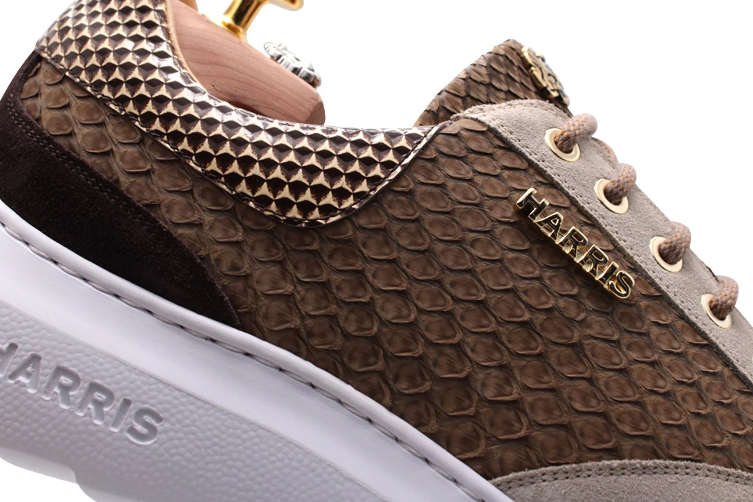Baskets en cuir python et daim beige