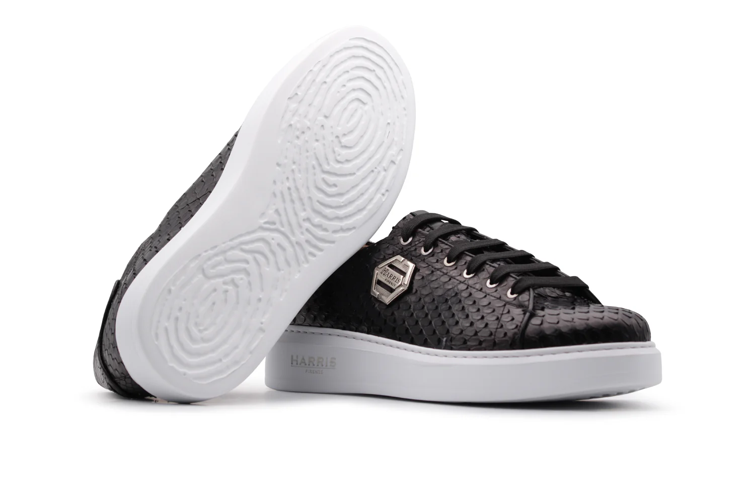 Baskets en cuir python noir