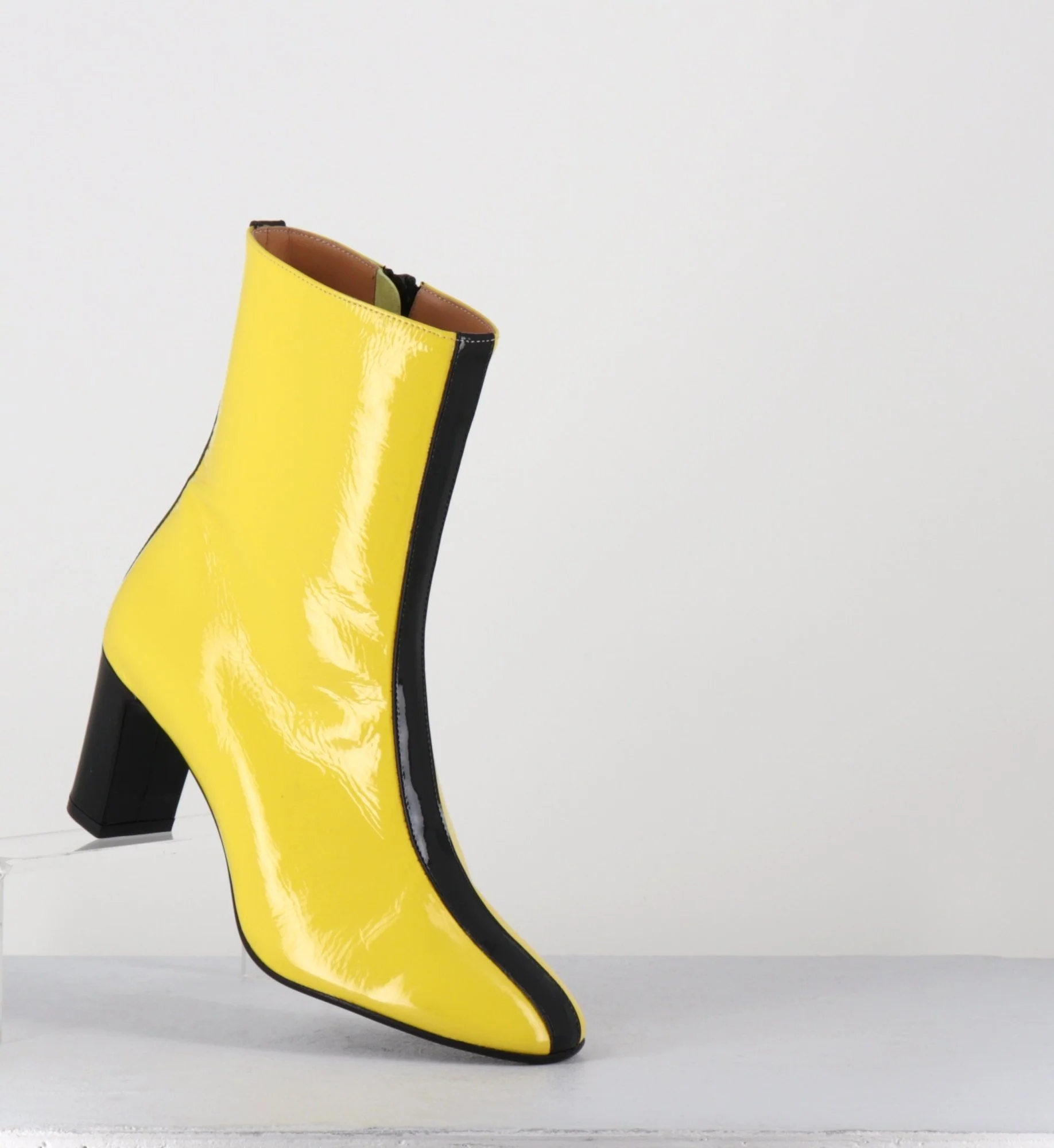 Boots 60s à talon naplak jaune et vernis noir – DEMY GIALLO NERO