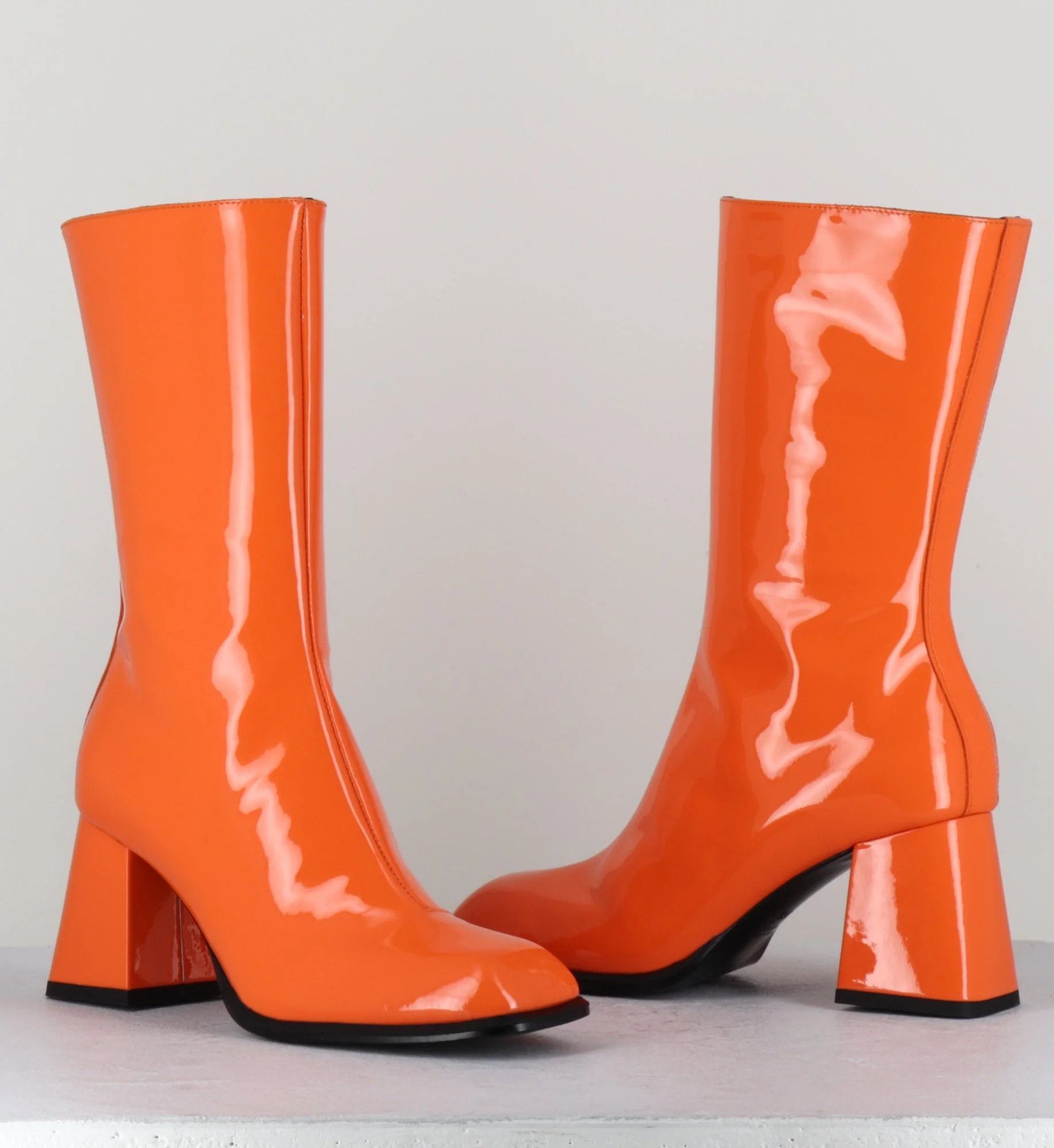 Boots à talon 70s en cuir vernis orange – YA2240 ARANCIO