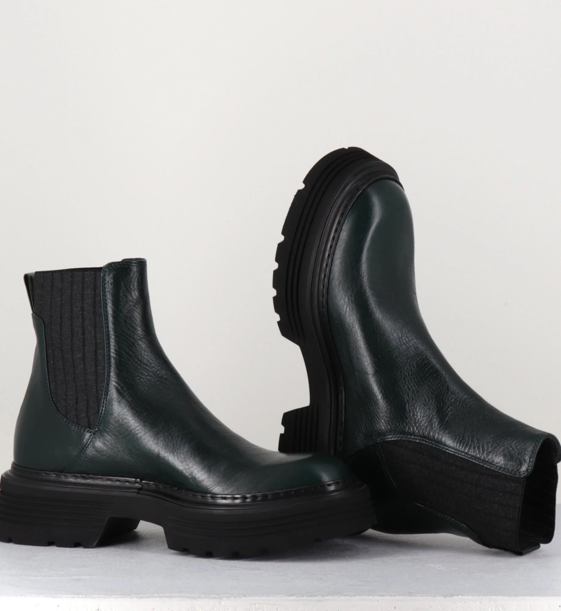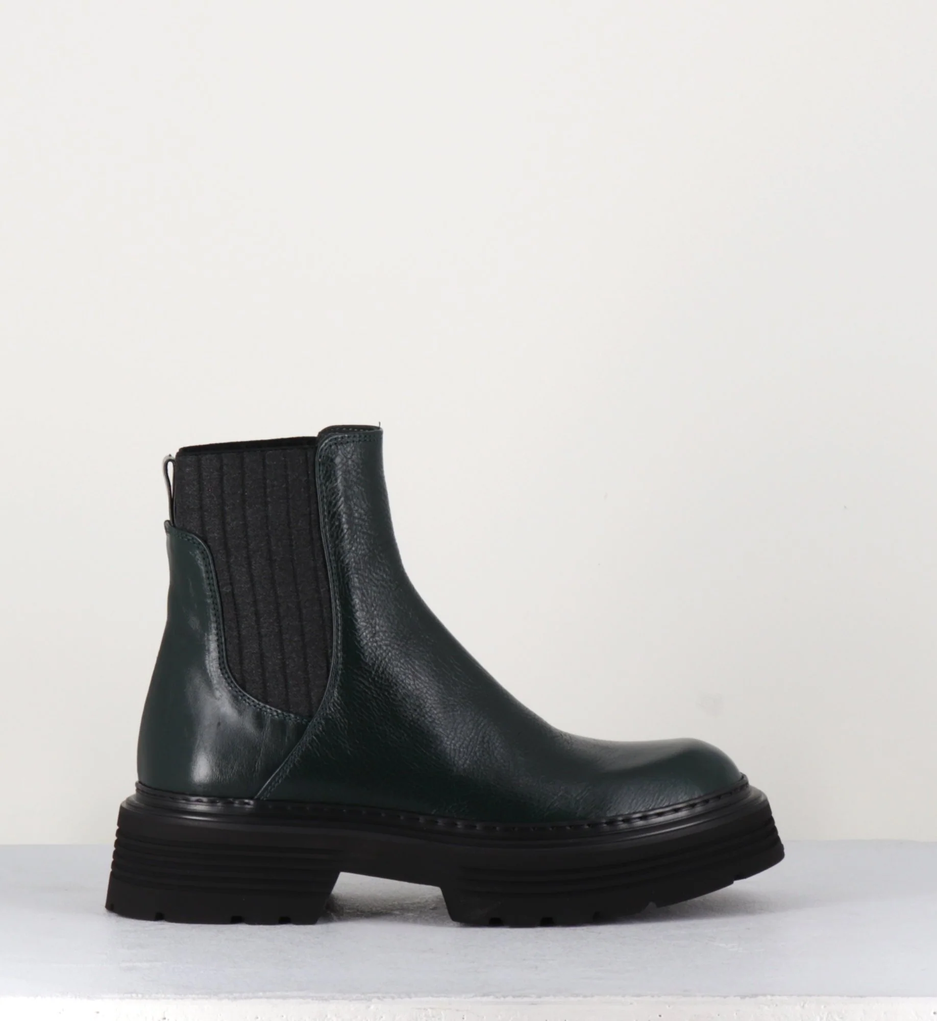 Boots en cuir bleu pétrole & élastique gris – SCANDO PETROLIO