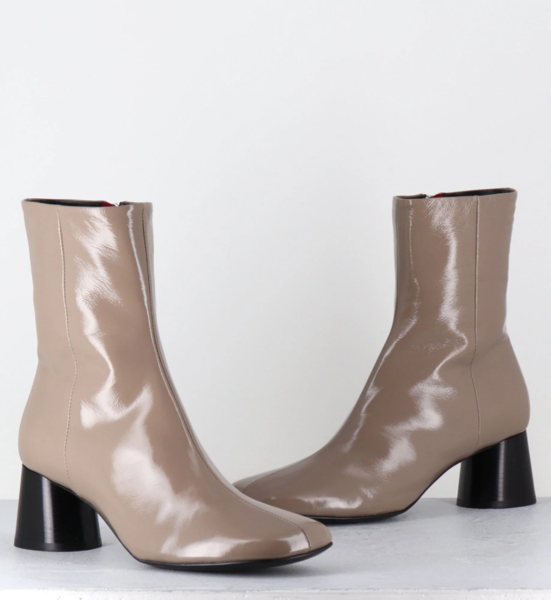 Boots en cuir brillant taupe talon cylindrique – DANI04 GLAZE TORTORA