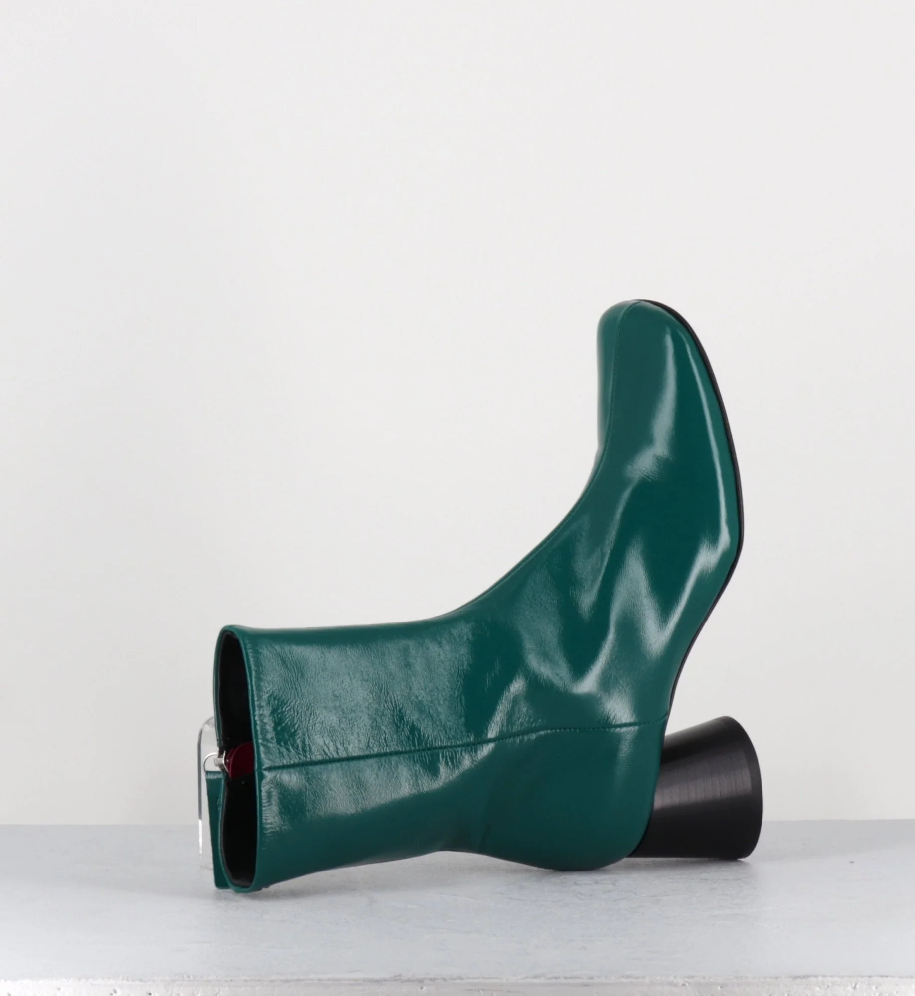 Boots en cuir brillant vert talon géométrique – DANI04 GLAZE SELVA