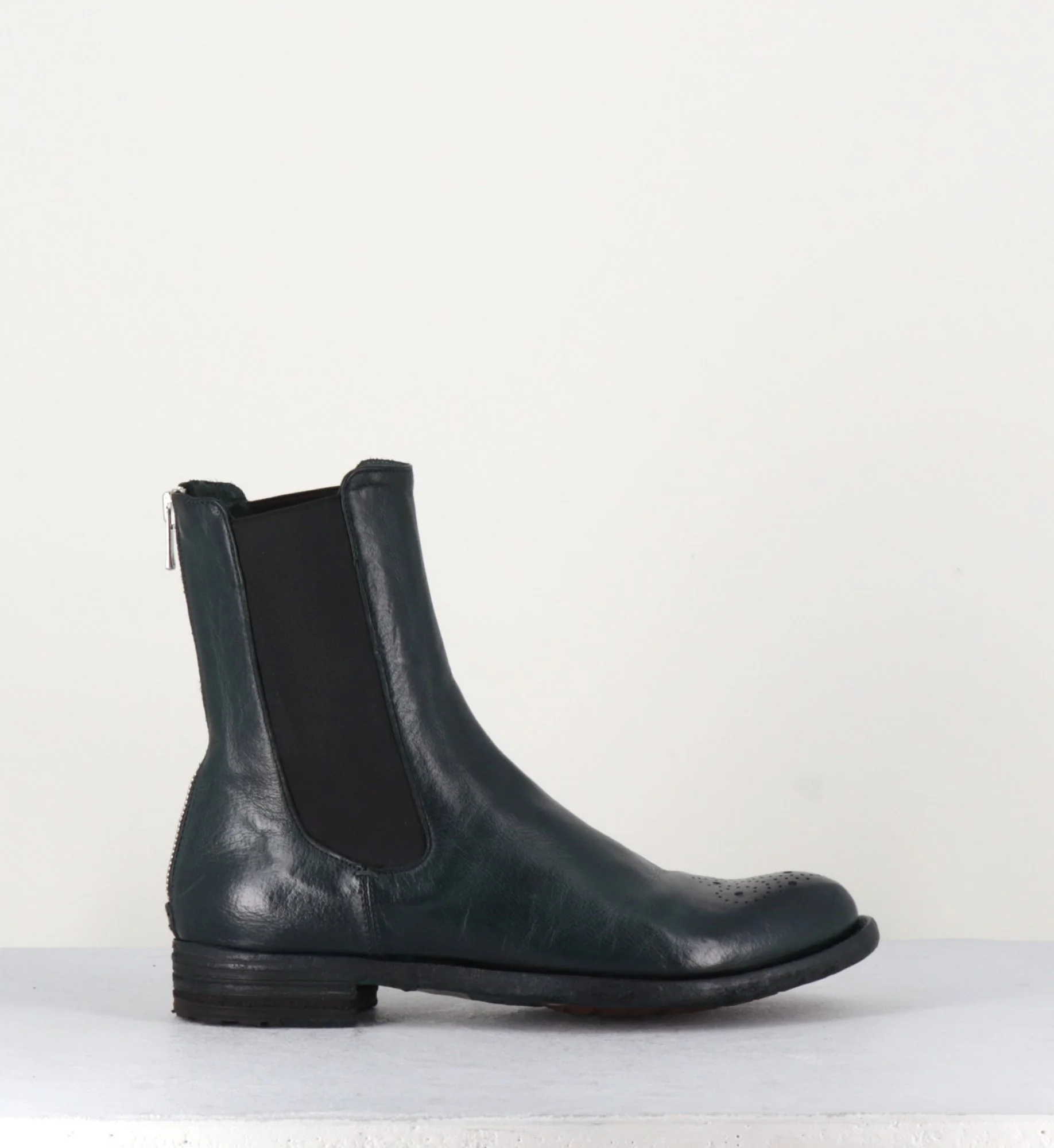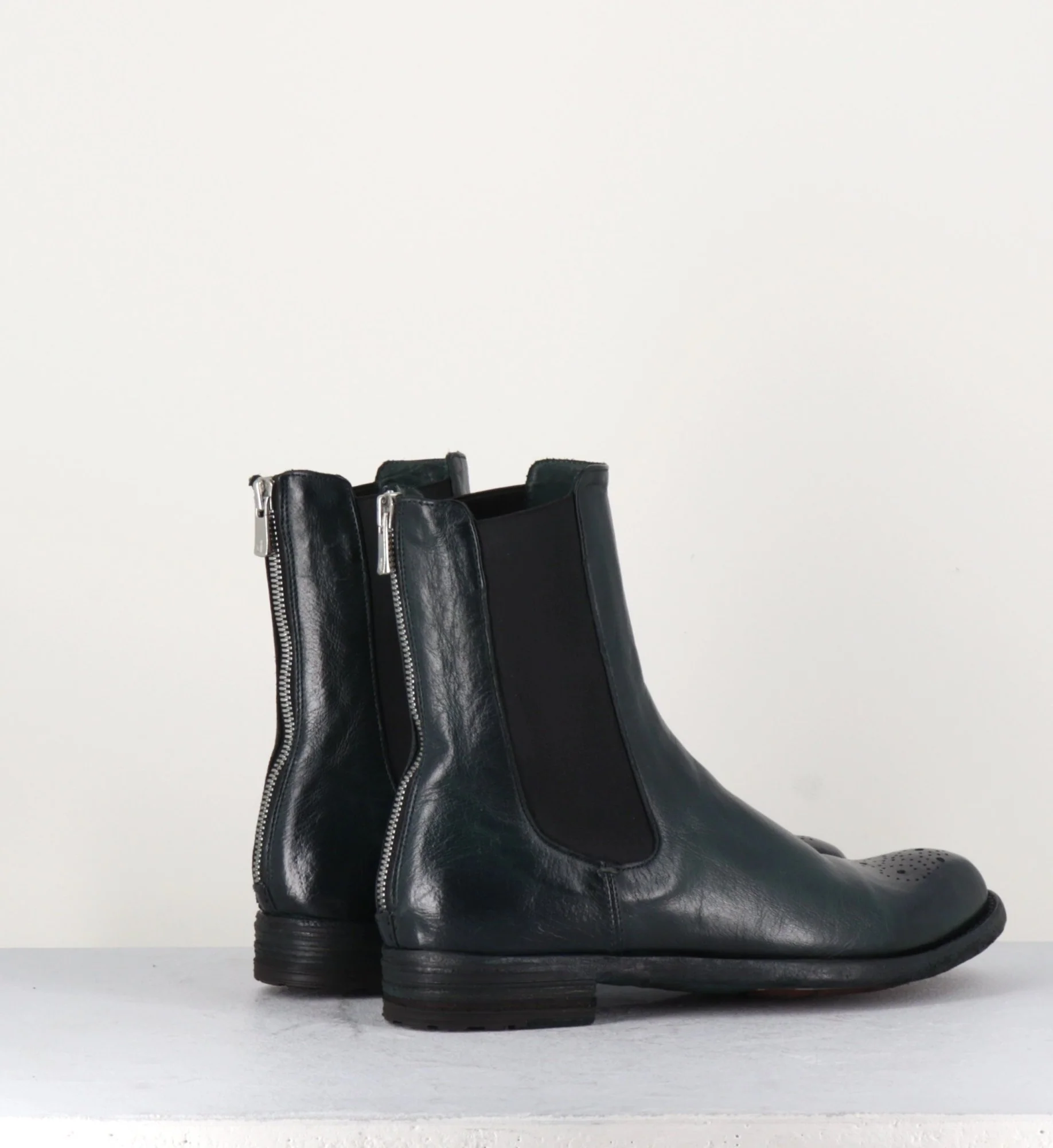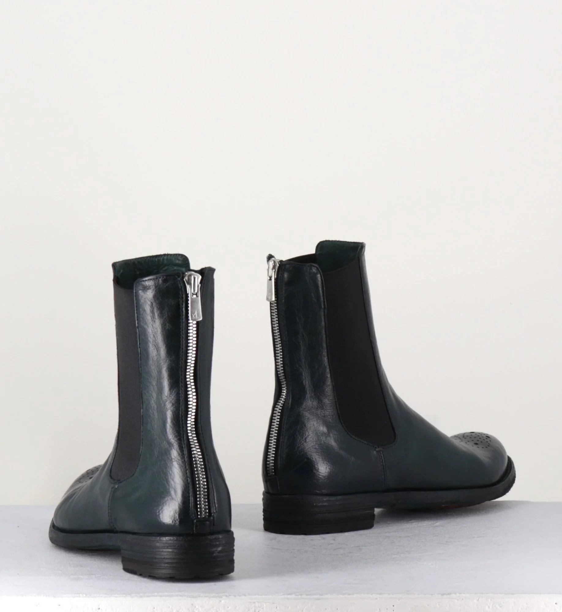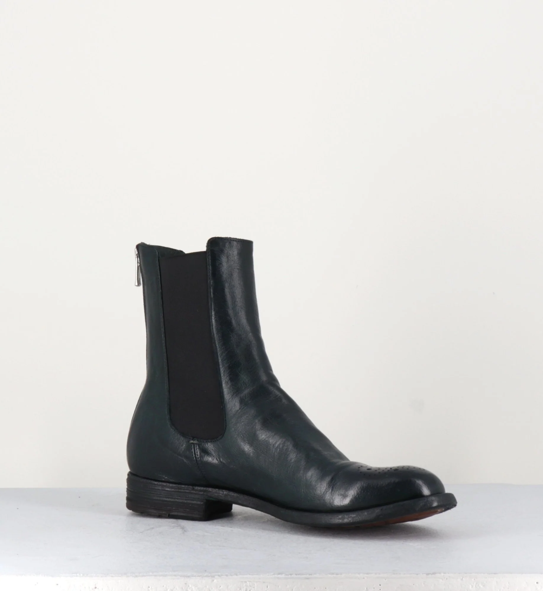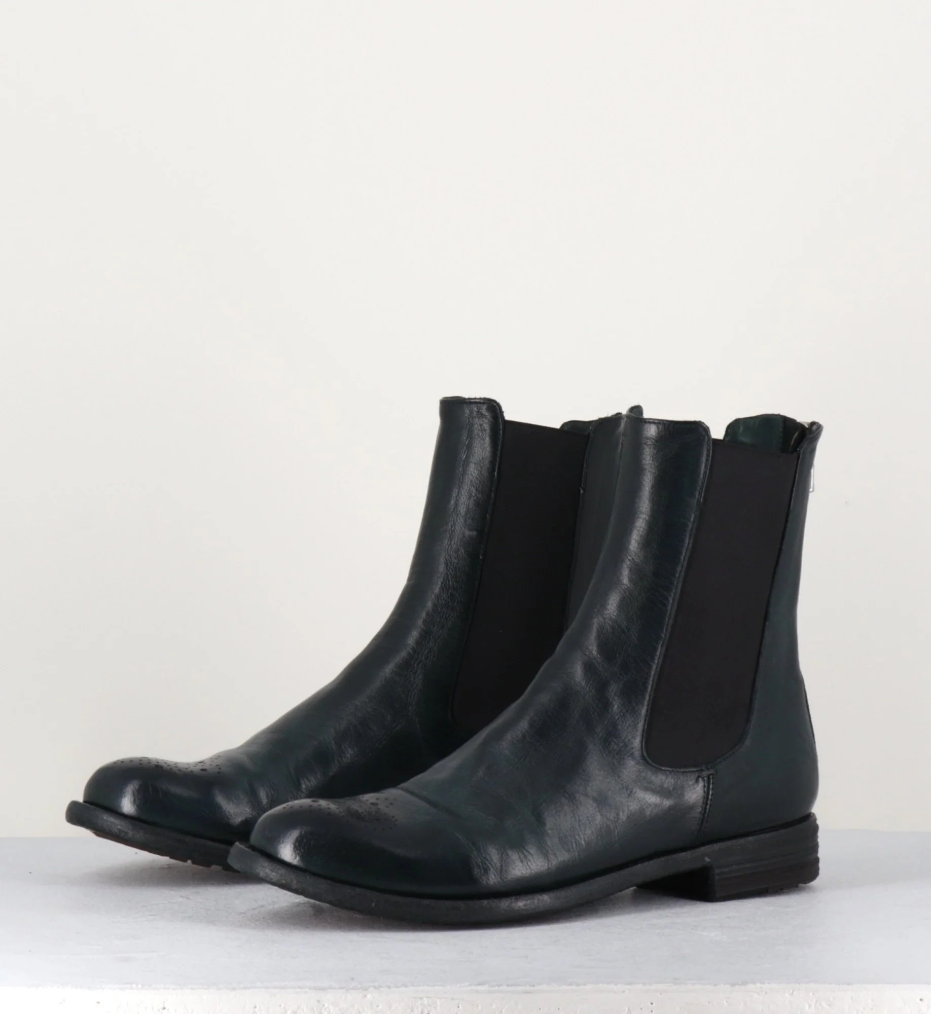 Boots plates en cuir vert sombre, élastique & bout fleuri – LEXIKON099 FRENCHLOVER