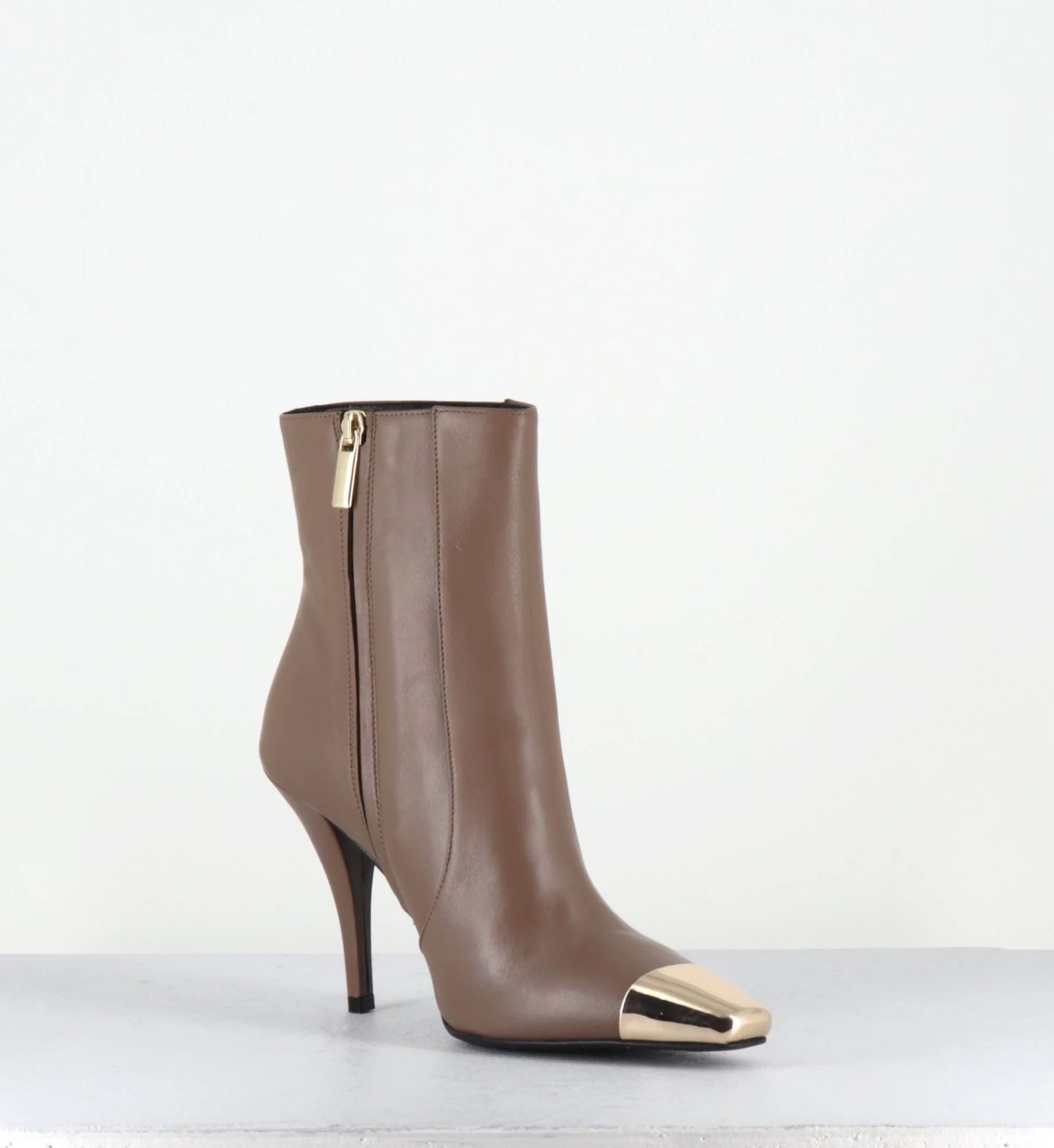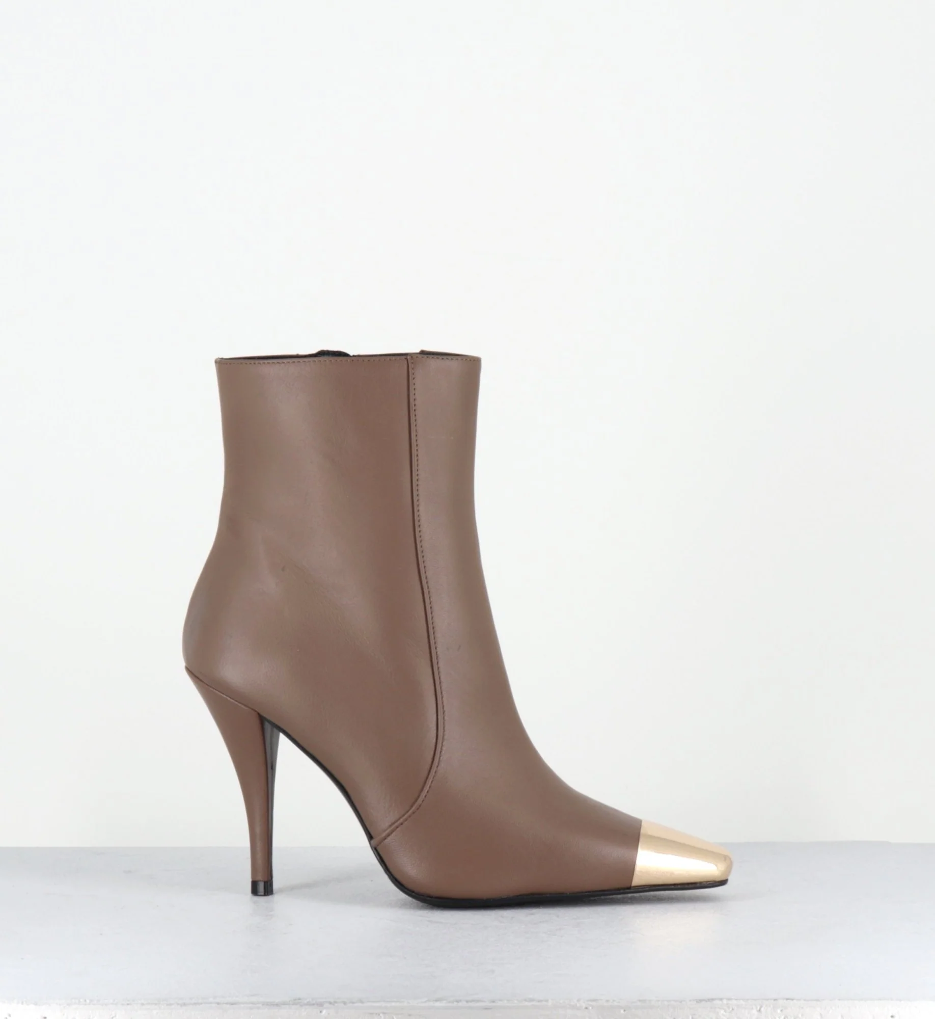 Boots talon haut cuir grège bout or – MECHA3 NAPPA ACERO