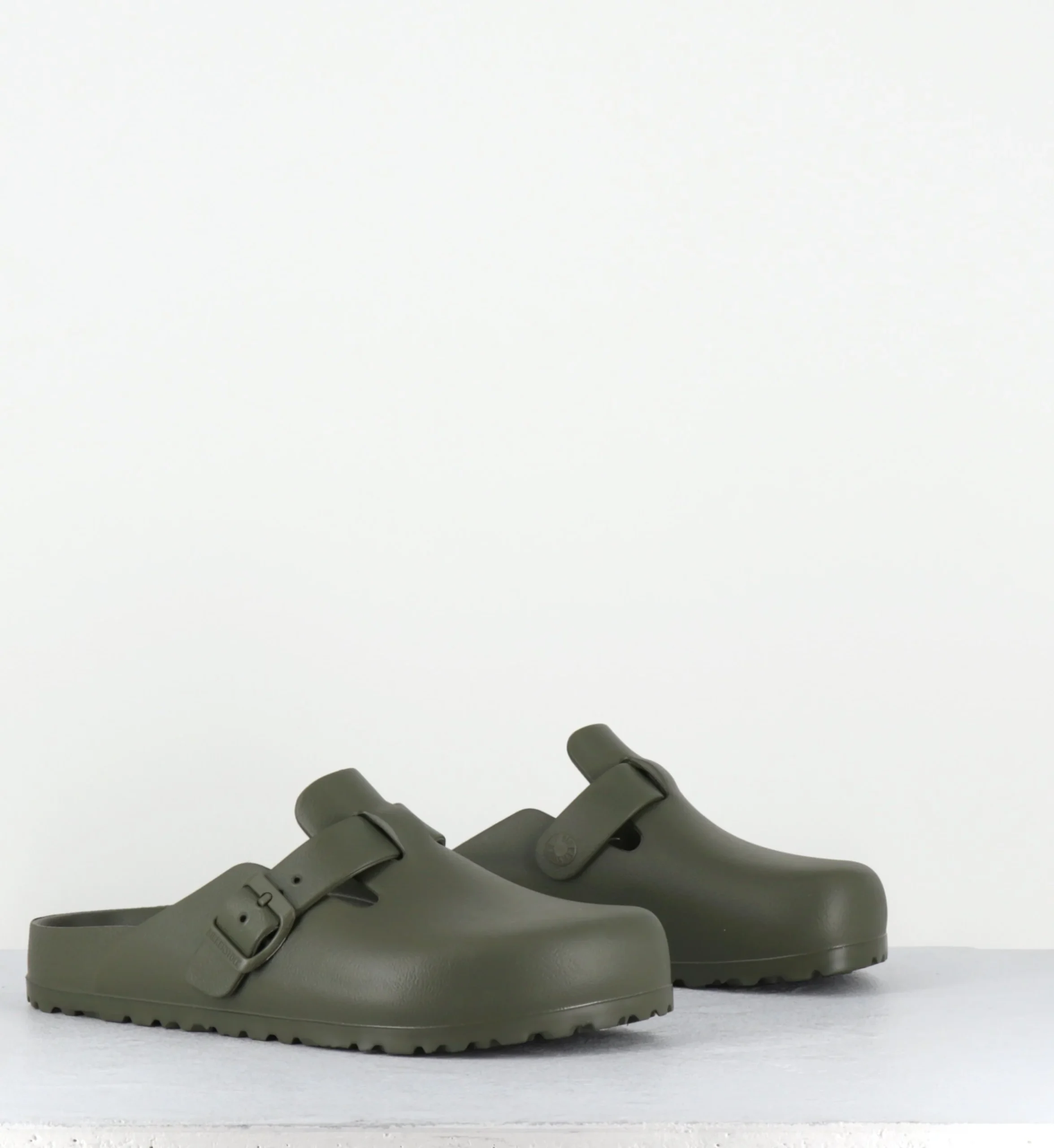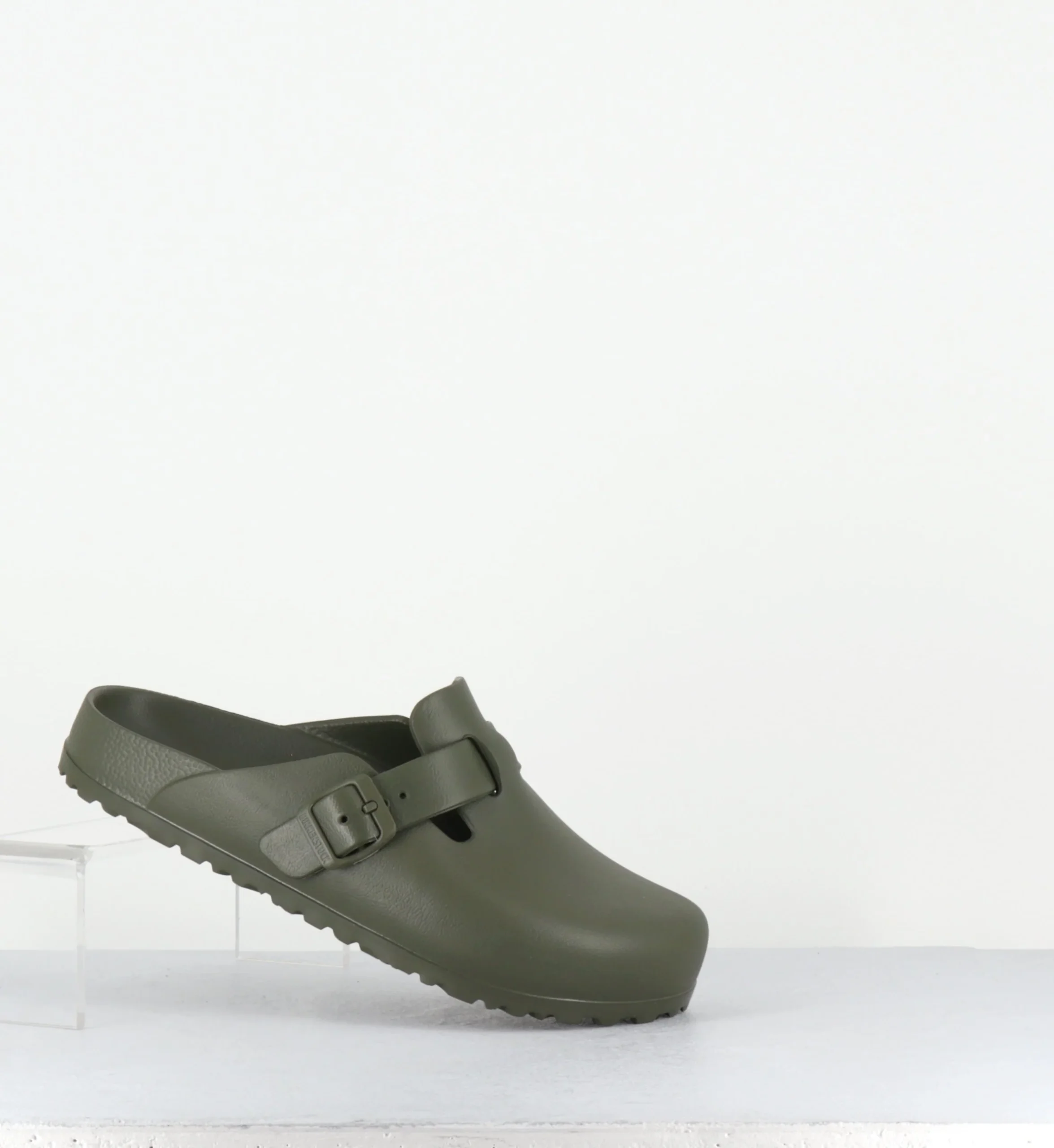 Inspiré du modèle sabot Boston iconique, ce modèle est en matière synthétique EVA particulièrement légère et très flexible. La matière synthétique de grande qualité, sans odeurs et sans substances nocives, réunit de nombreuses propriétés : elle est très légère et élastique, étanche, hypoallergénique et elle absorbe les chocs.