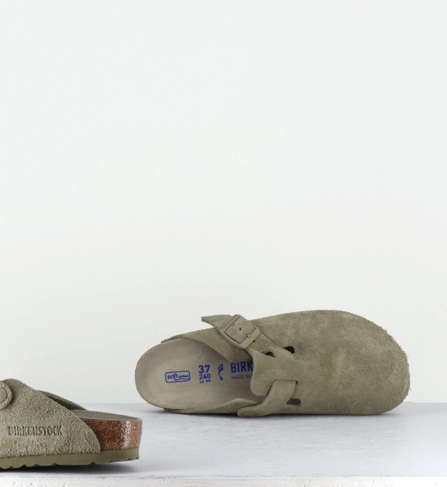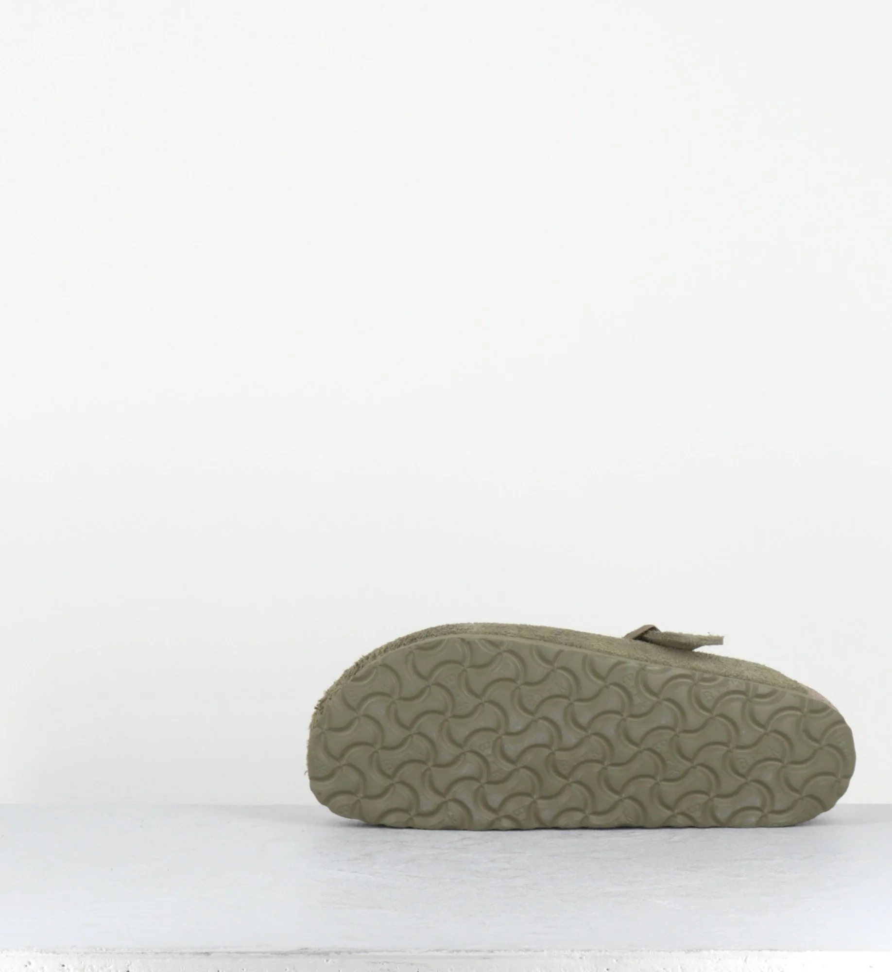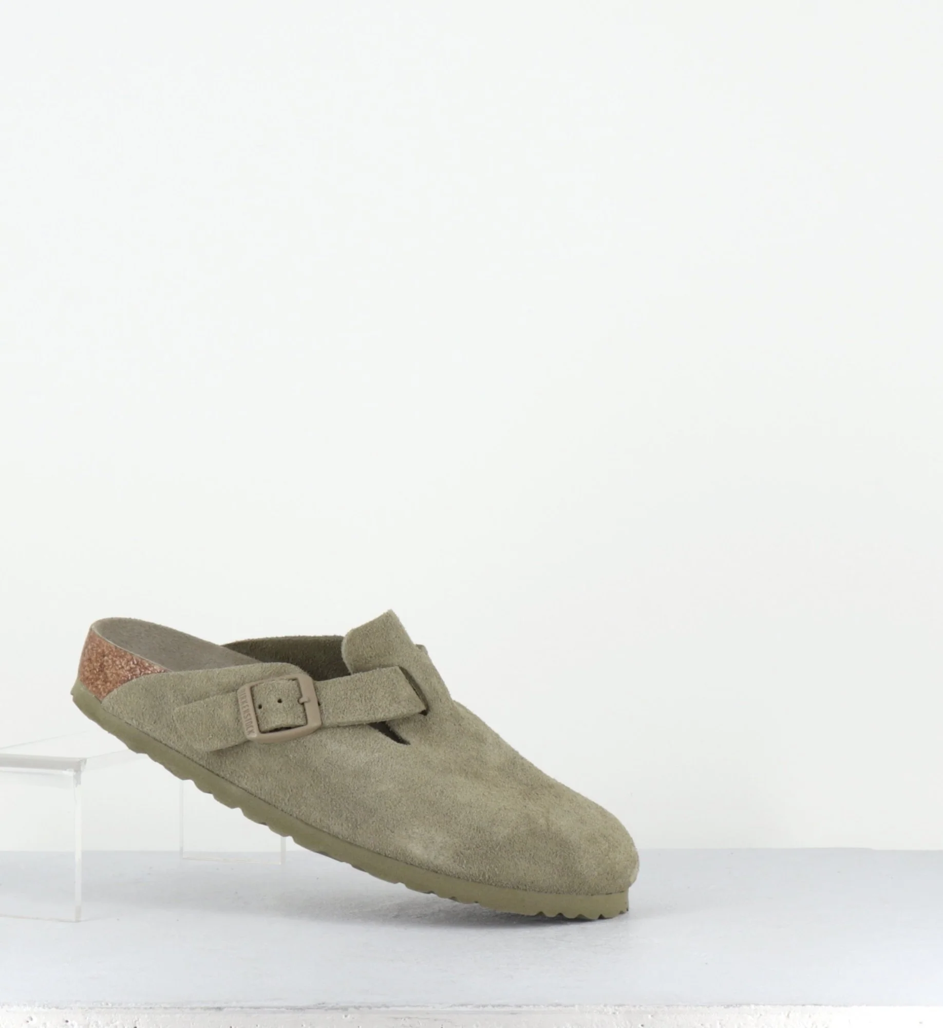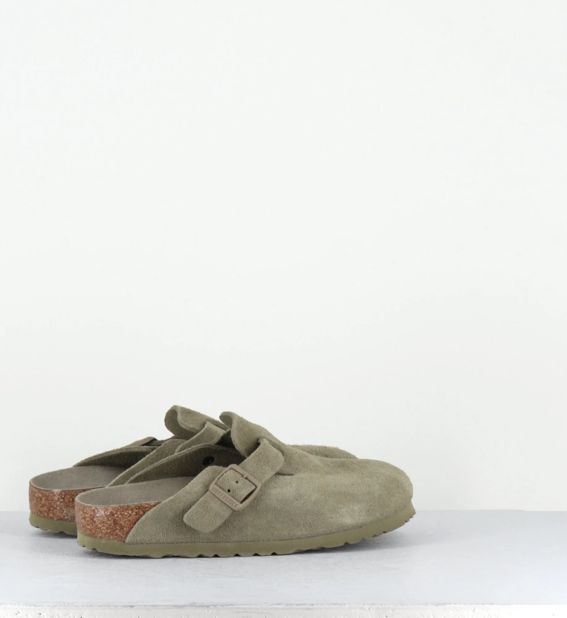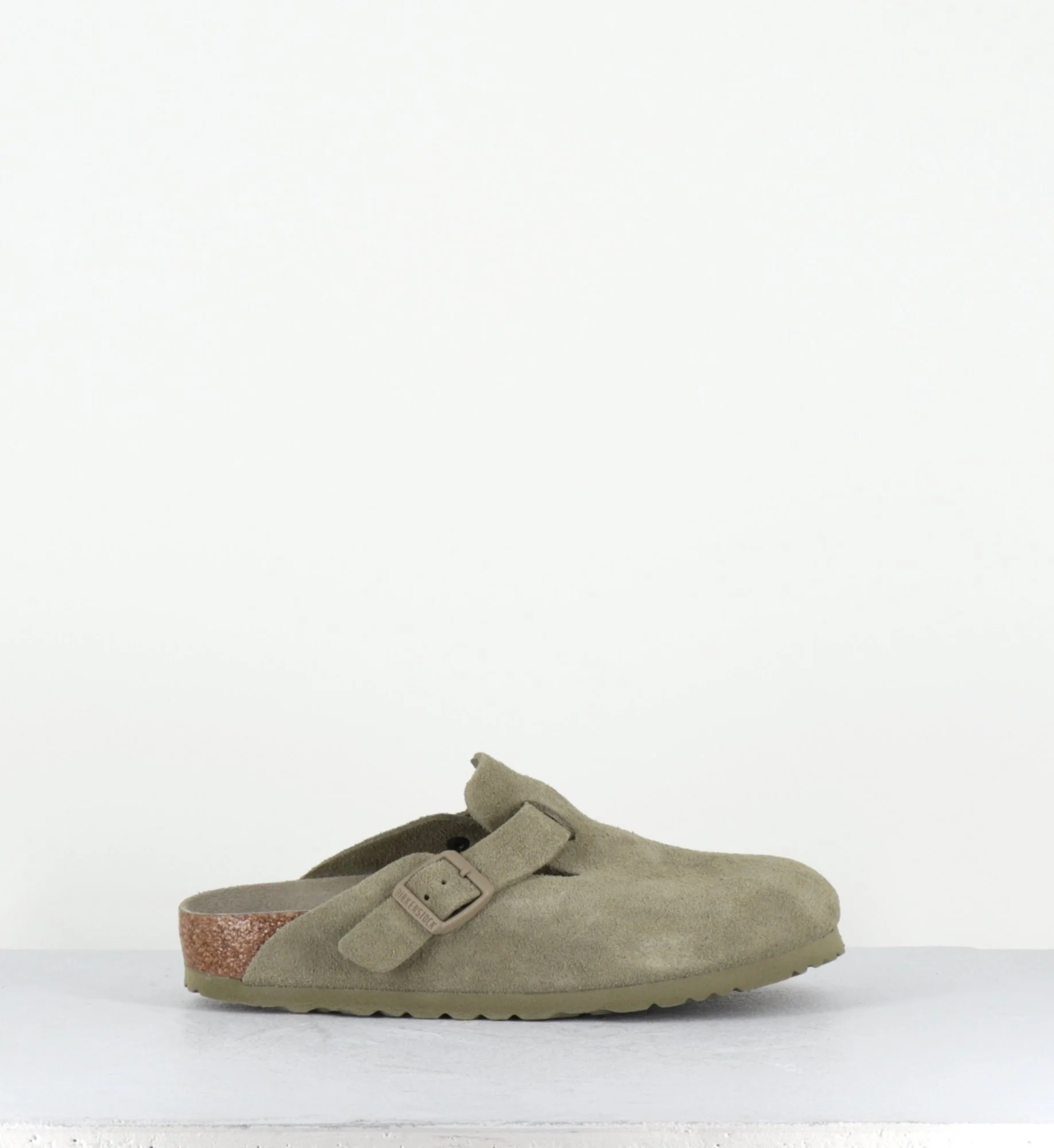 Sabots emblématiques de la marque Birkenstock, le modèle Boston se décline ici en daim kaki clair. Design minimal pratique et confortable, se porte sans problème tout au long de l’année.