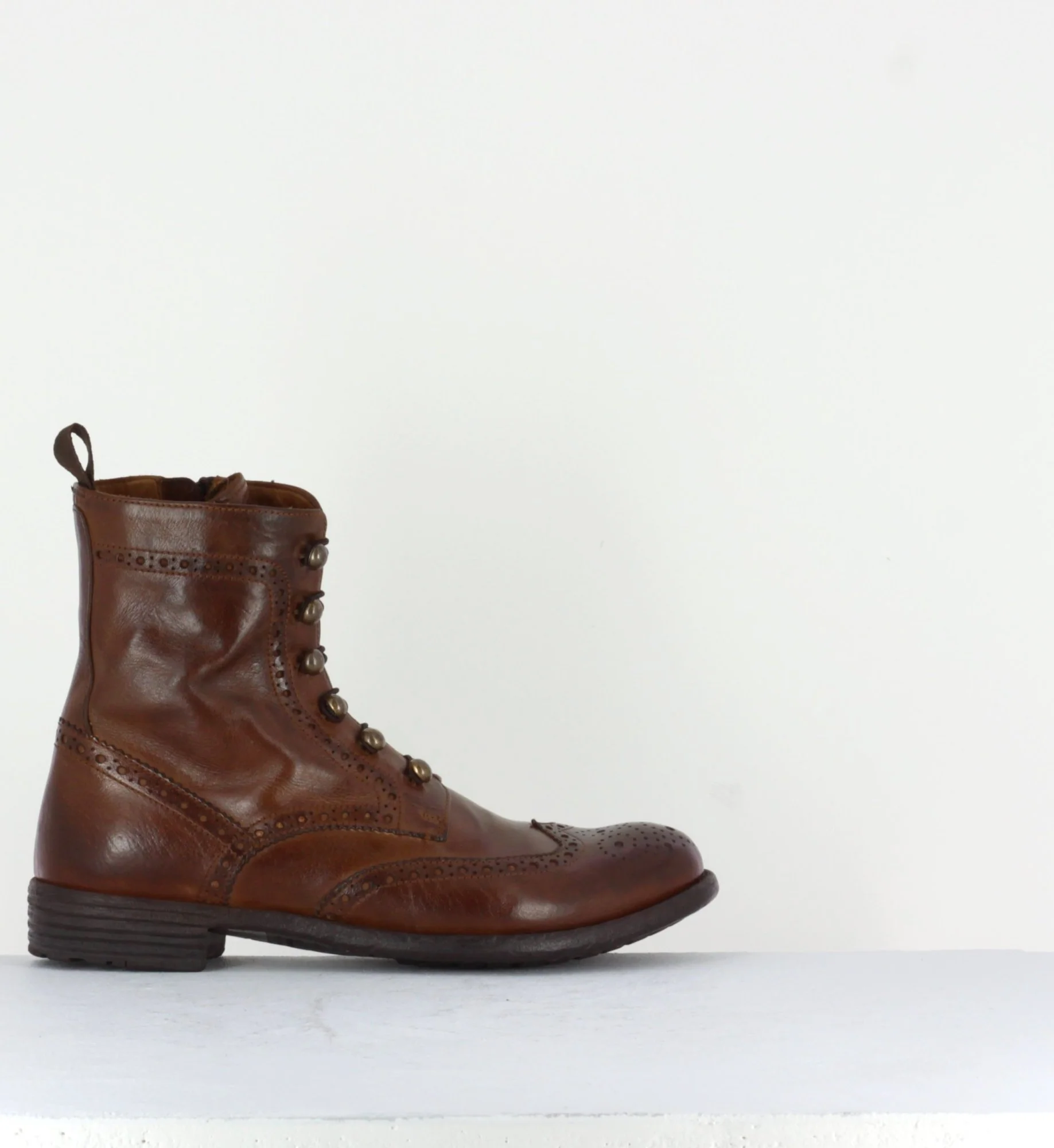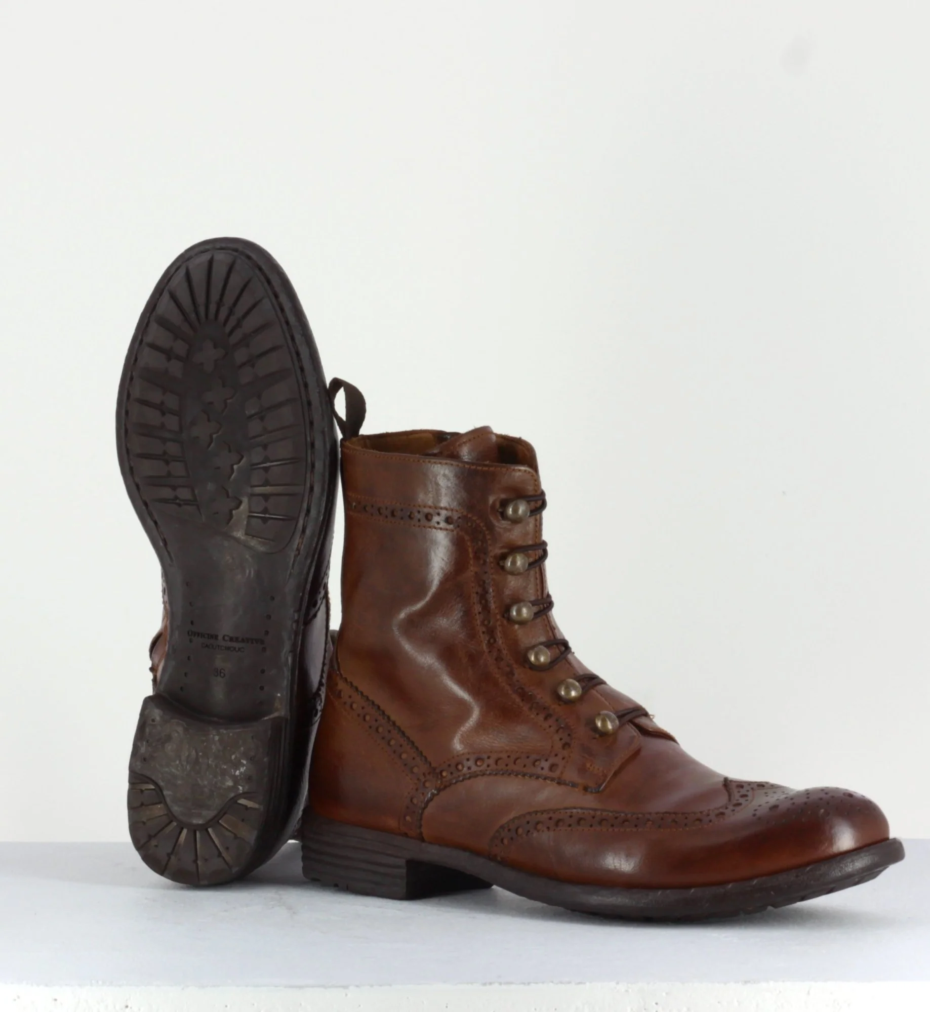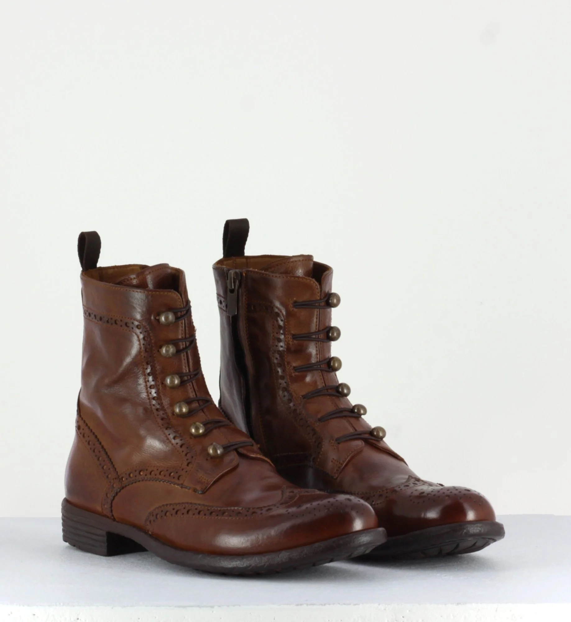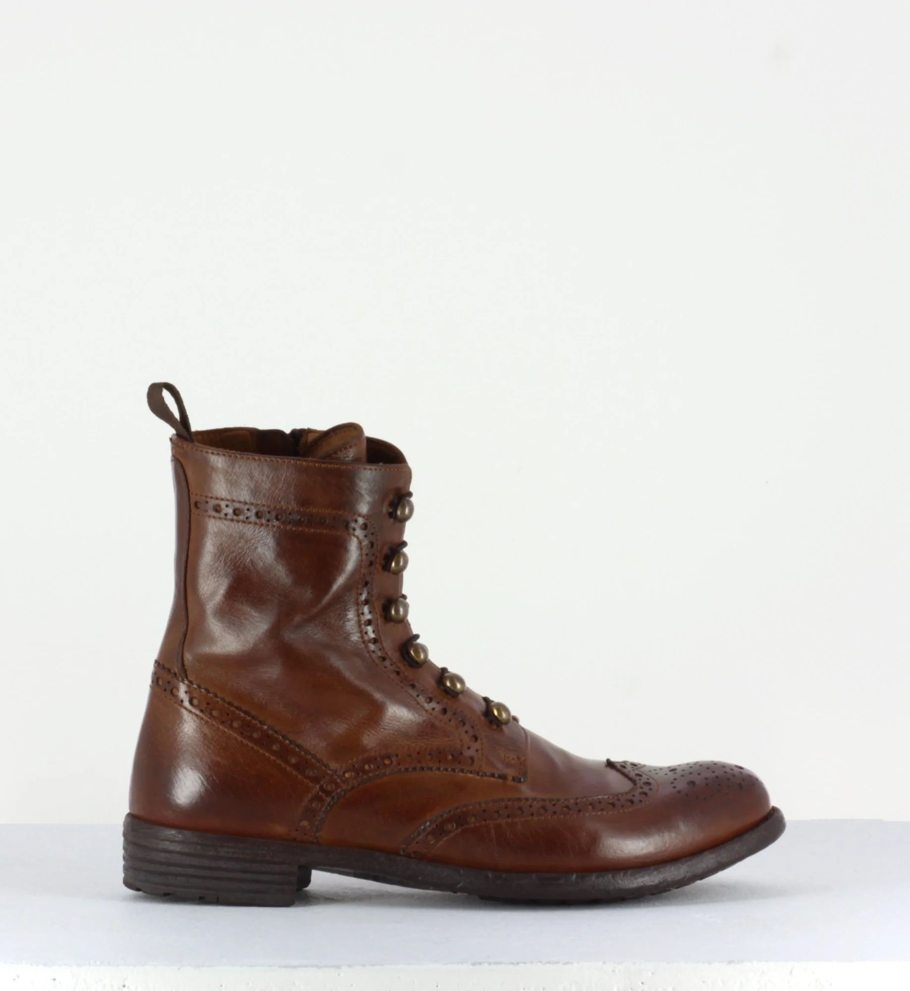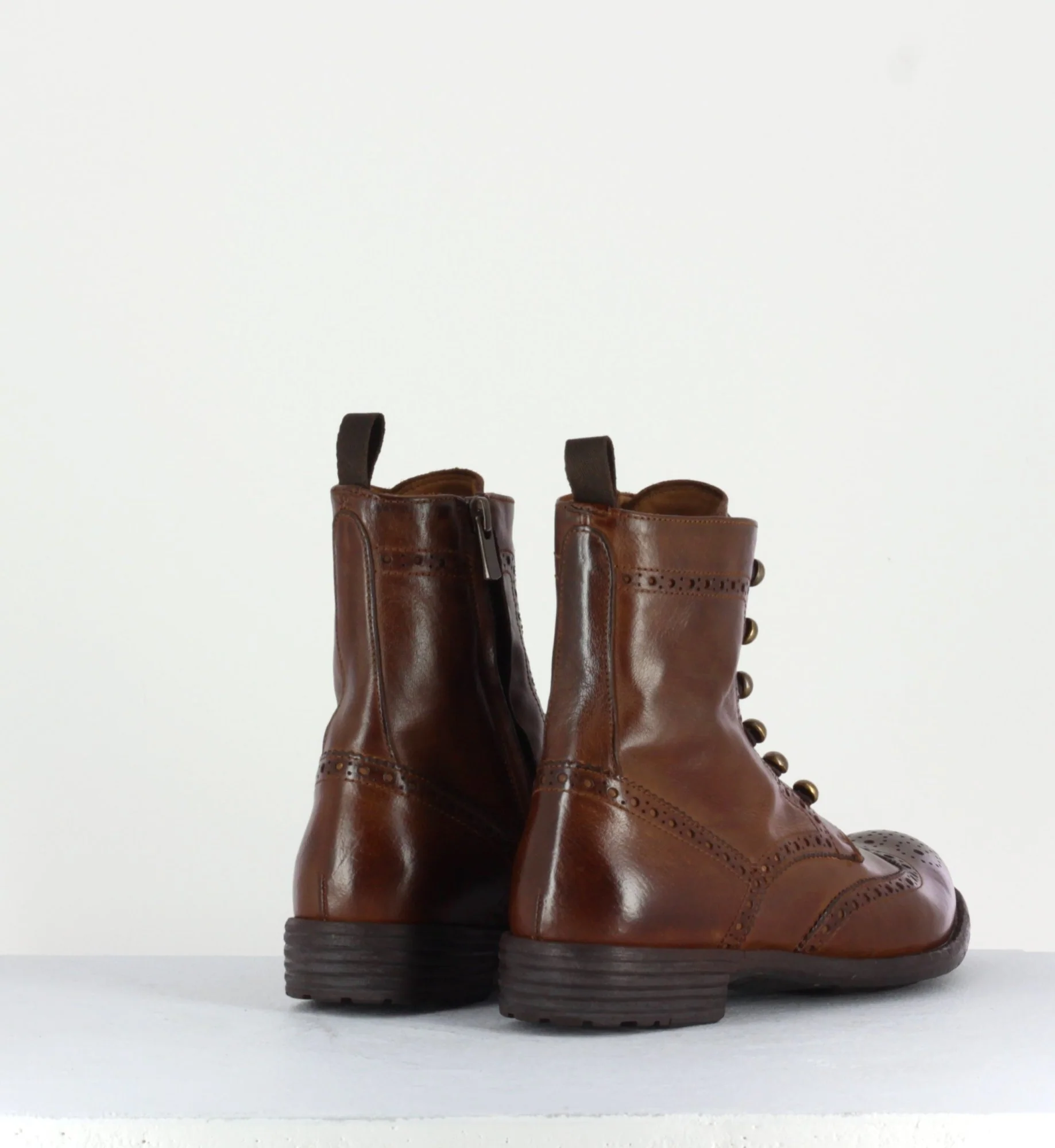 Bottines à boutons & motif brogue en cuir camel – MARS 018 SAUVAGE