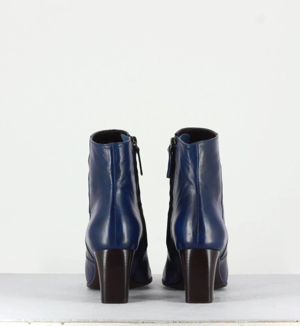 Bottines petit talons en cuir marine F568 – Garrice Lab