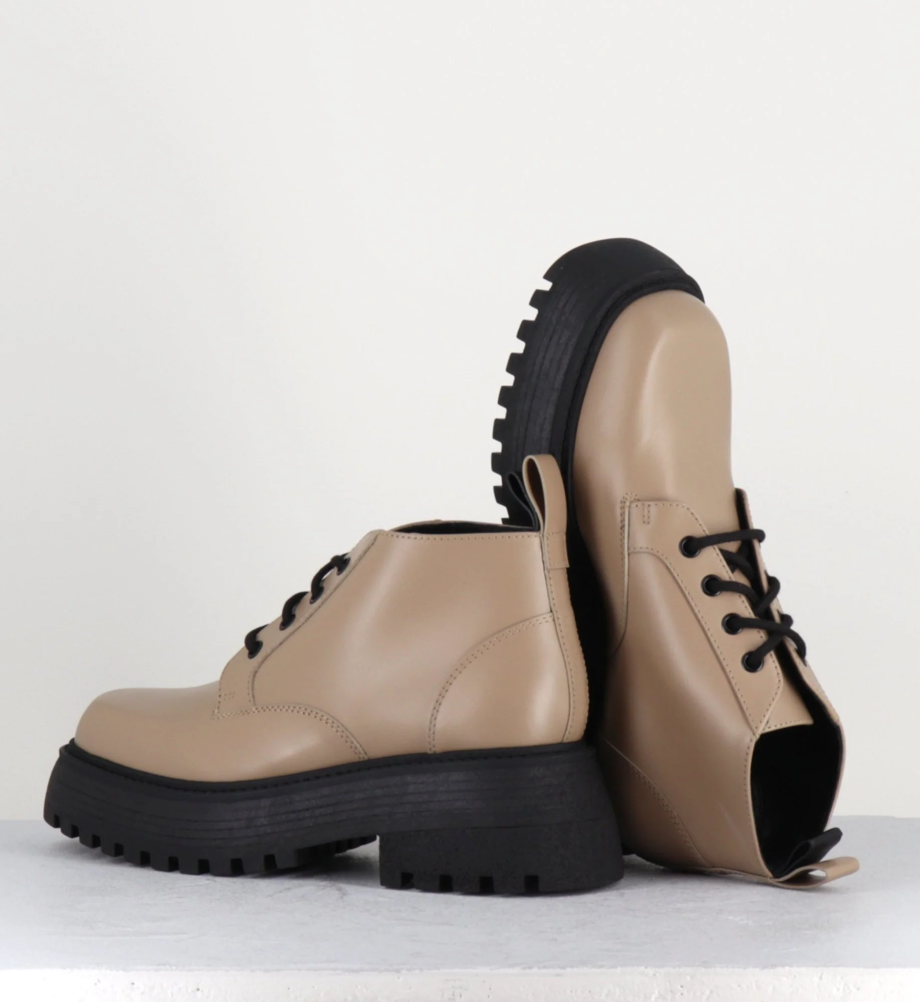 Chaussures à lacets chunky cuir beige – ROY LONDON TAUPE