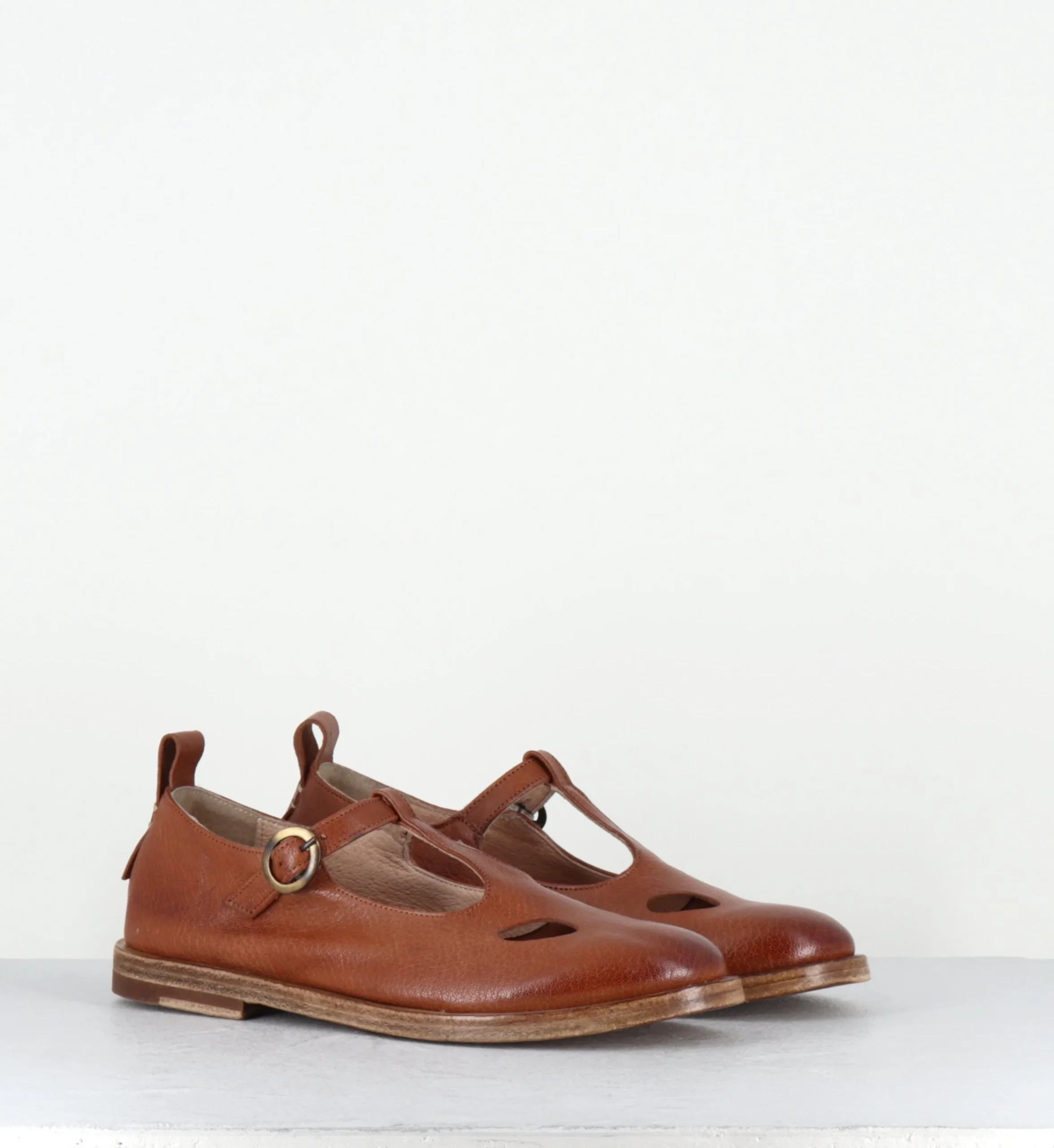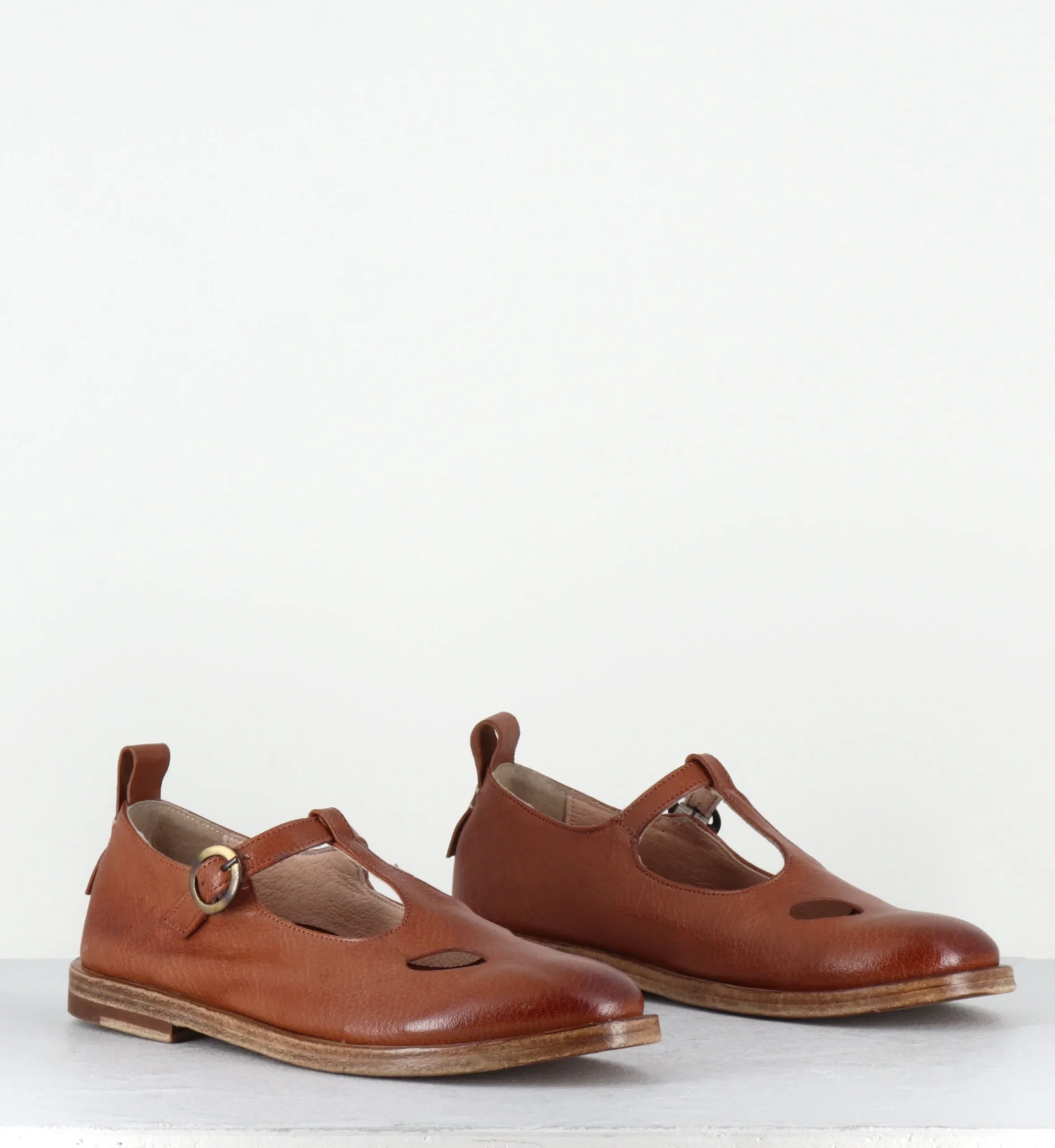 Chaussures Mary-Jane en cuir camel légèrement brossé pour un effet ‘vintage’, montés sur une semelle en cuir légère et souple