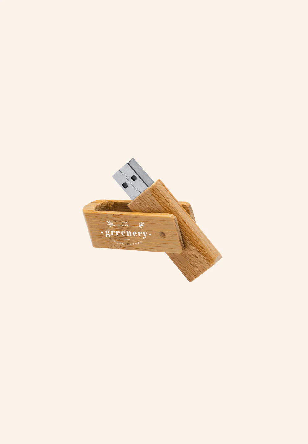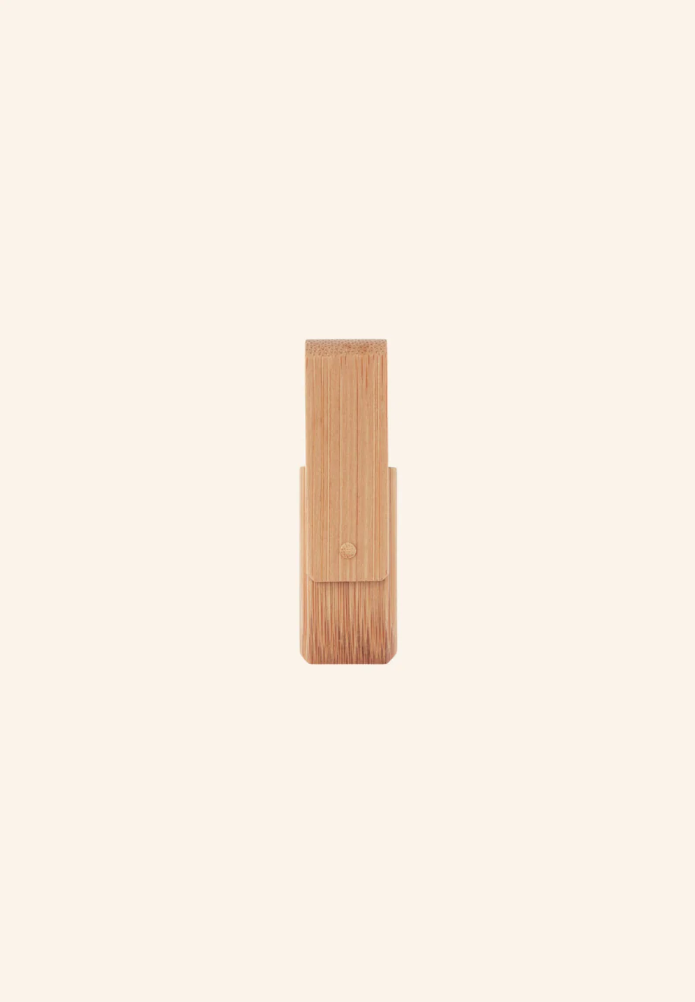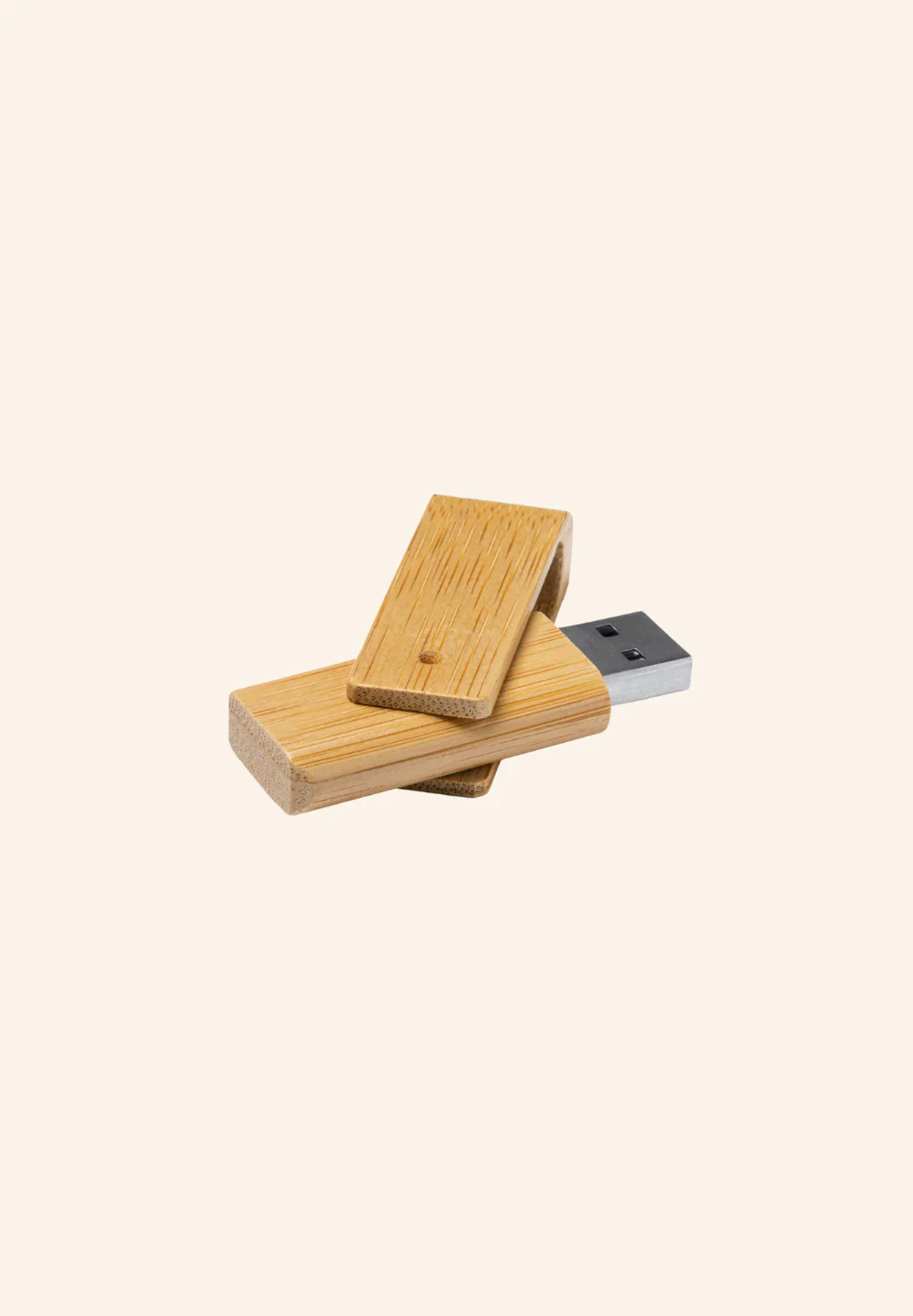 Je suis la clé USB rotative en bambou, parfaite pour la gravure au laser. Le bambou étant un matériau naturel, la couleur et le résultat de la gravure peuvent varier. Capacité de 16 Go.