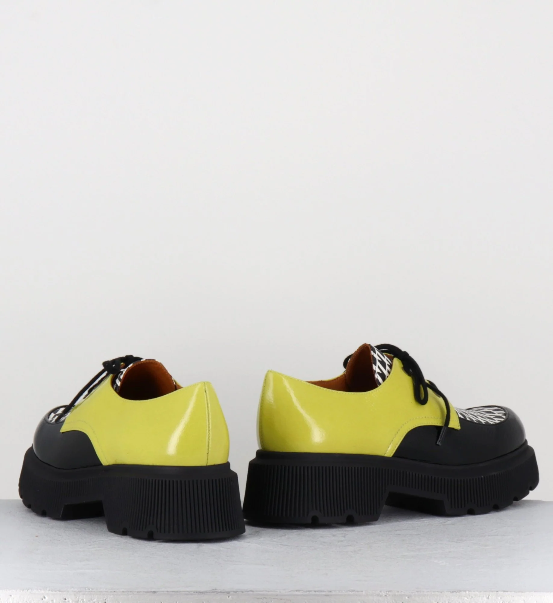 Derbies semelle épaisse en cuir vernis noir & jaune – QUAMBA SUCRE NEGRO