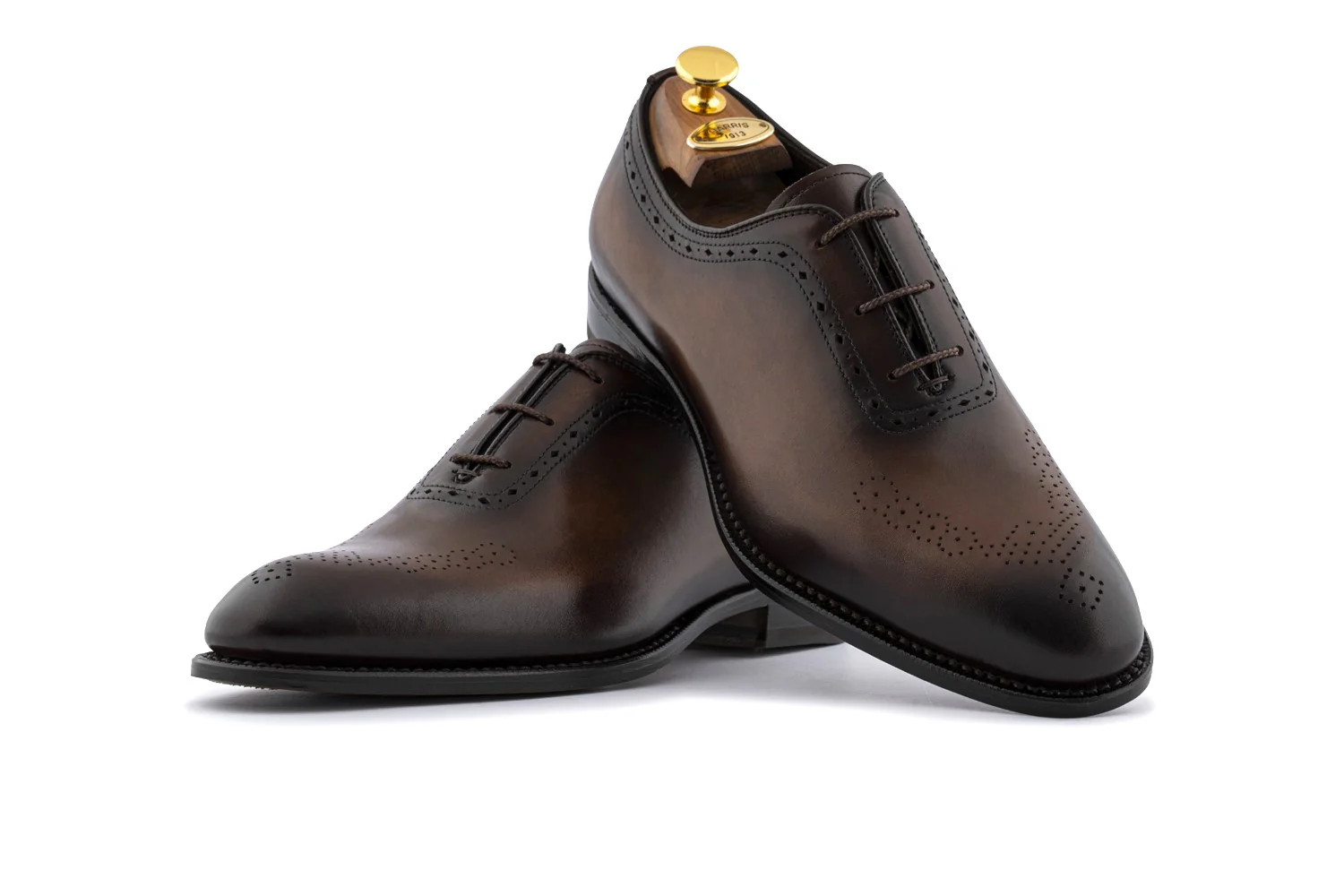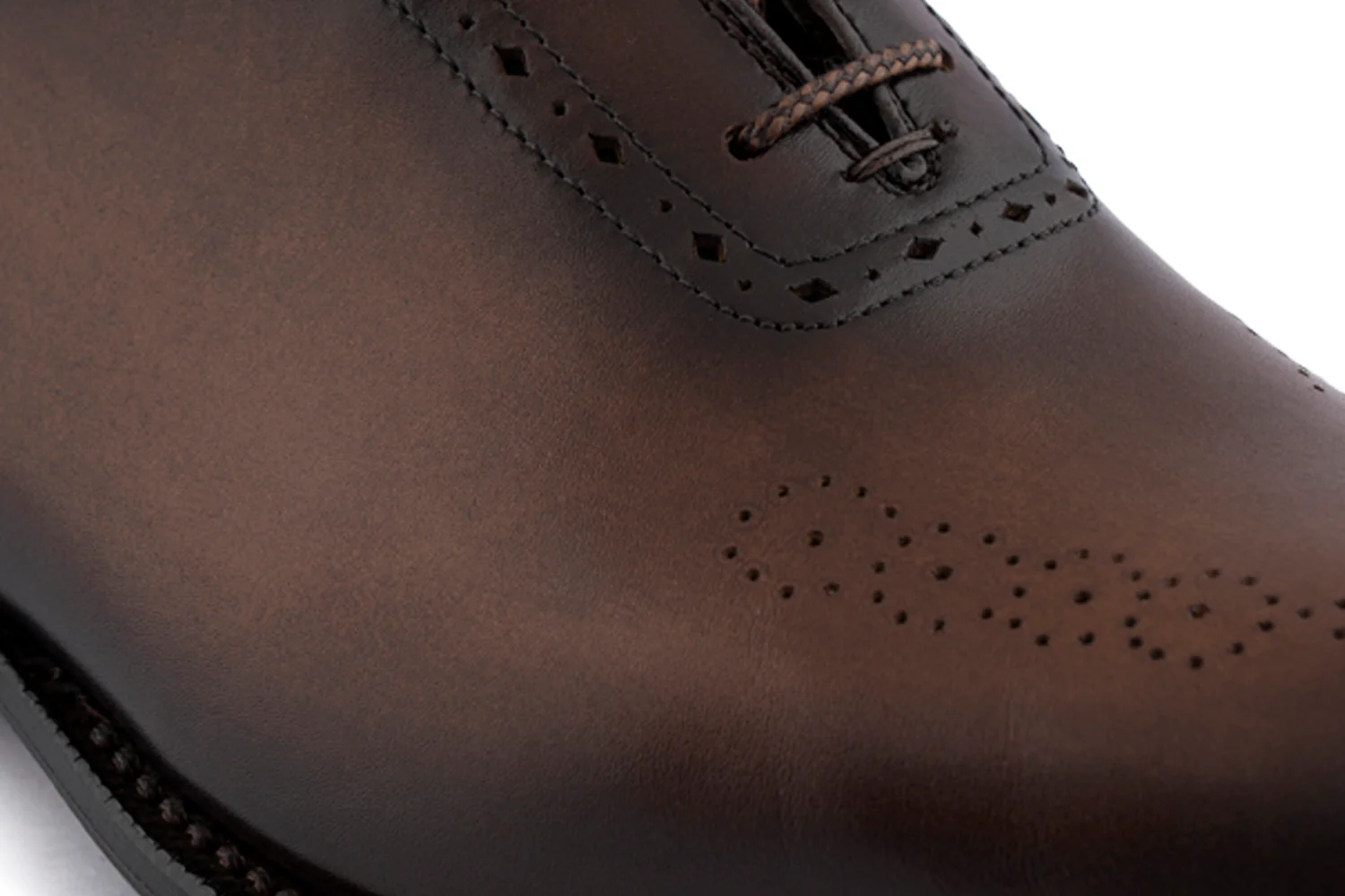 Cuir français en français et peint à la main pour améliorer les nuances et les profondeurs uniques avec des détails brouges qui embellissent le design. La tige est transparente pour assurer un confort supérieur tandis que la semelle en cuir avec un insert en caoutchouc non glisser assure la stabilité et la durabilité.