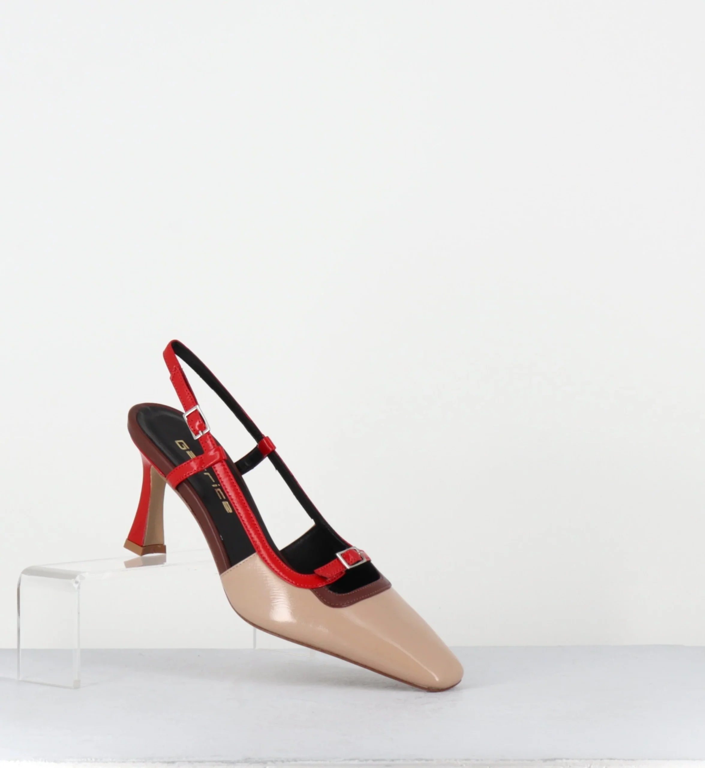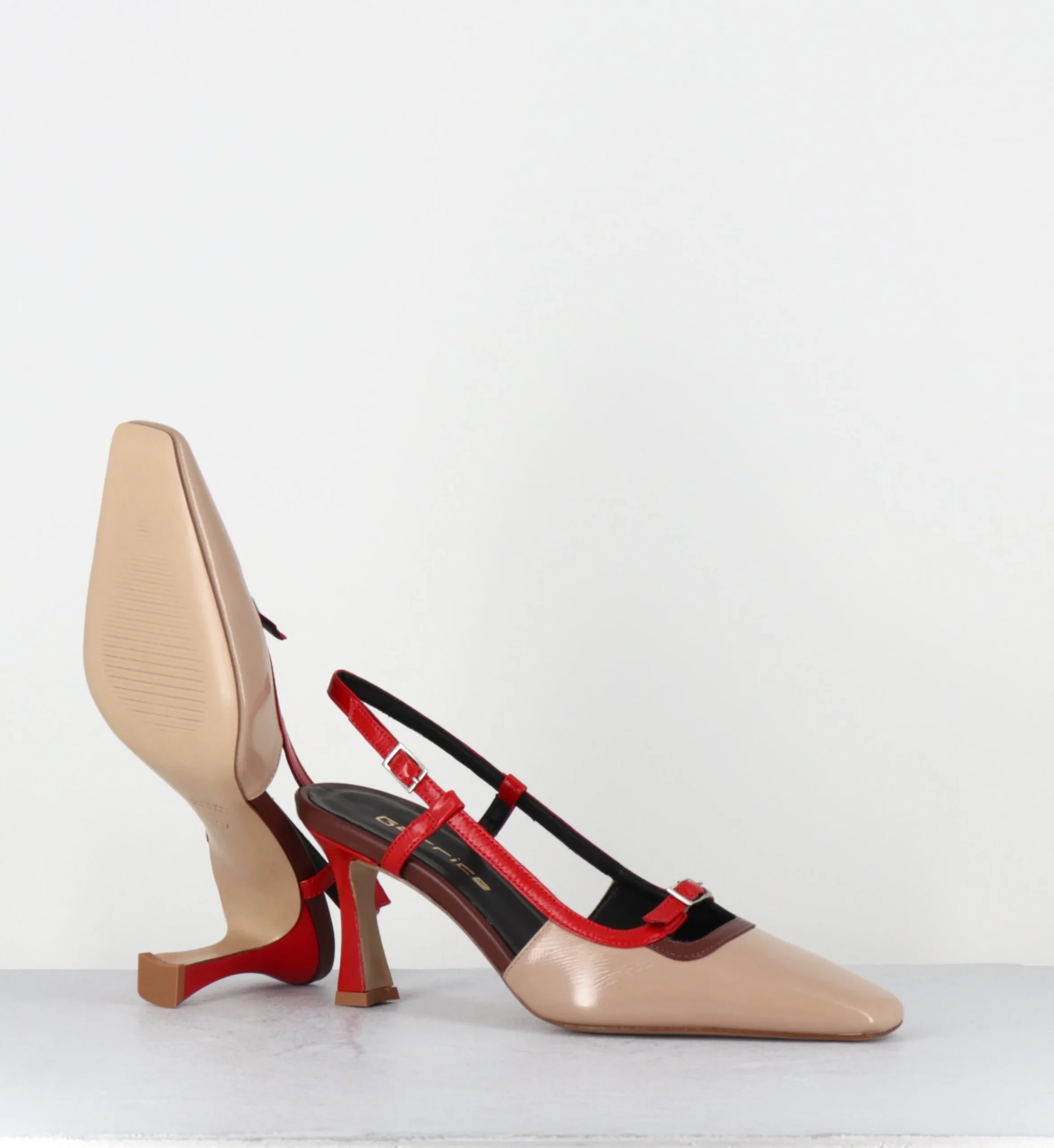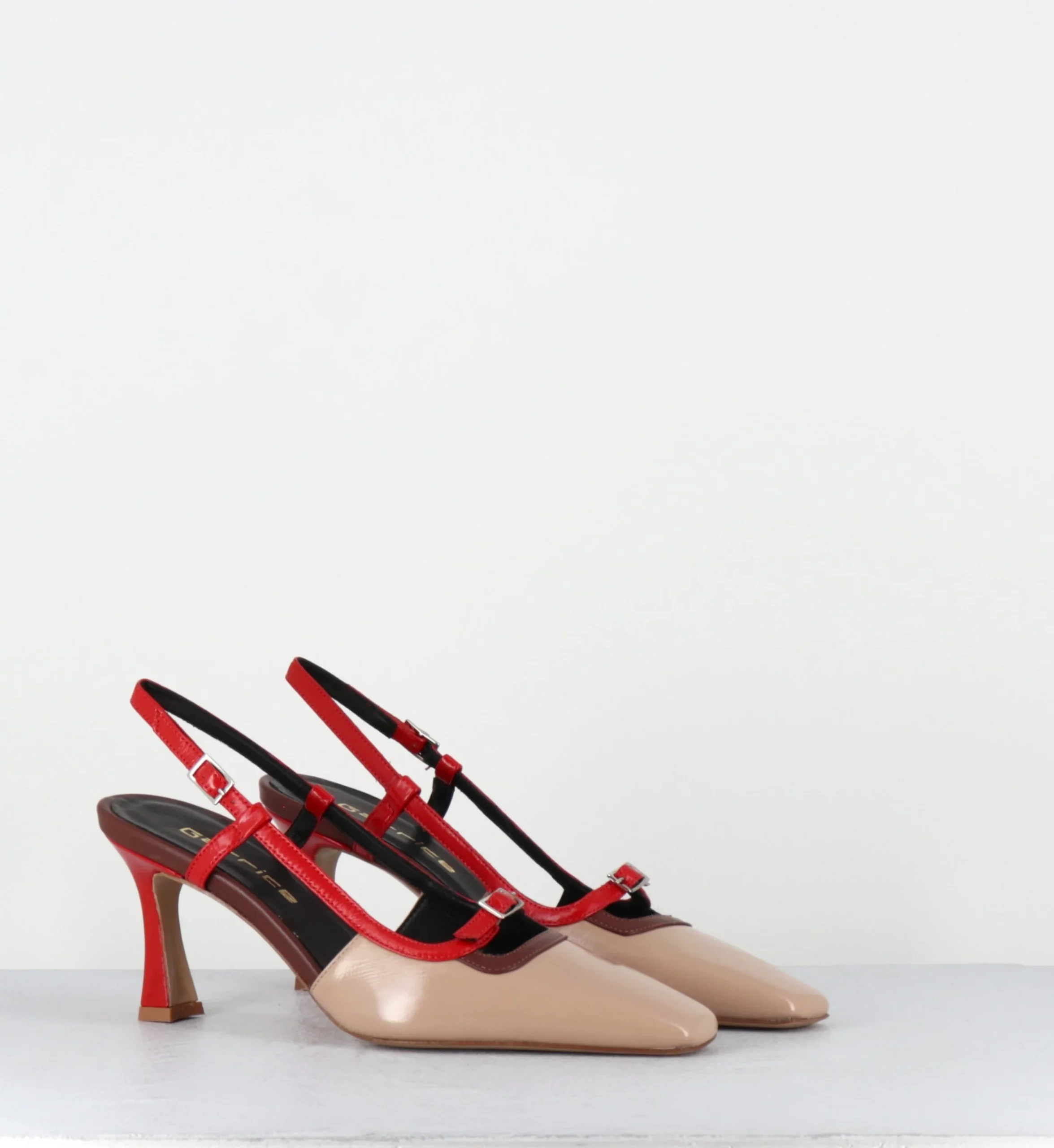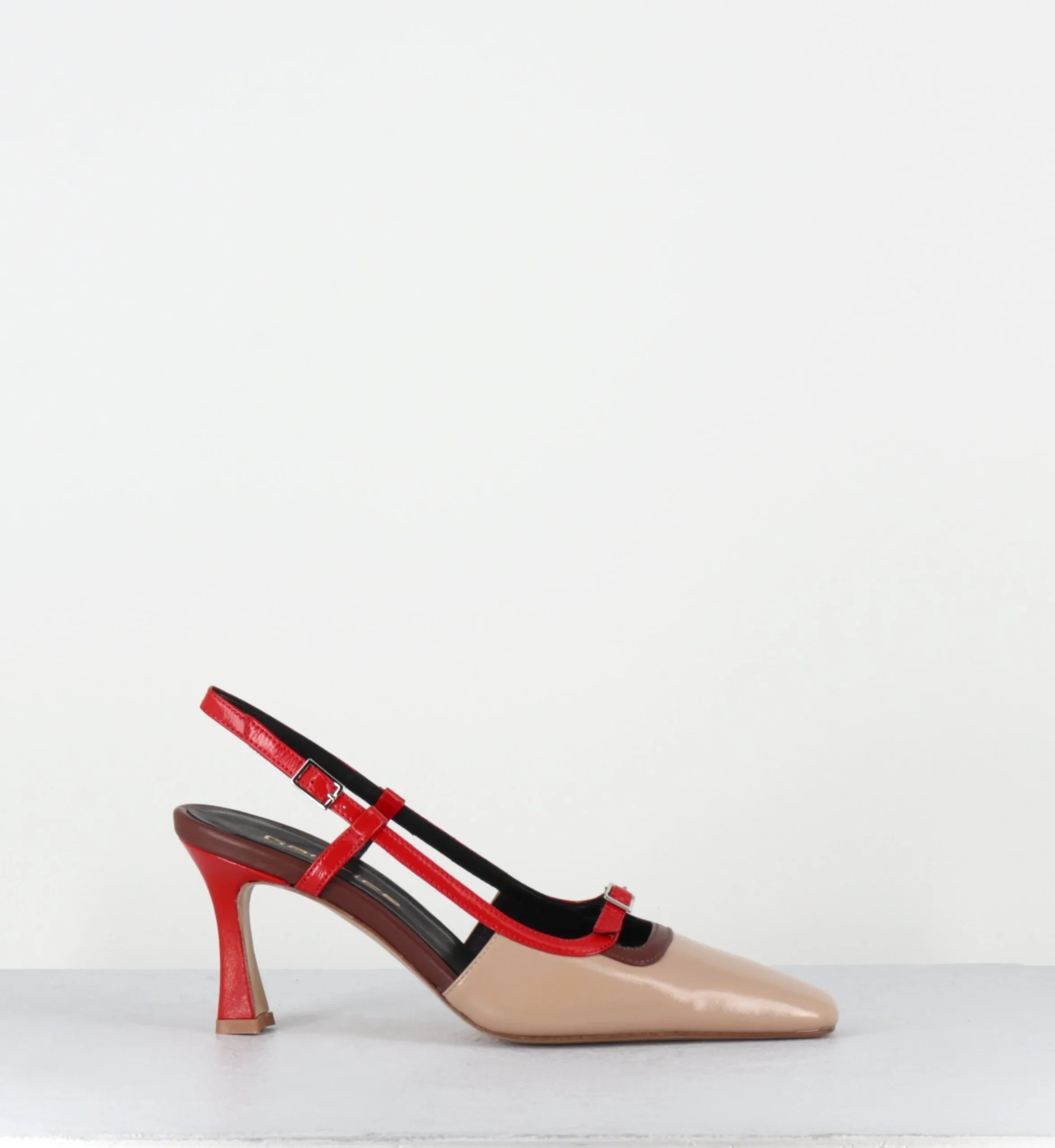 Escarpins slingback à talon bout carré beige marron rouge – DRINO PITTI NATURE