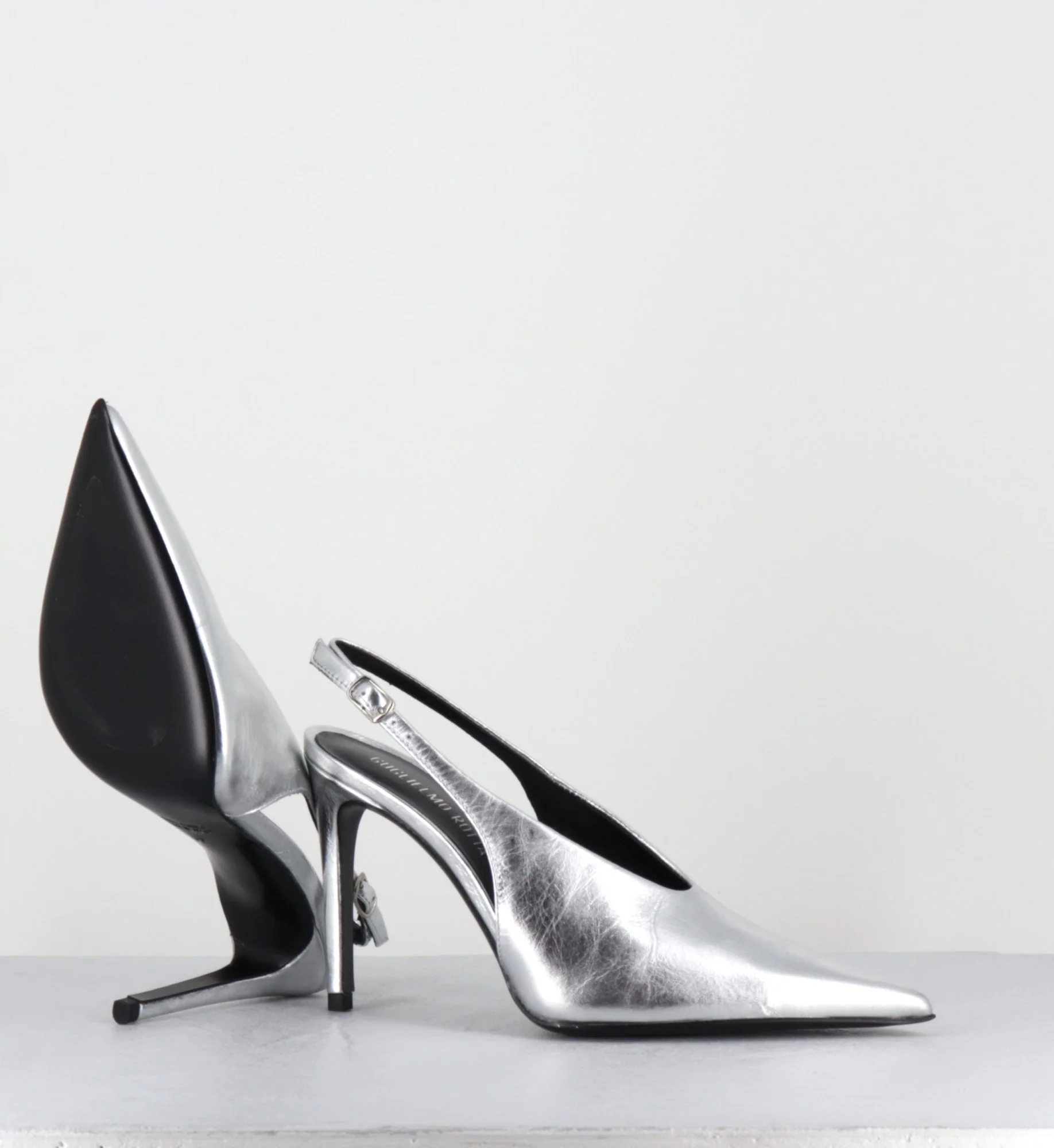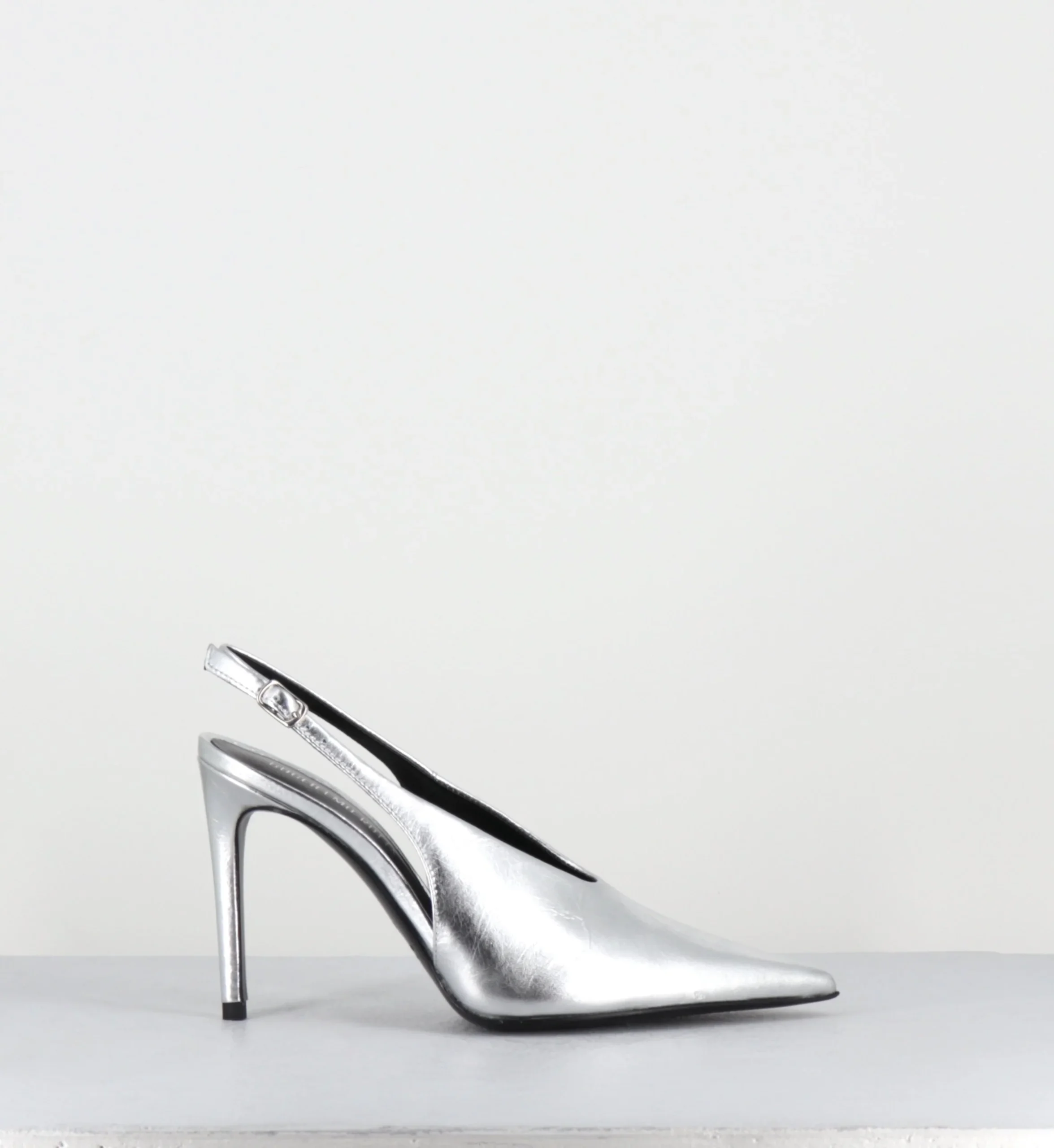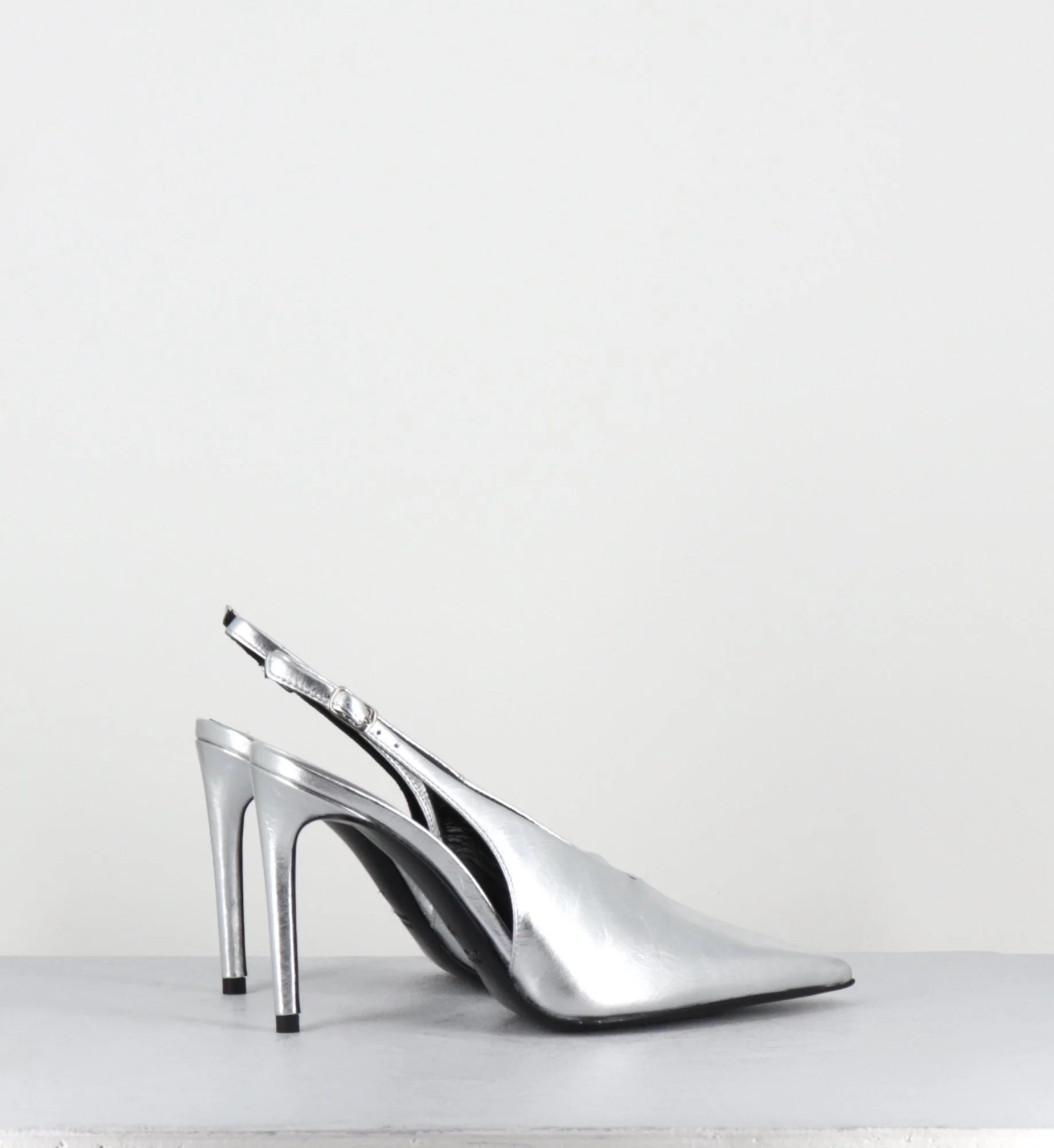 Escarpins slingback talon haut en cuir argent – FEEL SCRATCH SILVER