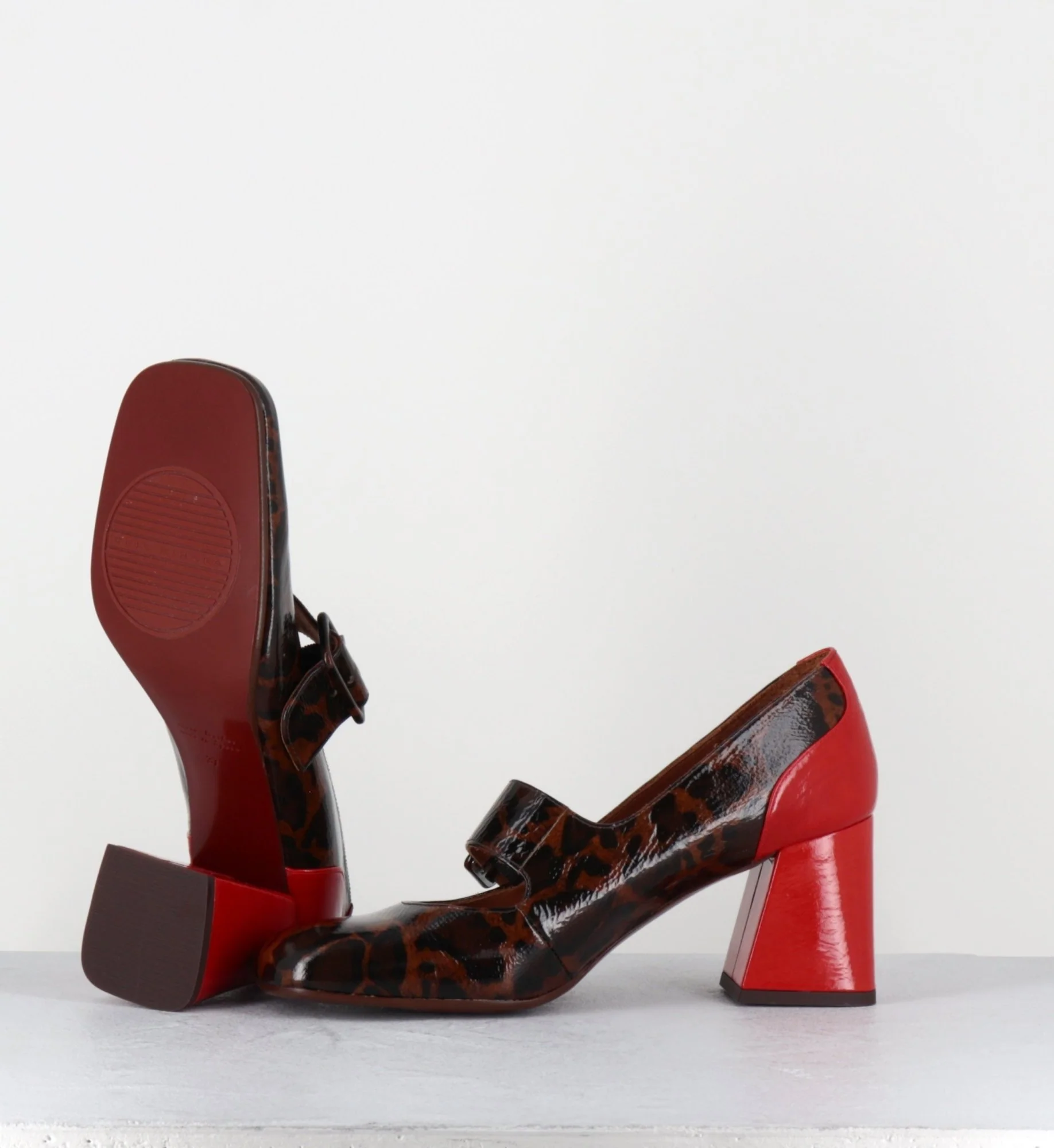 Mary-Jane à talon en cuir vernis leopard & talon rouge – SYSA FIAT CASTANO