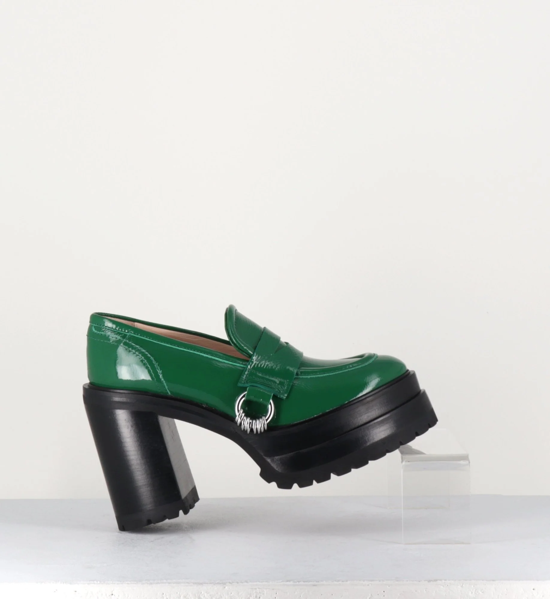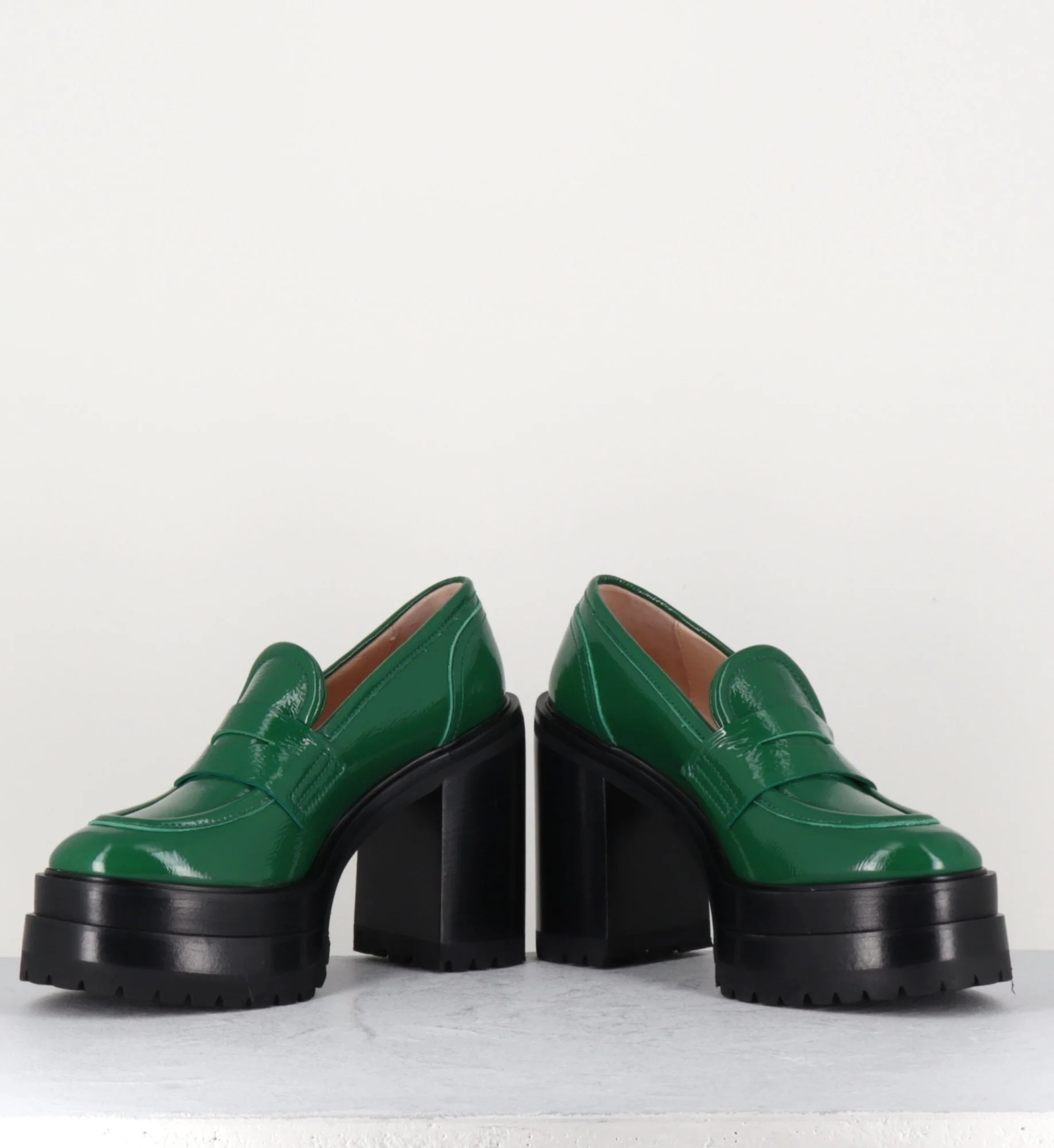 Mocassins à plateforme & piercing 90s cuir vernis vert – TASKY EMERALD