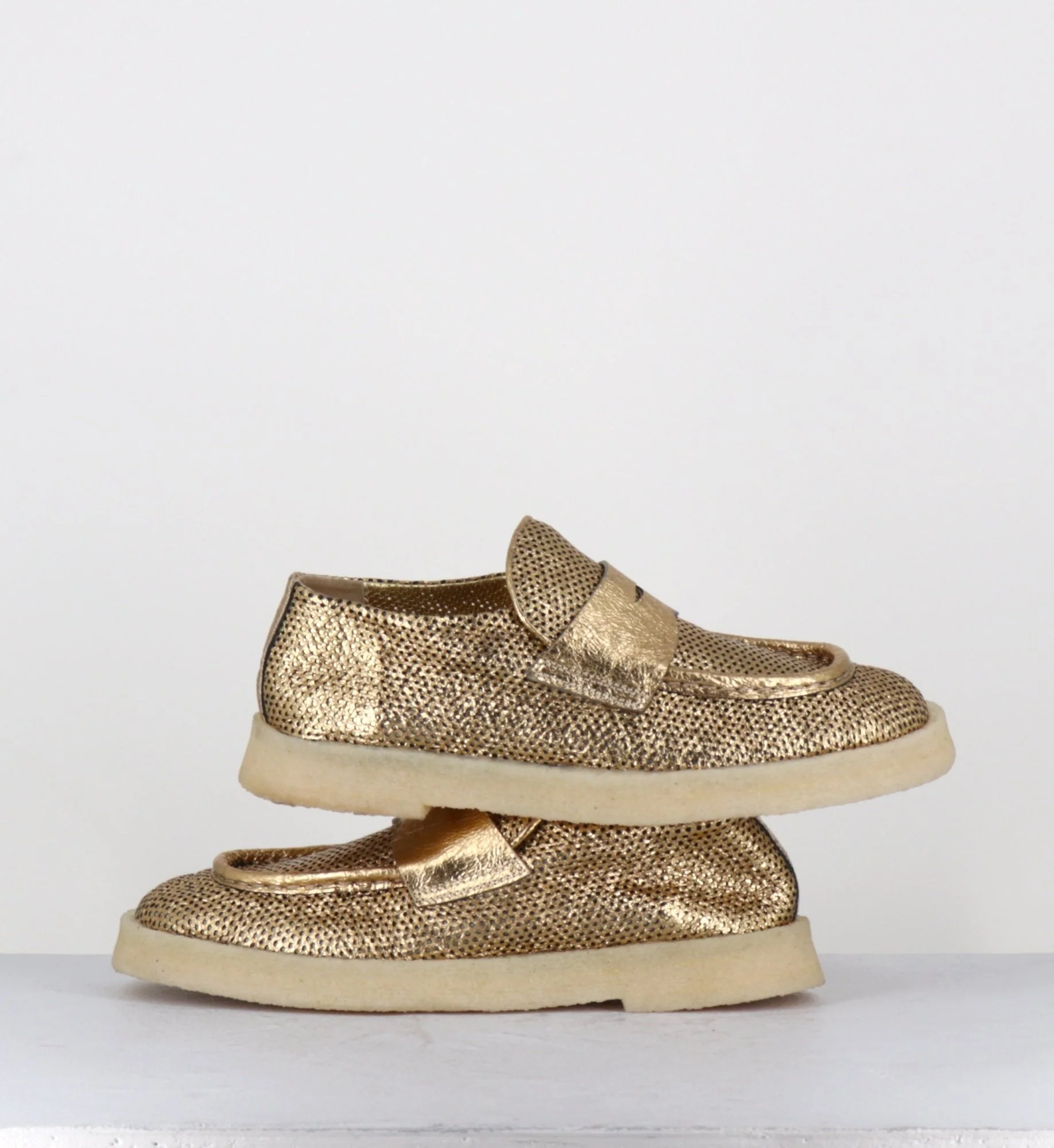 Mocassins en cuir métallisé doré & crêpe – 10816 TERENZ MEKONG