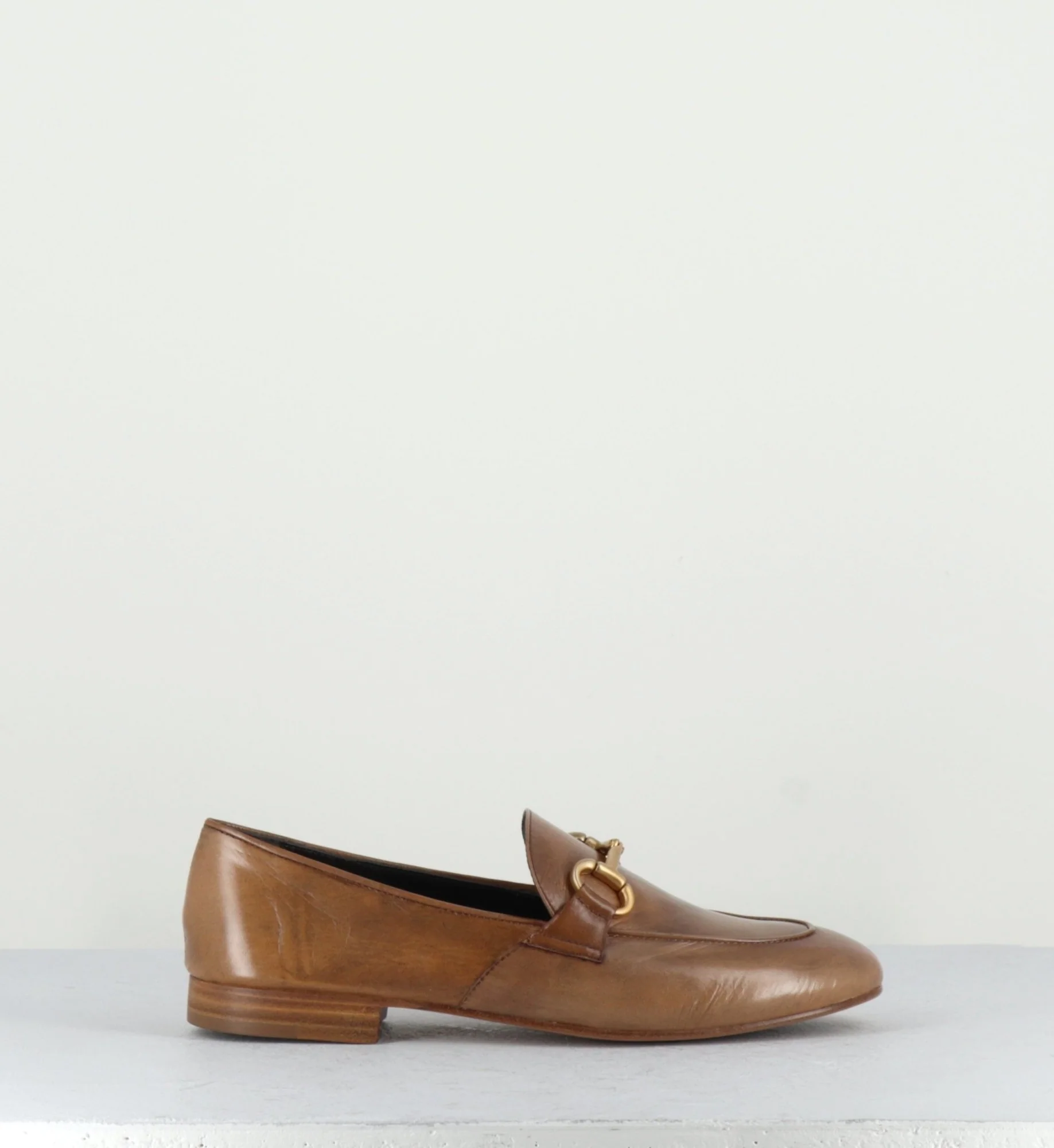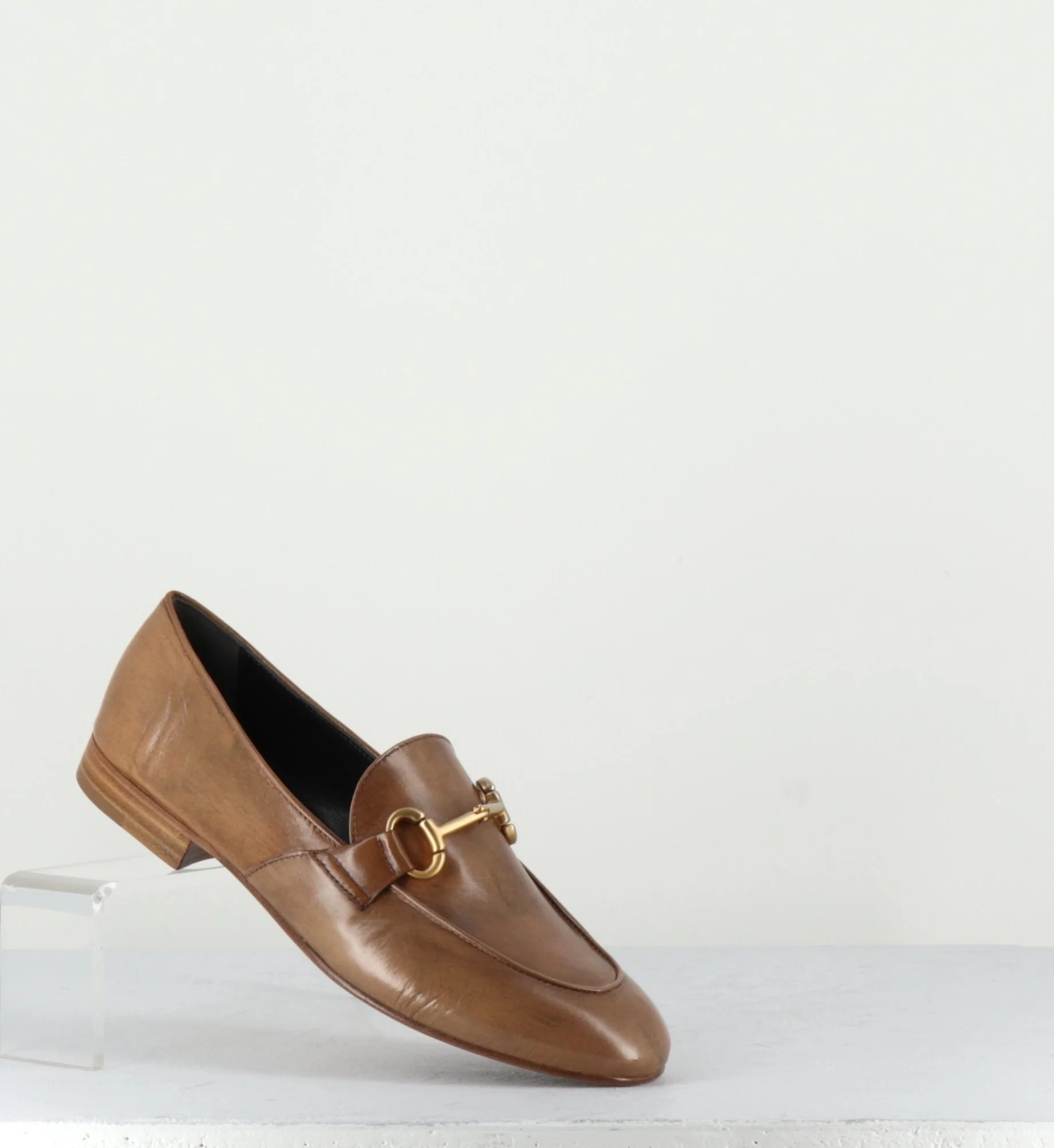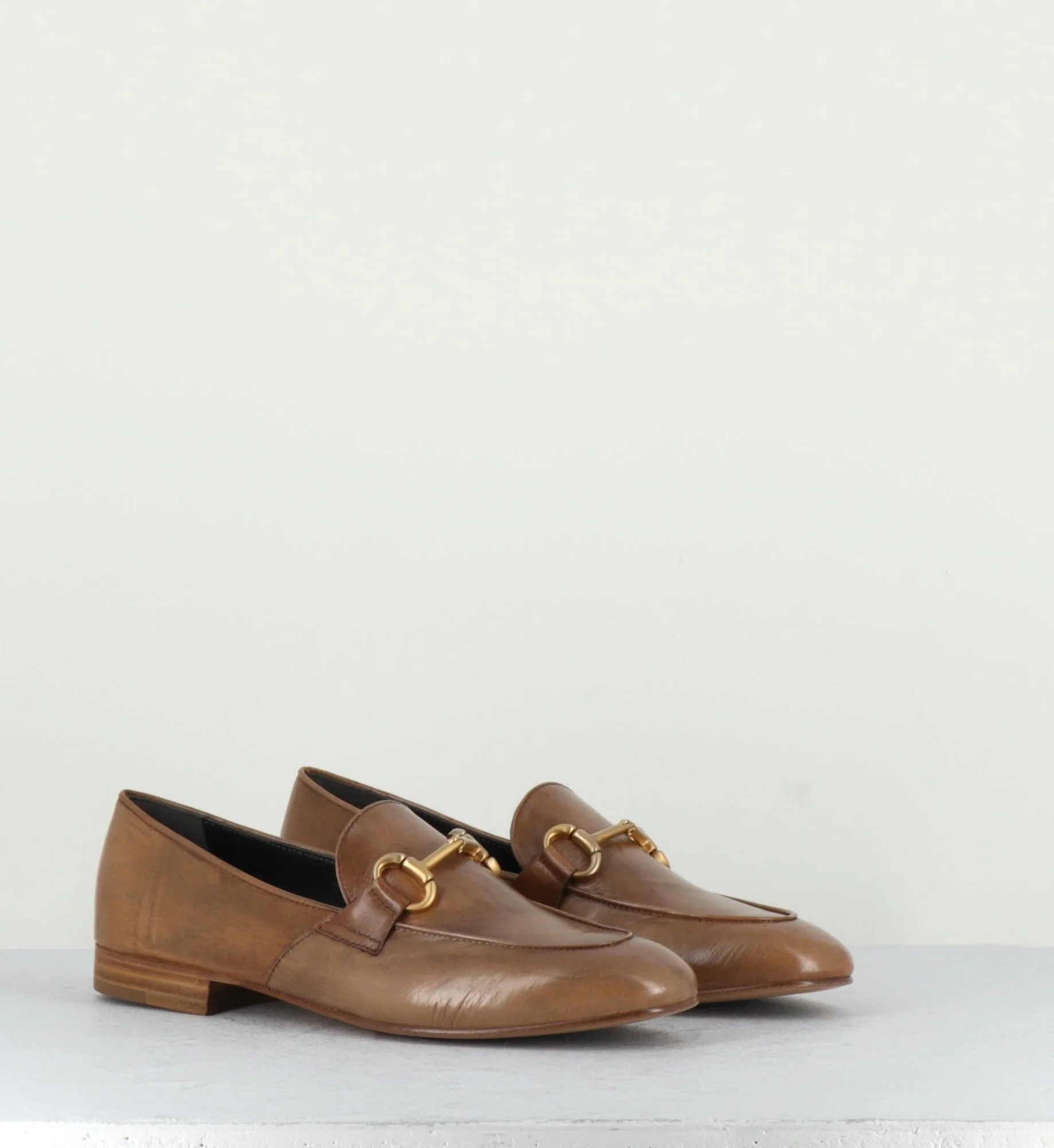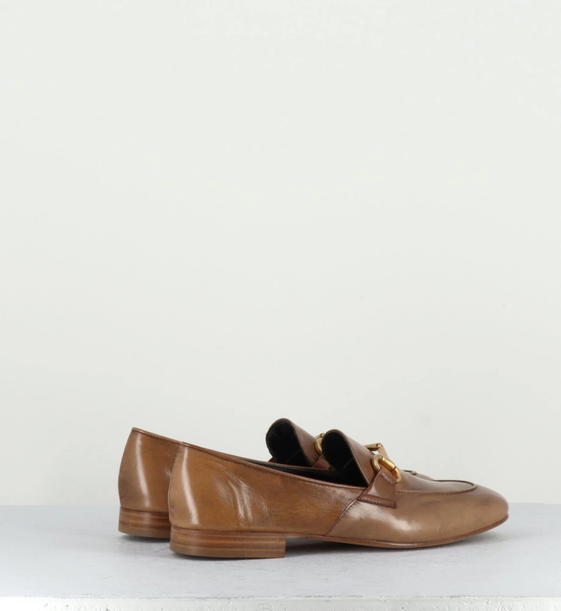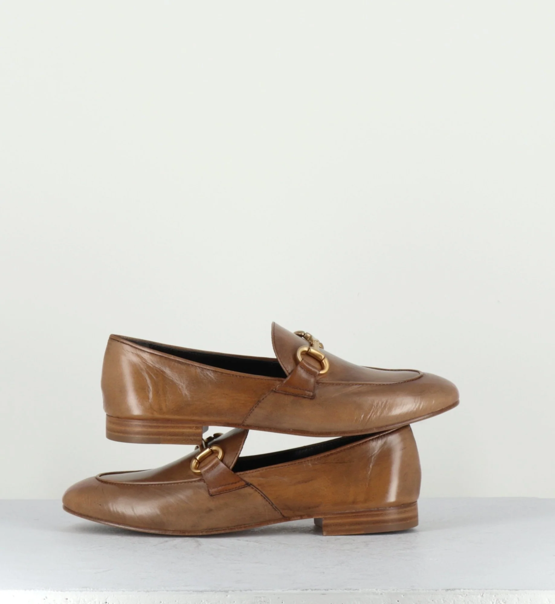 Mocassins plats en cuir souple camel & mors doré – N125 CUOIO