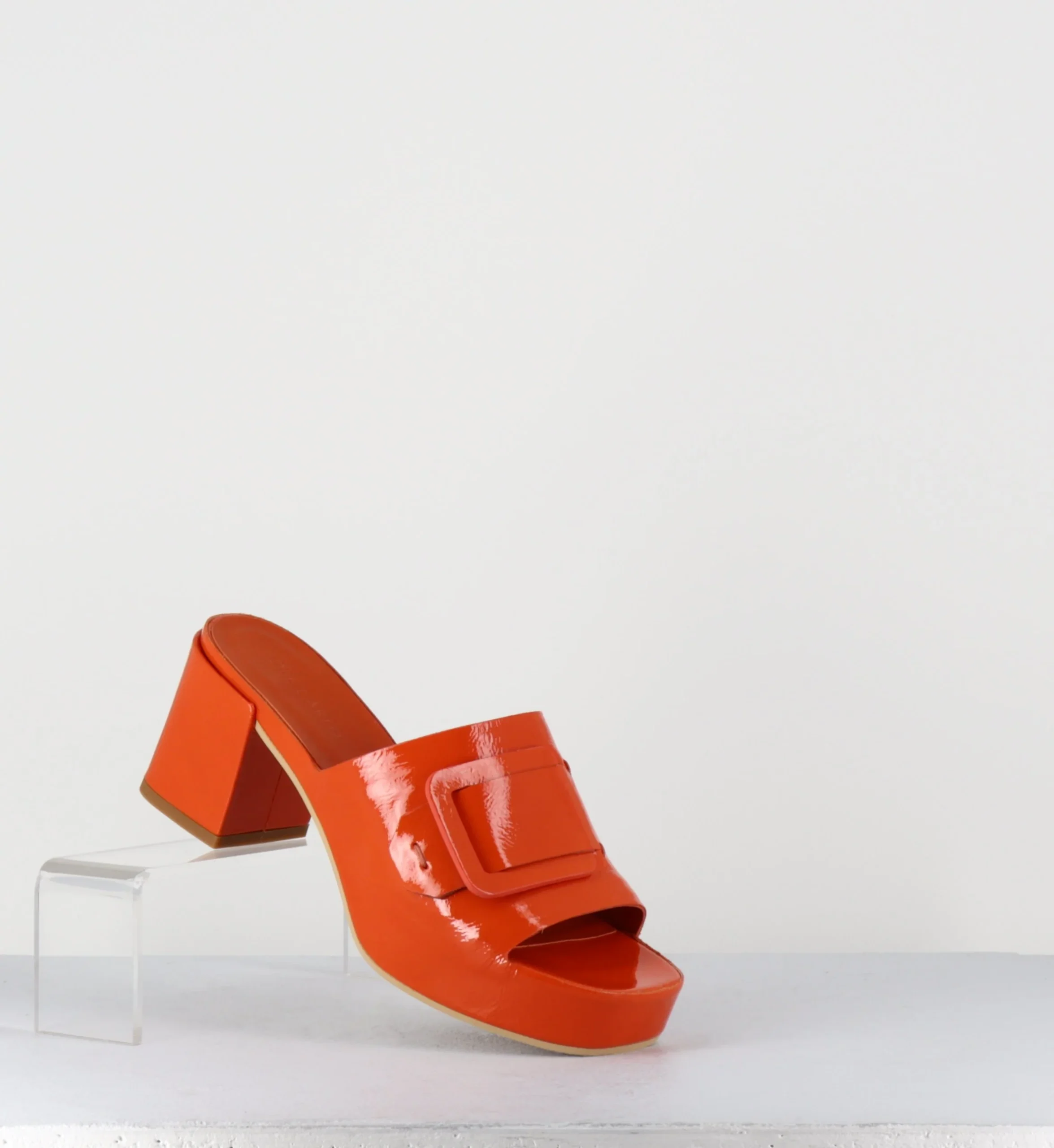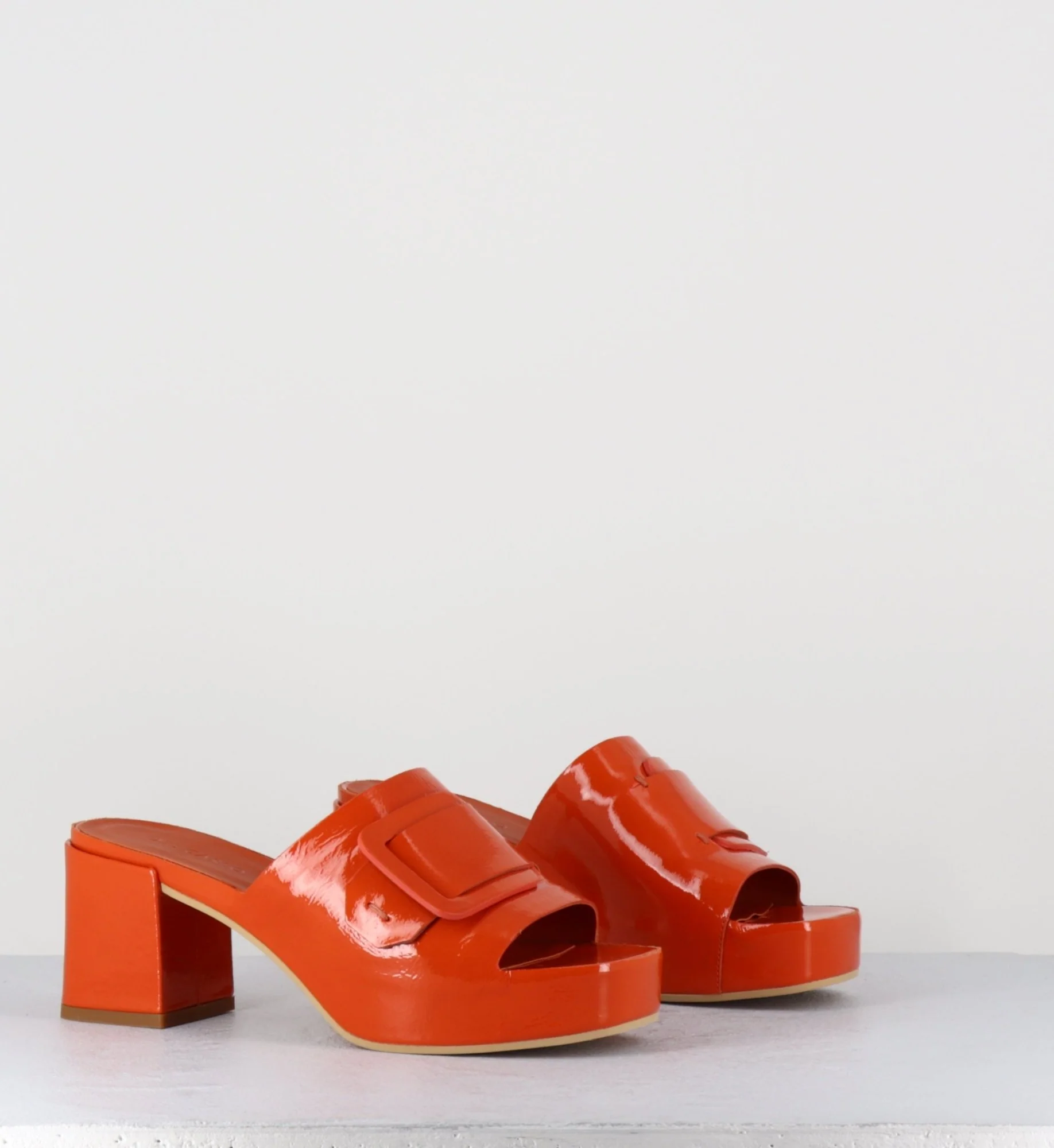 Mules à plateforme petit talon vernis orange – 11532 VETRO ORANGE