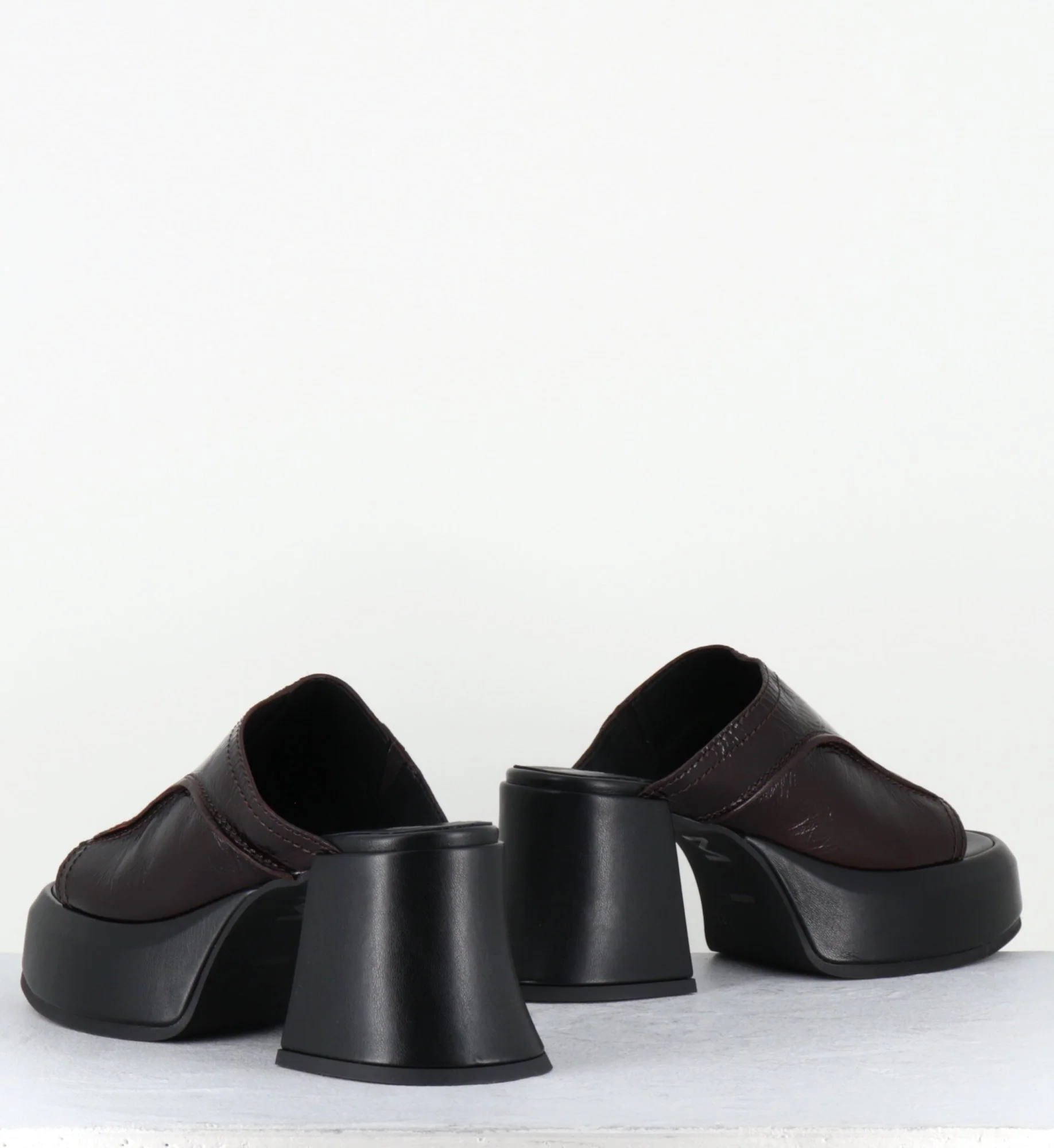 Mules à plateformes 70s cuir marron & surpiqûres – LOTA BROWN SANDAL