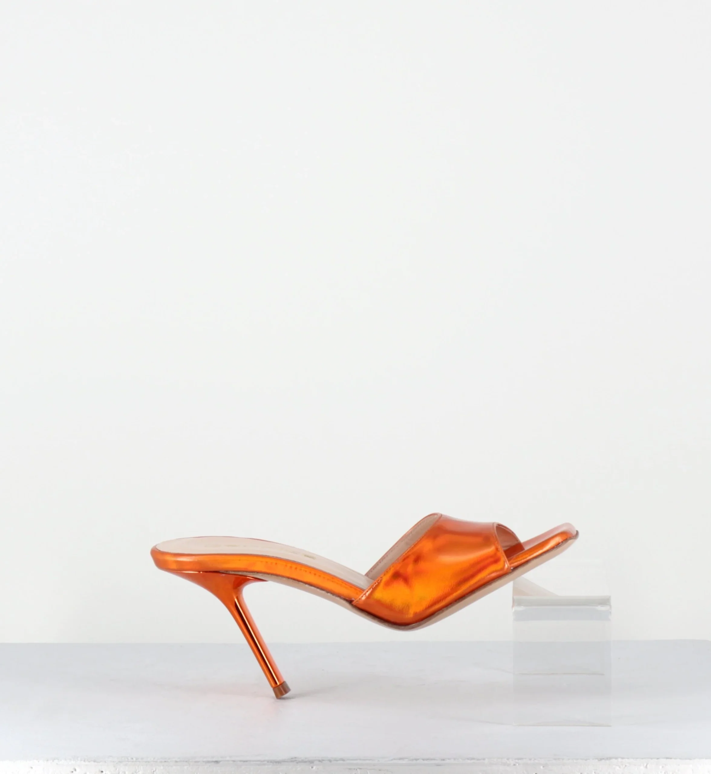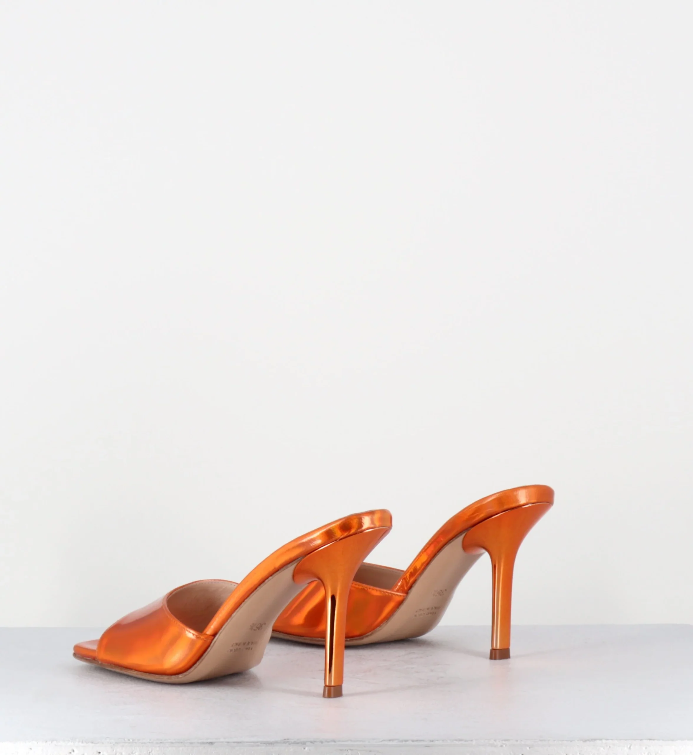 Mules à talon haut en cuir métallisé orange 90s – RAMA1 SPECCHIO LAME