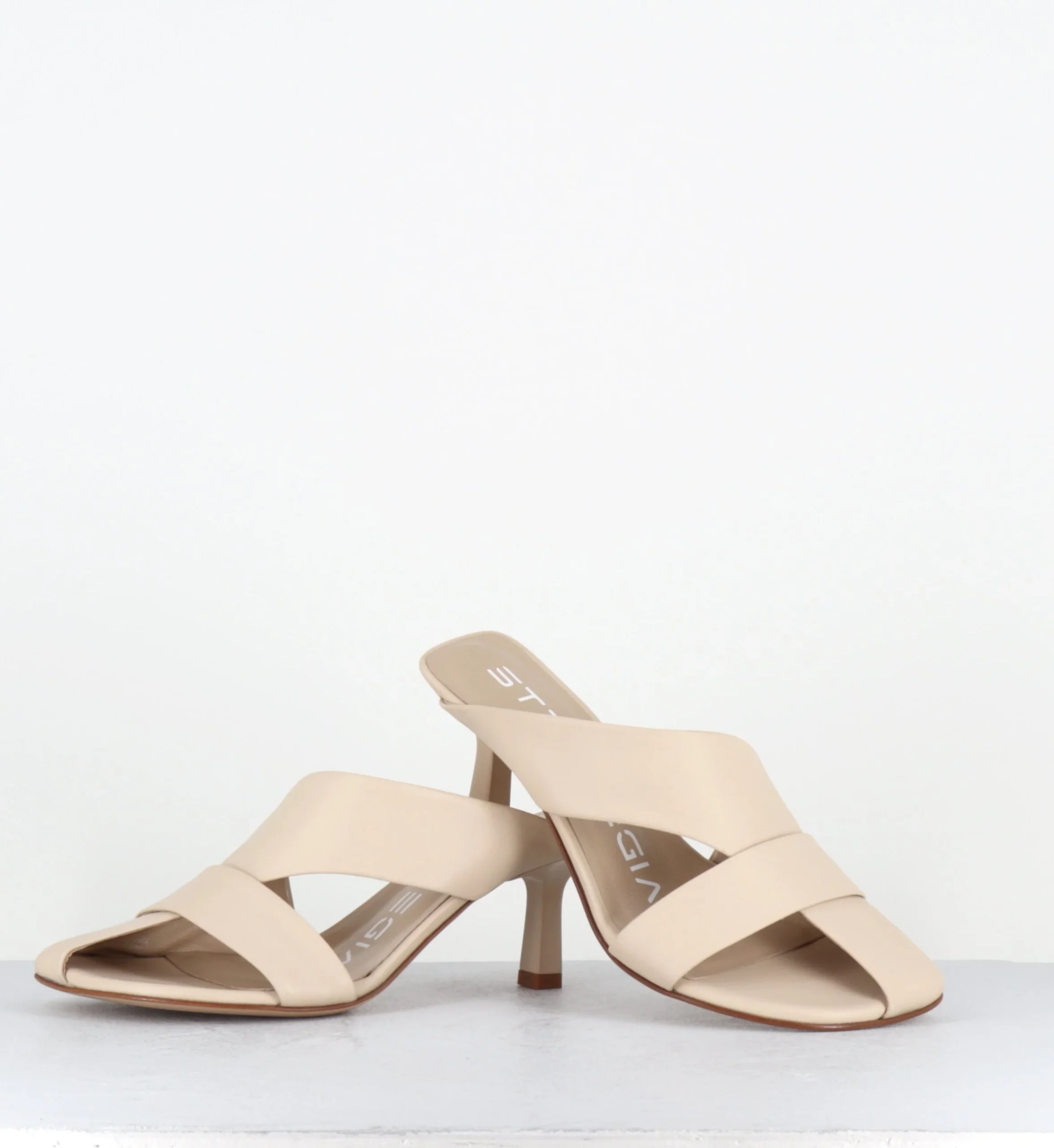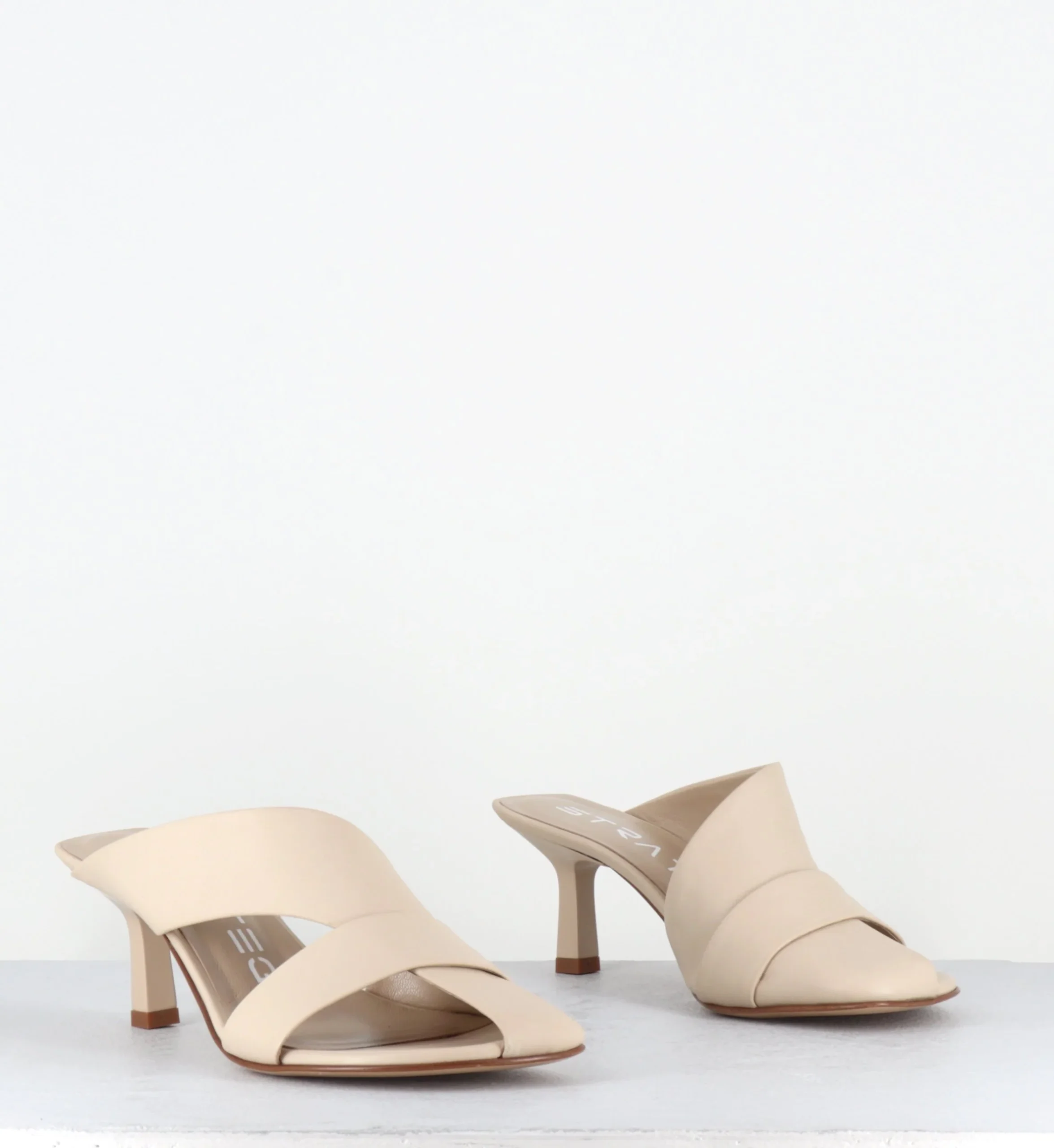 Mules en cuir beige asymétriques semi-couvrantes à talon – A5941 LAMB ECRU