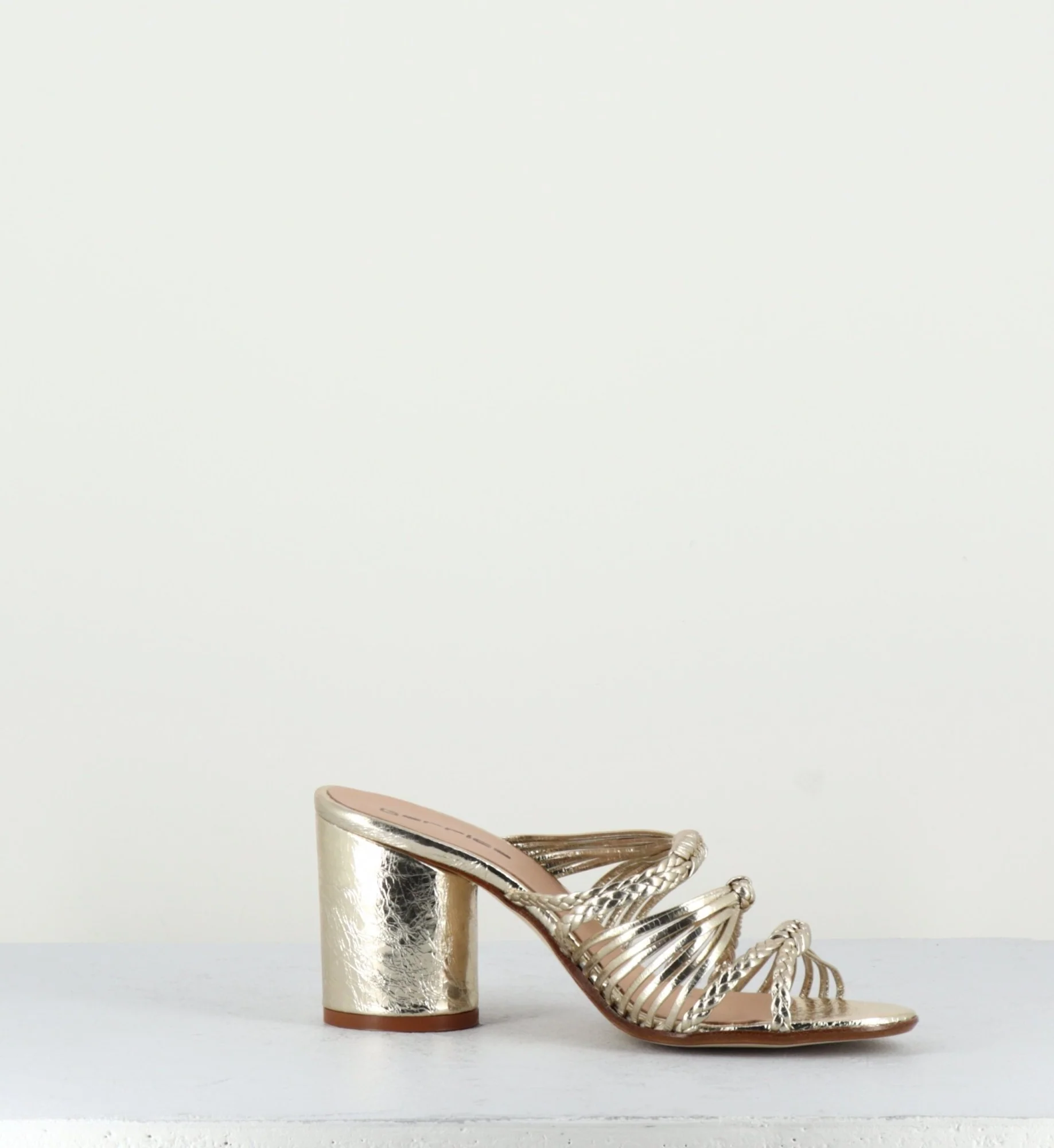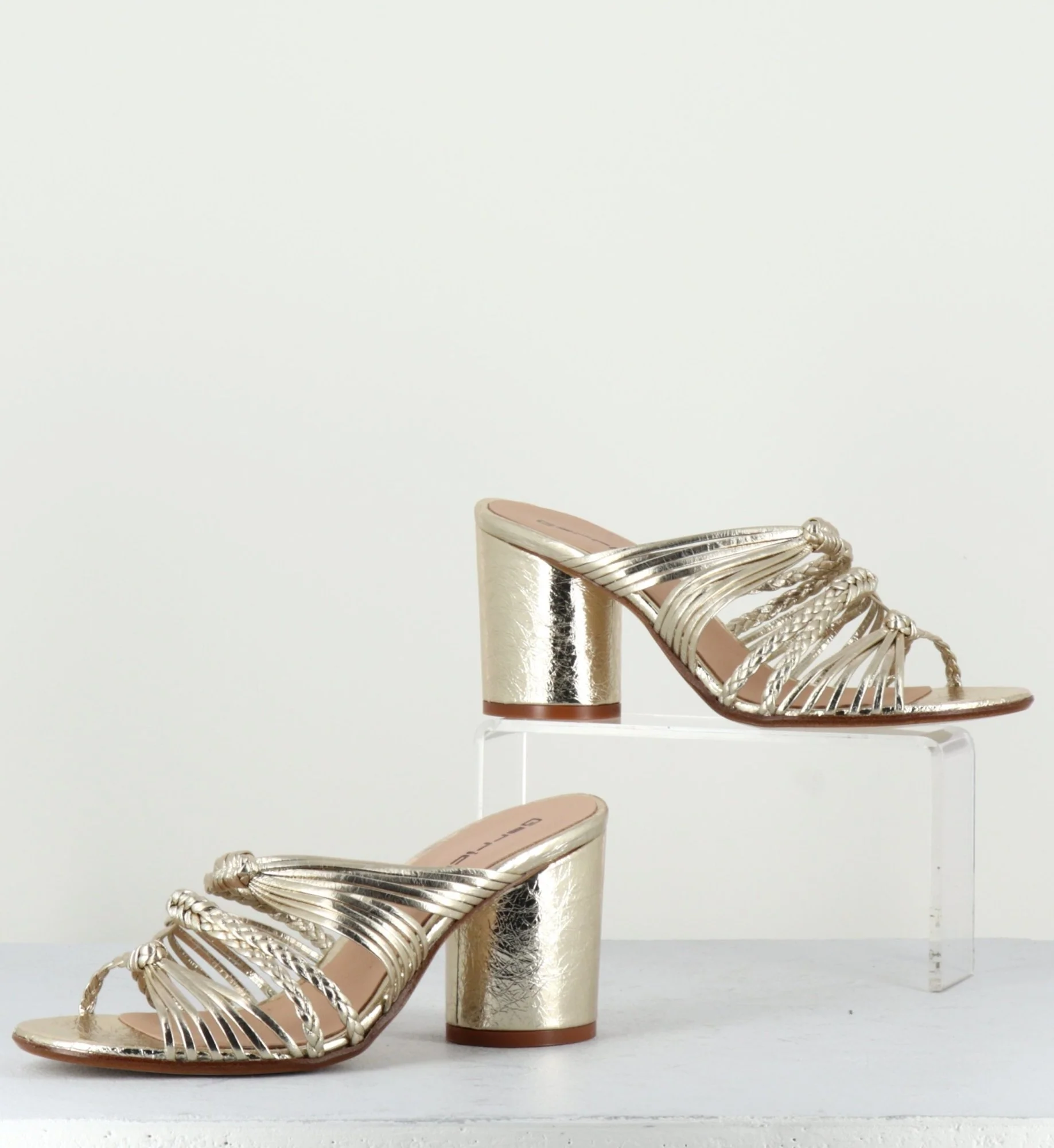 Mules en cuir tressé doré talon haut – 6931R PLATINO