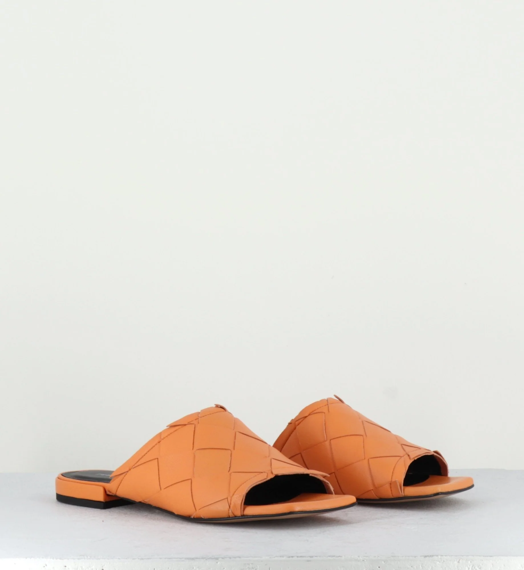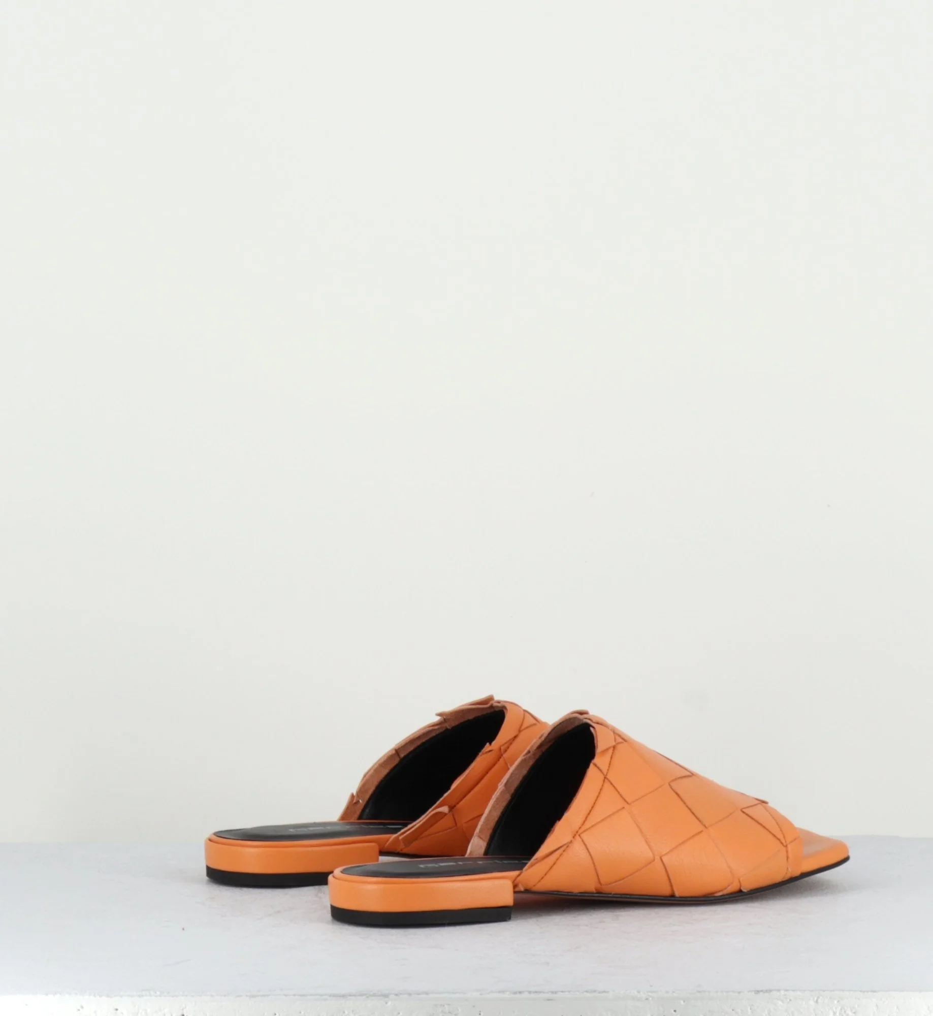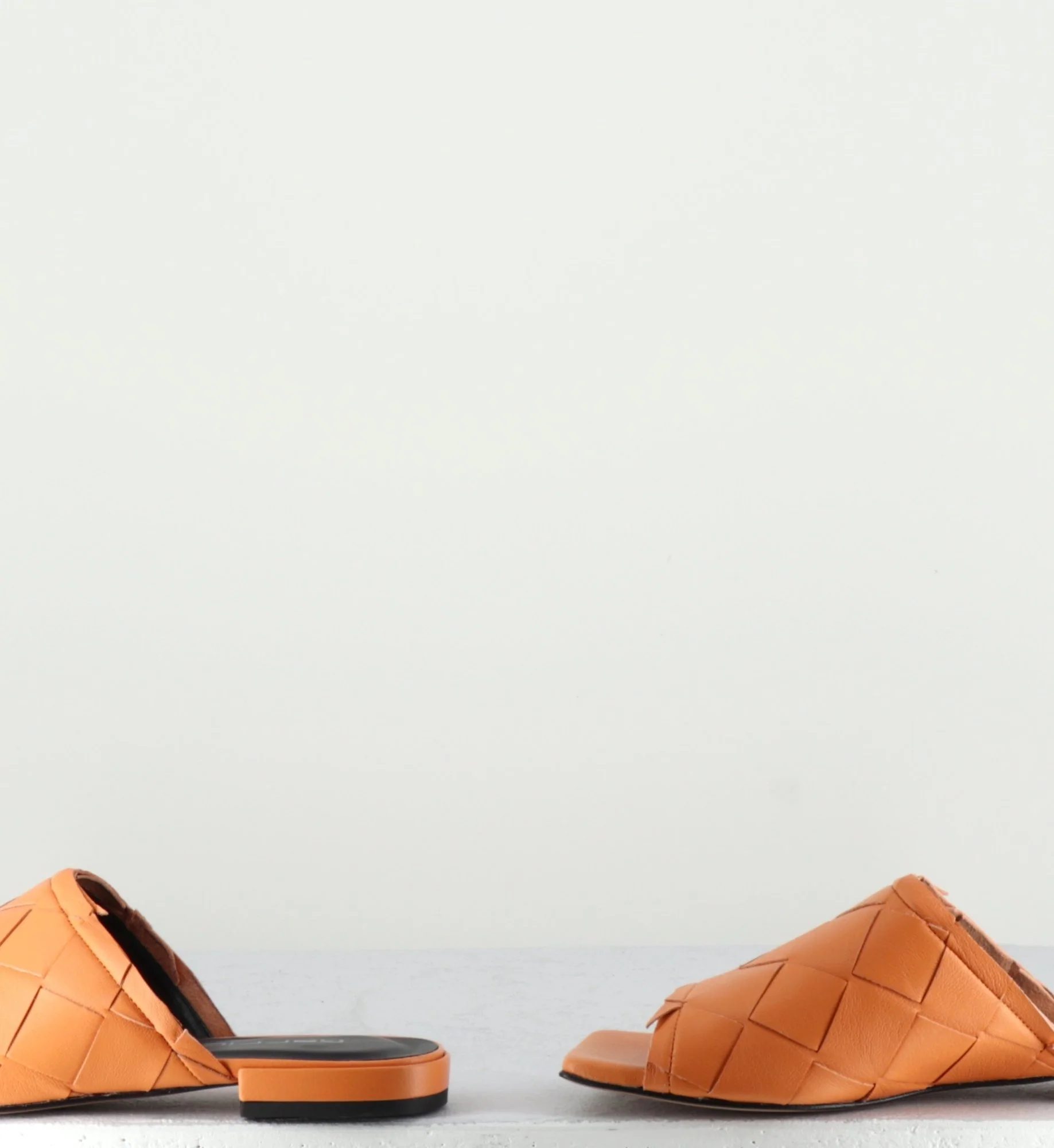 Mules – Sandales plates bout carré en cuir souple orange doux, tressé à la main Fabrication Artisanale Italienne