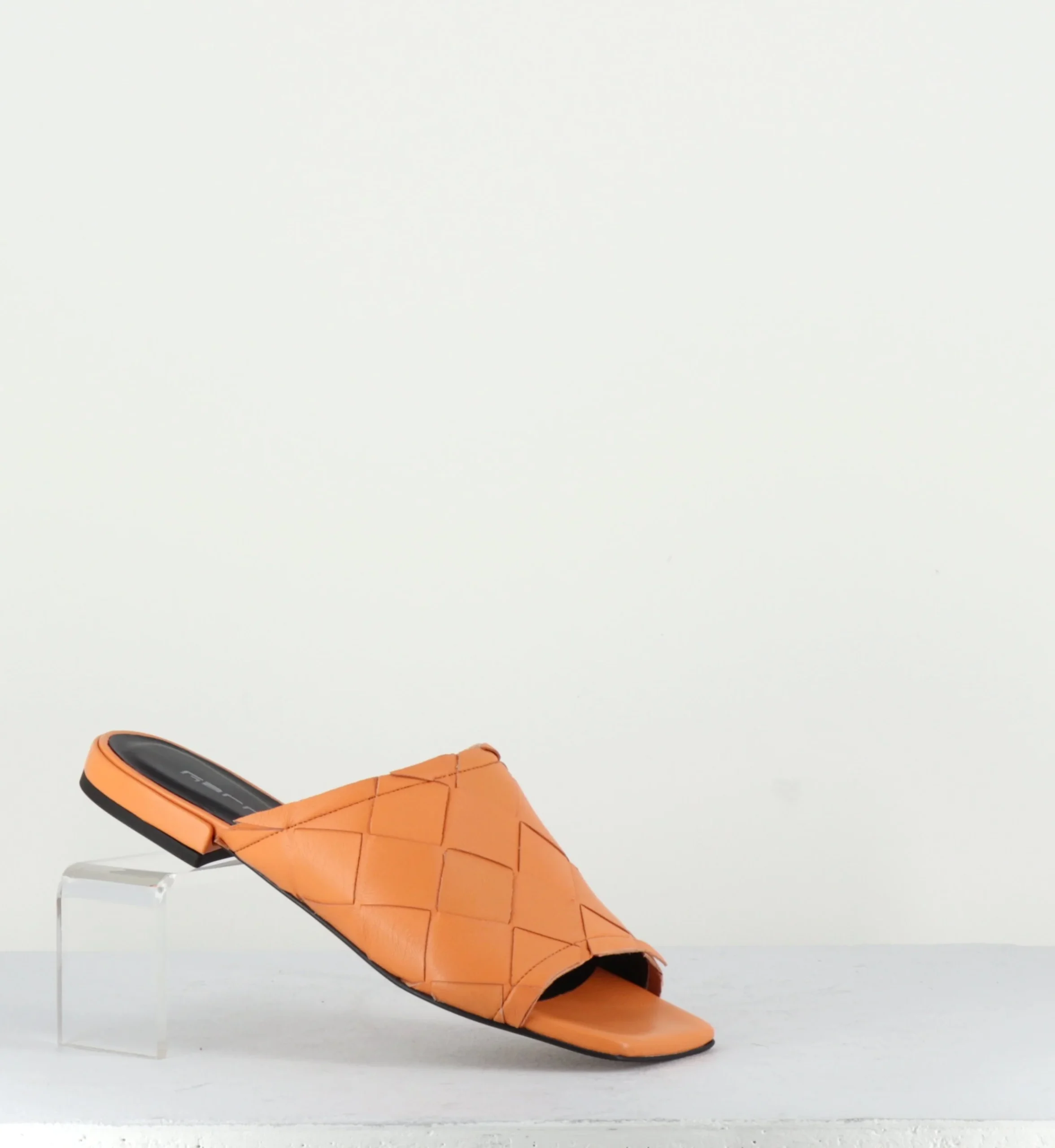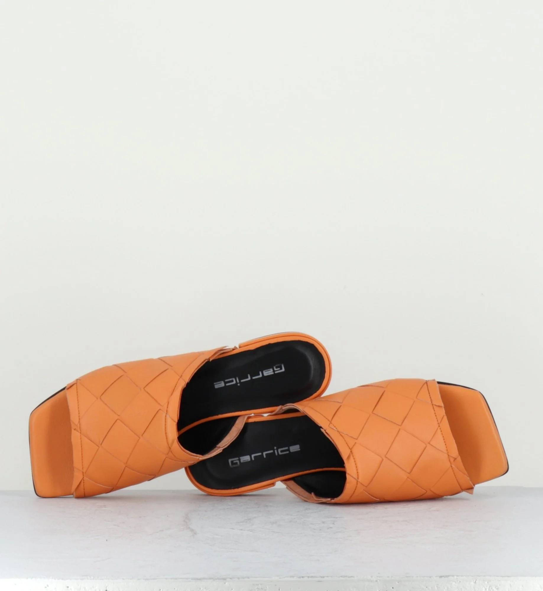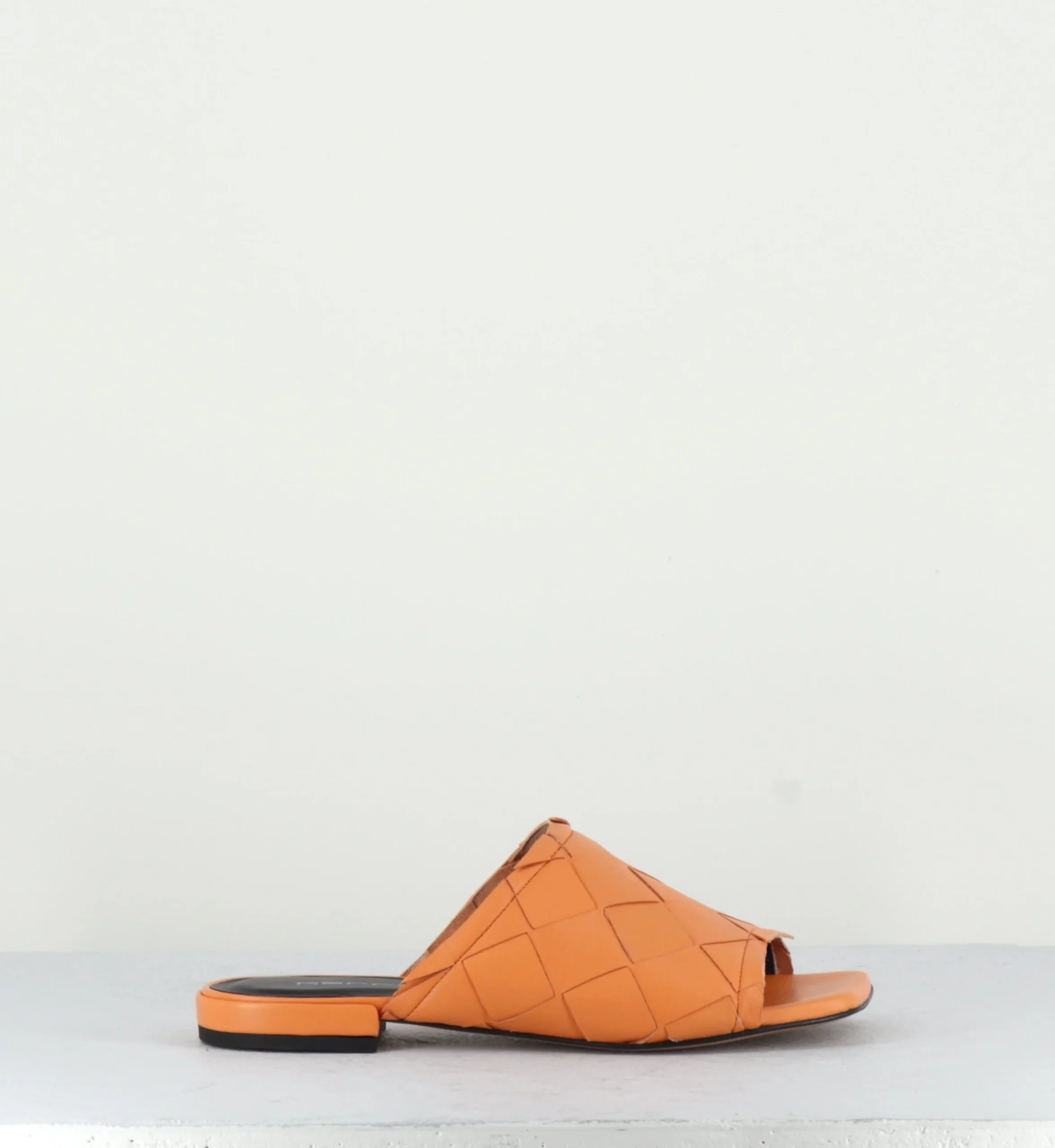 Mules – Sandales plates bout carré en cuir souple orange doux, tressé à la main Fabrication Artisanale Italienne