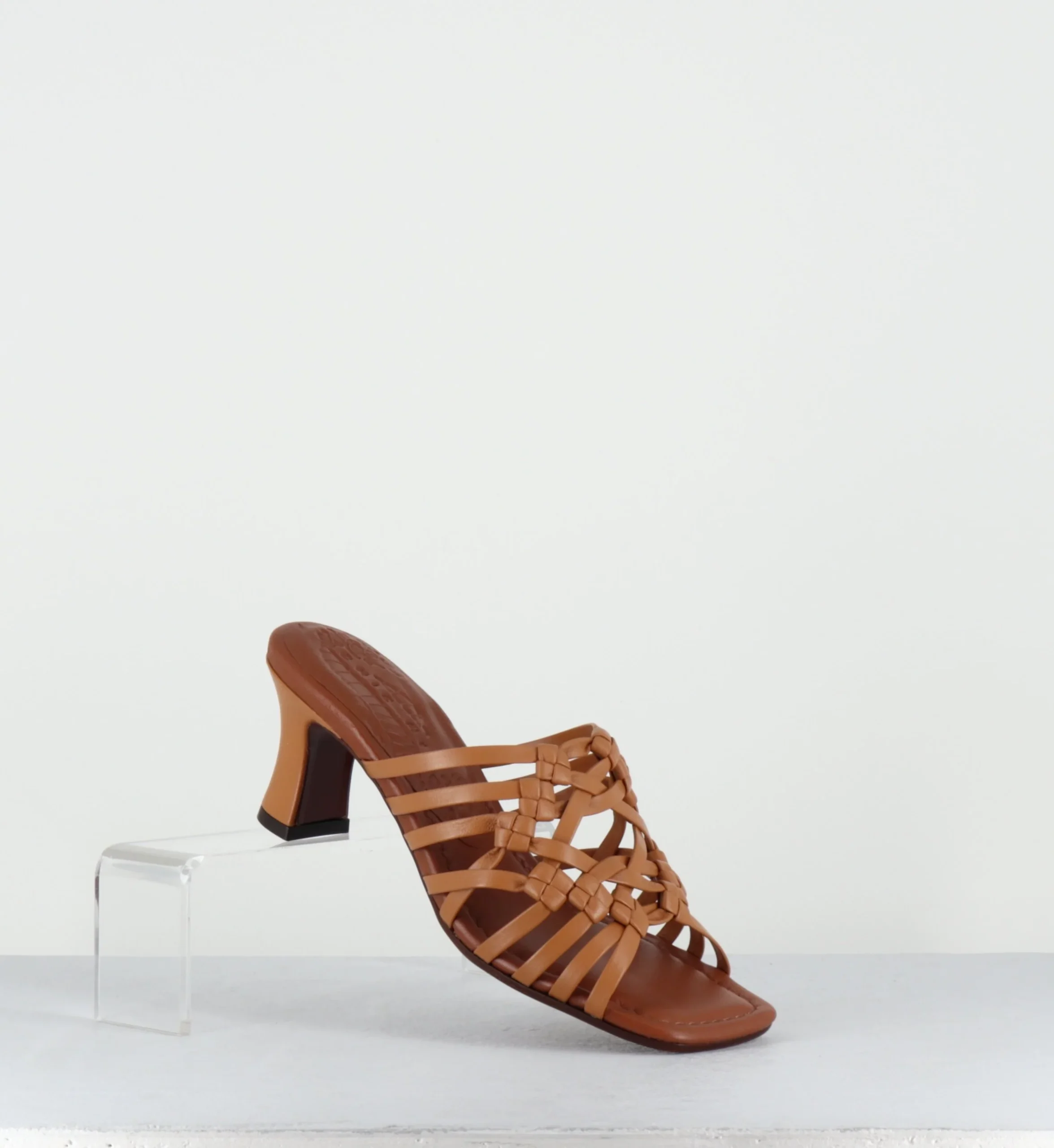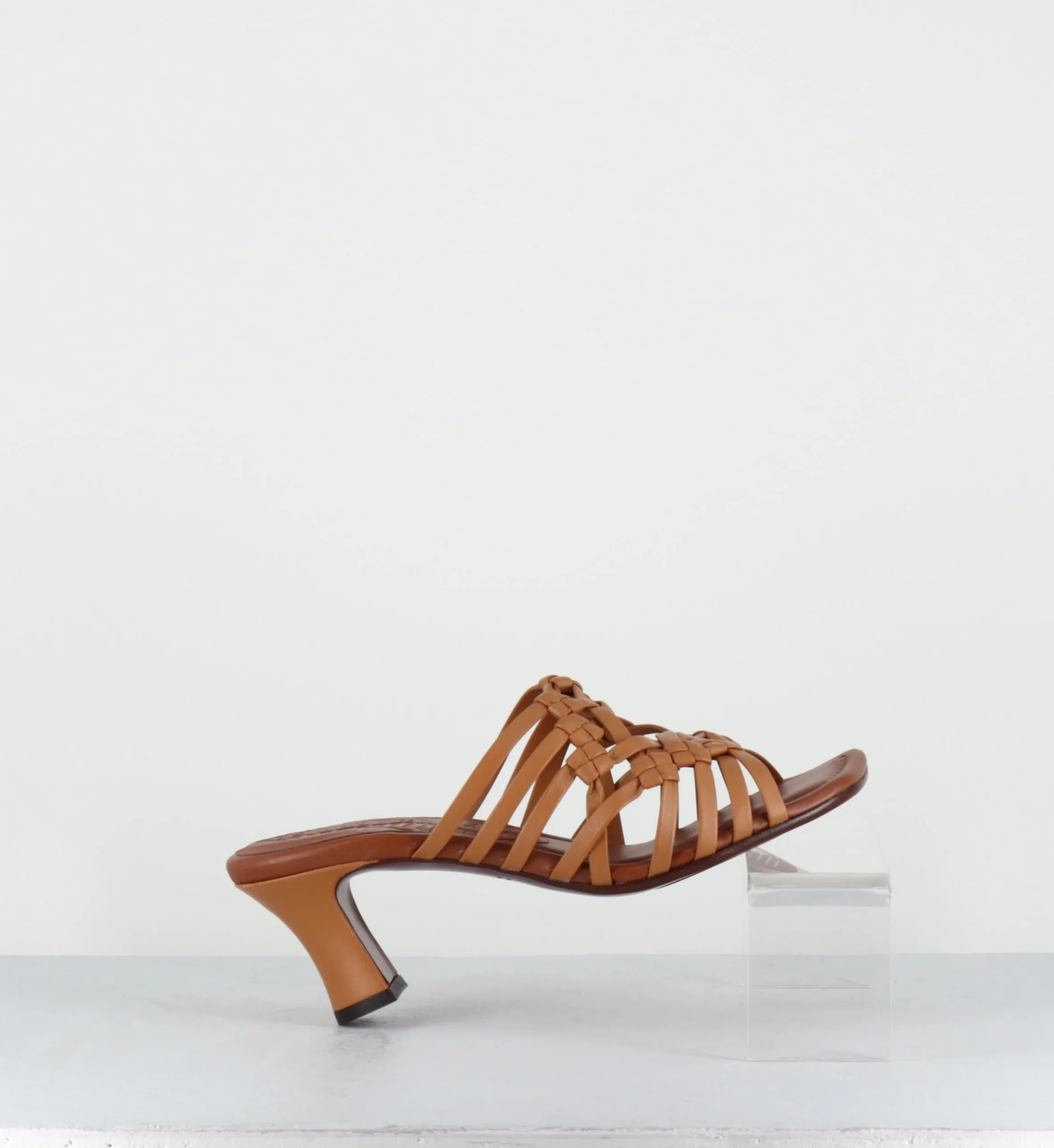 Mules petit talon rétro en cuir tressé camel – NAYLA WOVEN PEACH