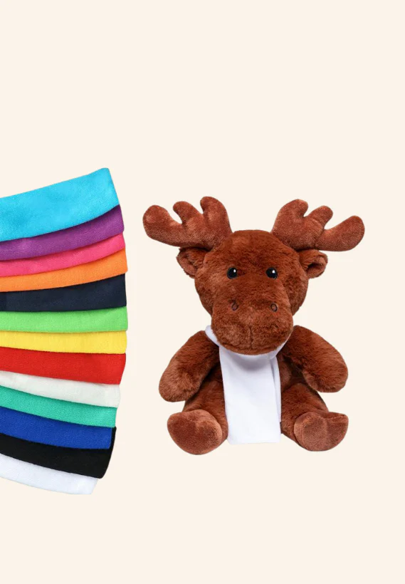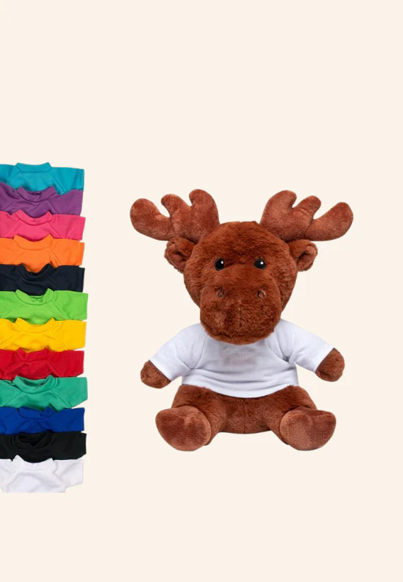 Je suis l’élan en peluche marron MBW®, fabriqué en polyester recyclé issu de bouteilles PET. Avec ma grosse tête, mes bois distinctifs et mes broderies soignées, j’apporte une touche de douceur et de fantaisie. Je suis le choix parfait pour associer communication responsable et cadeau mémorable.