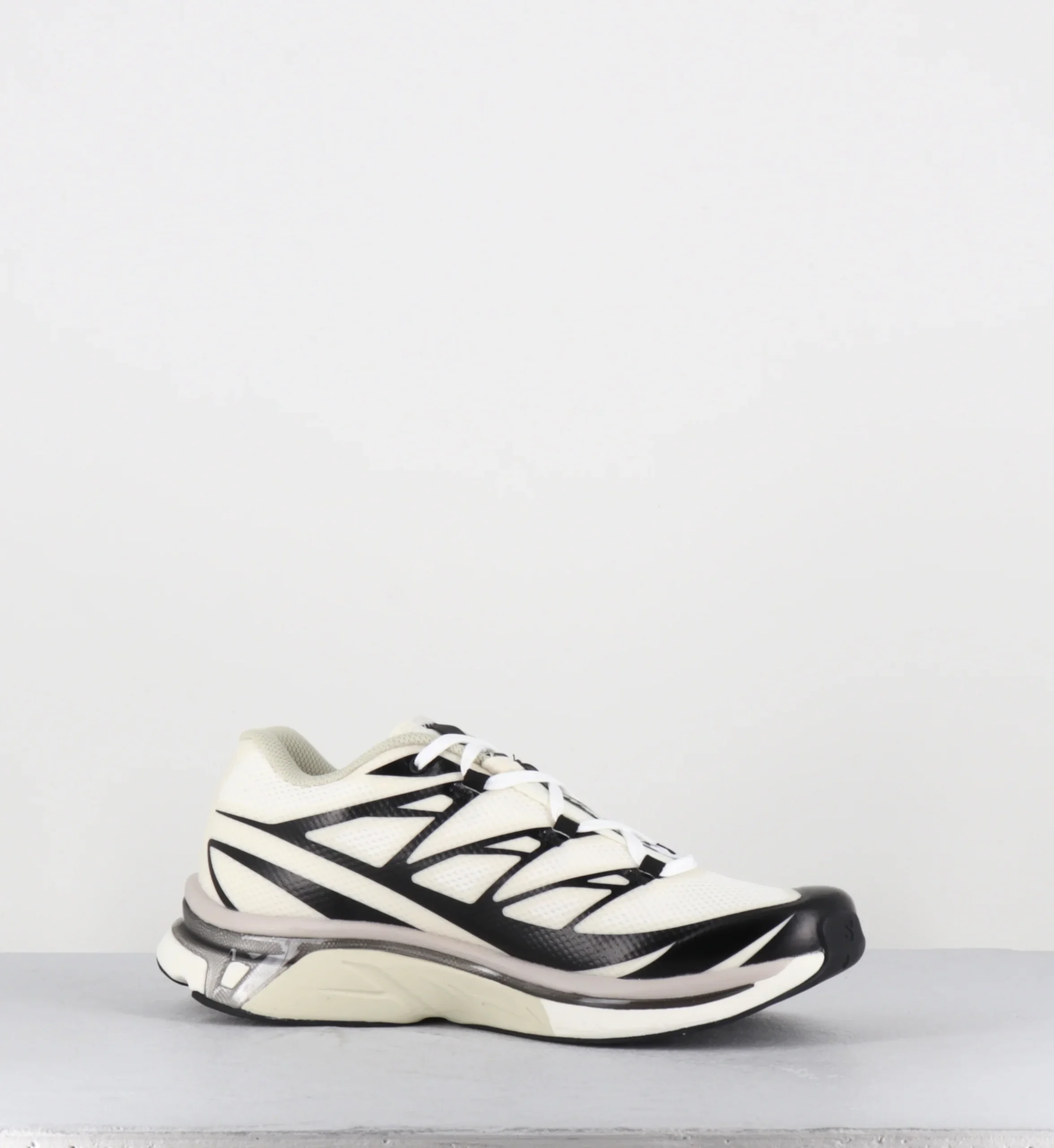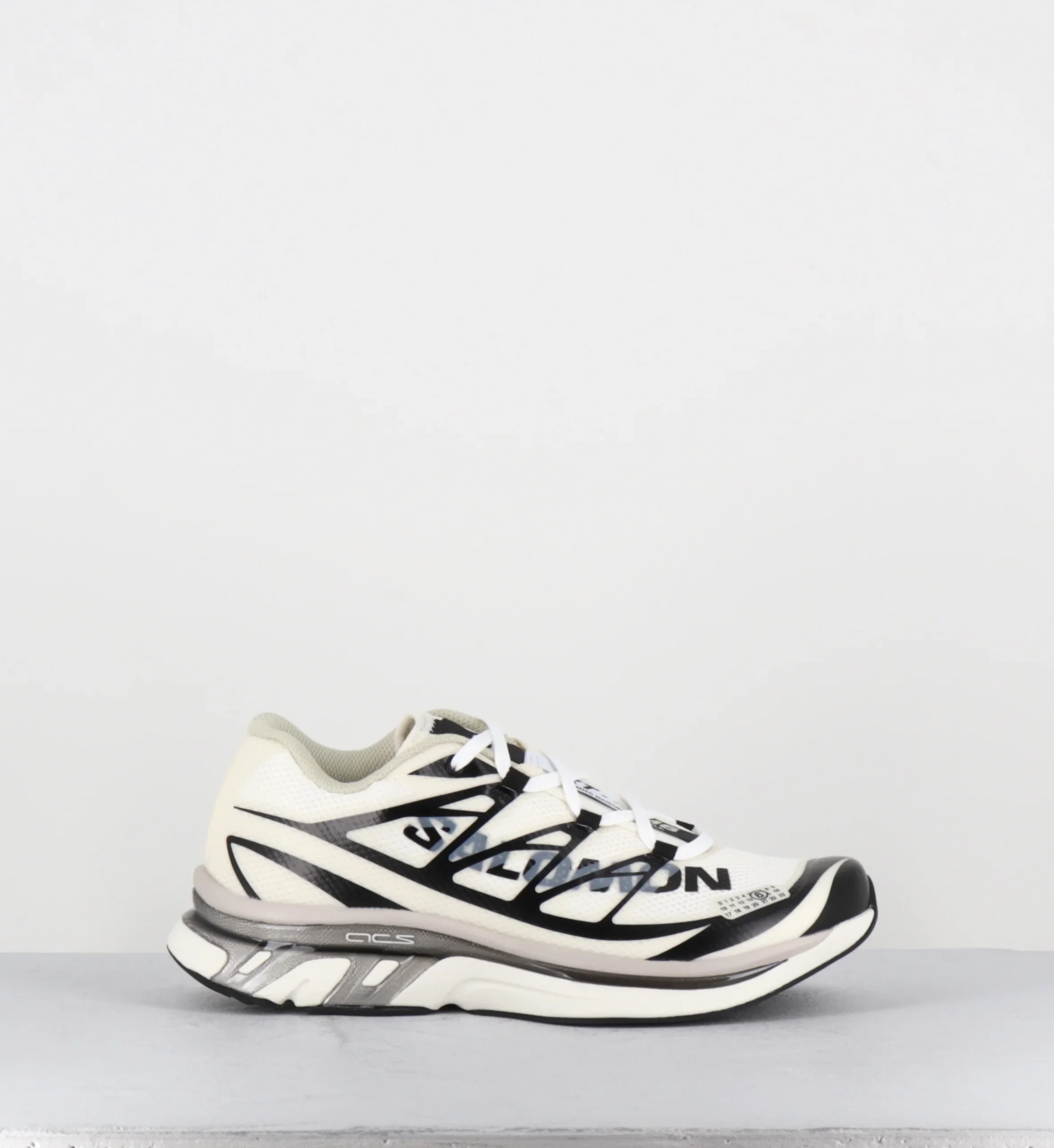 Les sneakers MM6 x Salomon XT se déclinent par une allure futuriste inspirée des années 80, leur structure technique étant contrebalancée par des superpositions contrastantes et une semelle sculptée. La maille filet légère est définie par des superpositions angulaires, affirmant l’identité hybride de cette chaussure, à mi-chemin entre fonctionnalité sportive et style urbain. Sur le côté, le motif Numeric MM6 affirme sa signature.