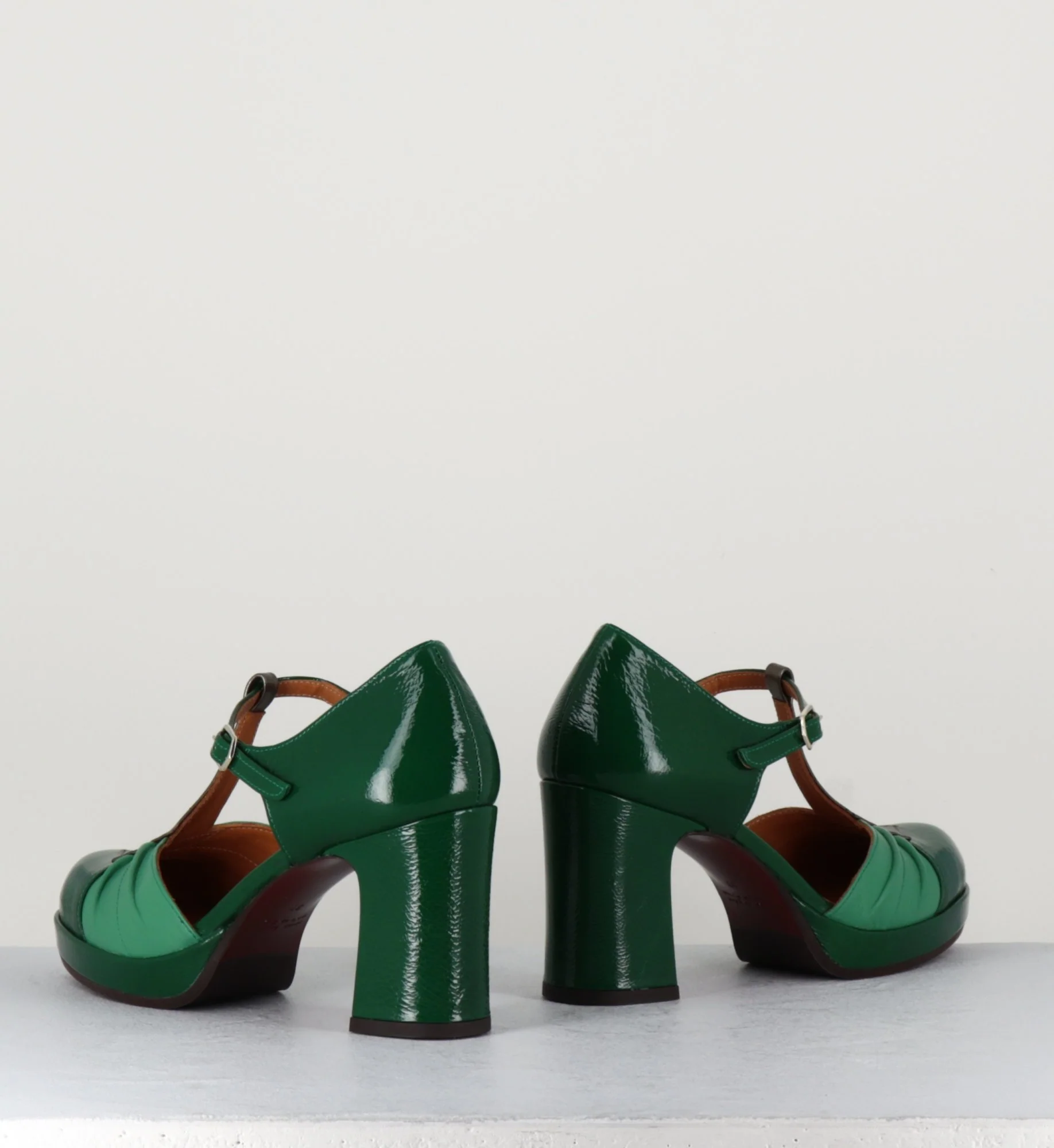 Salome à talon en cuir vernis vert – DAJUD GREEN