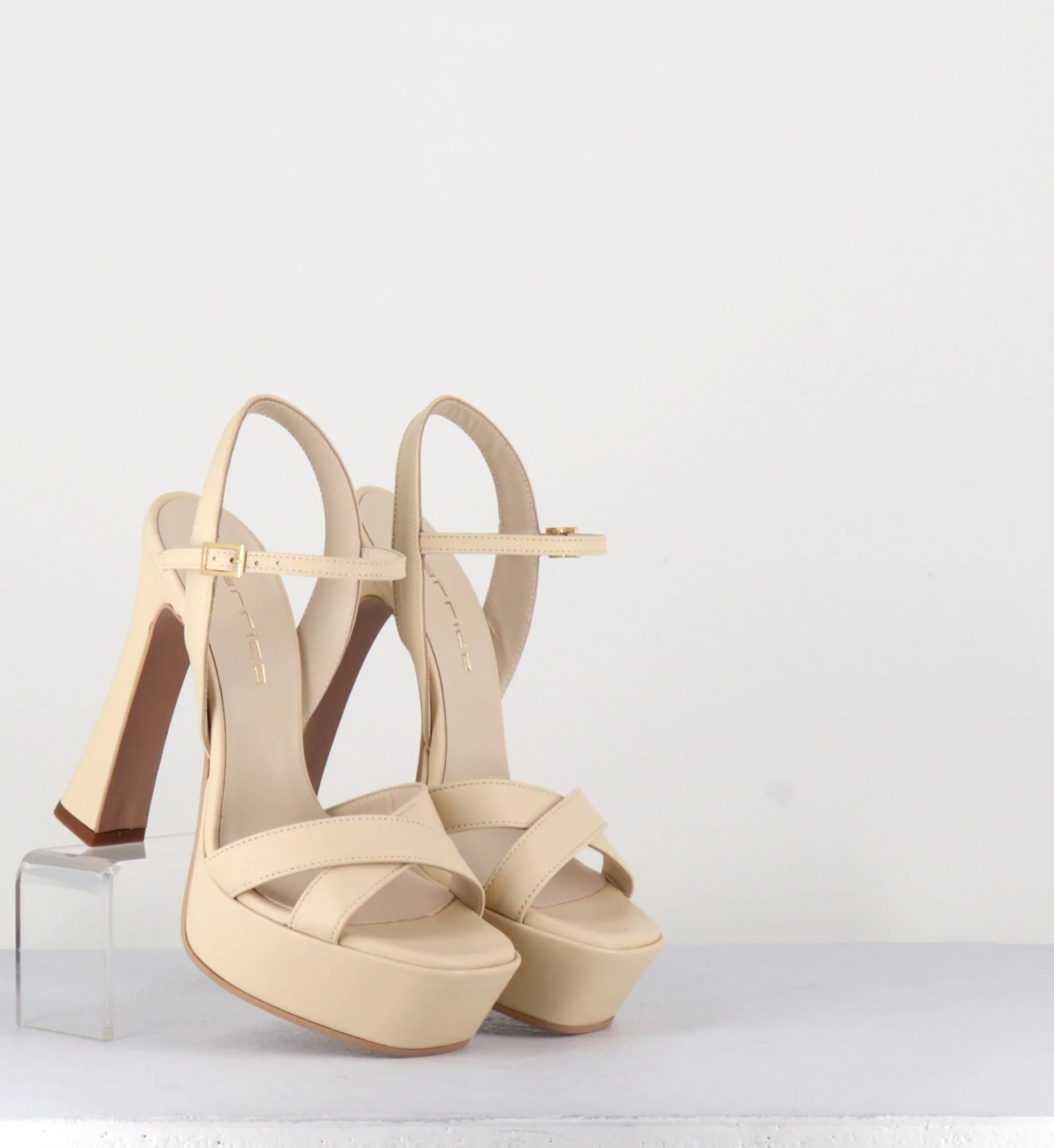 Sandale en cuir beige à talon haut – ERS5137 MARZAPANE