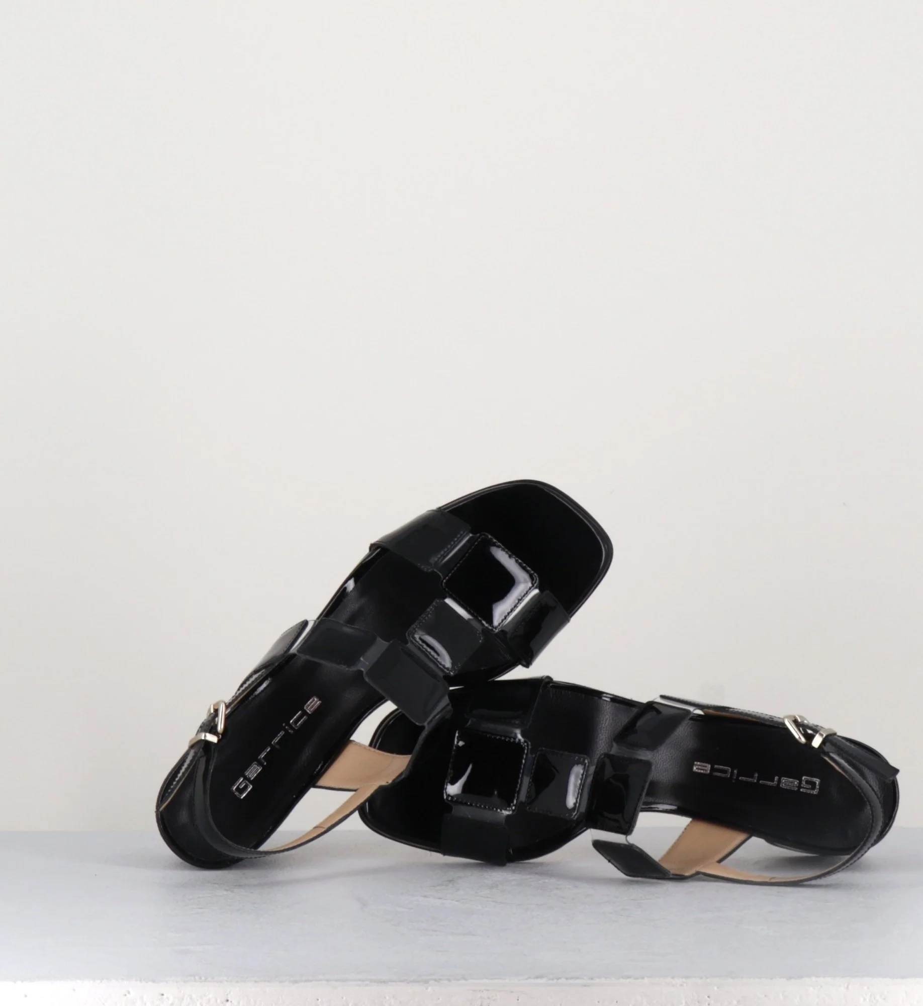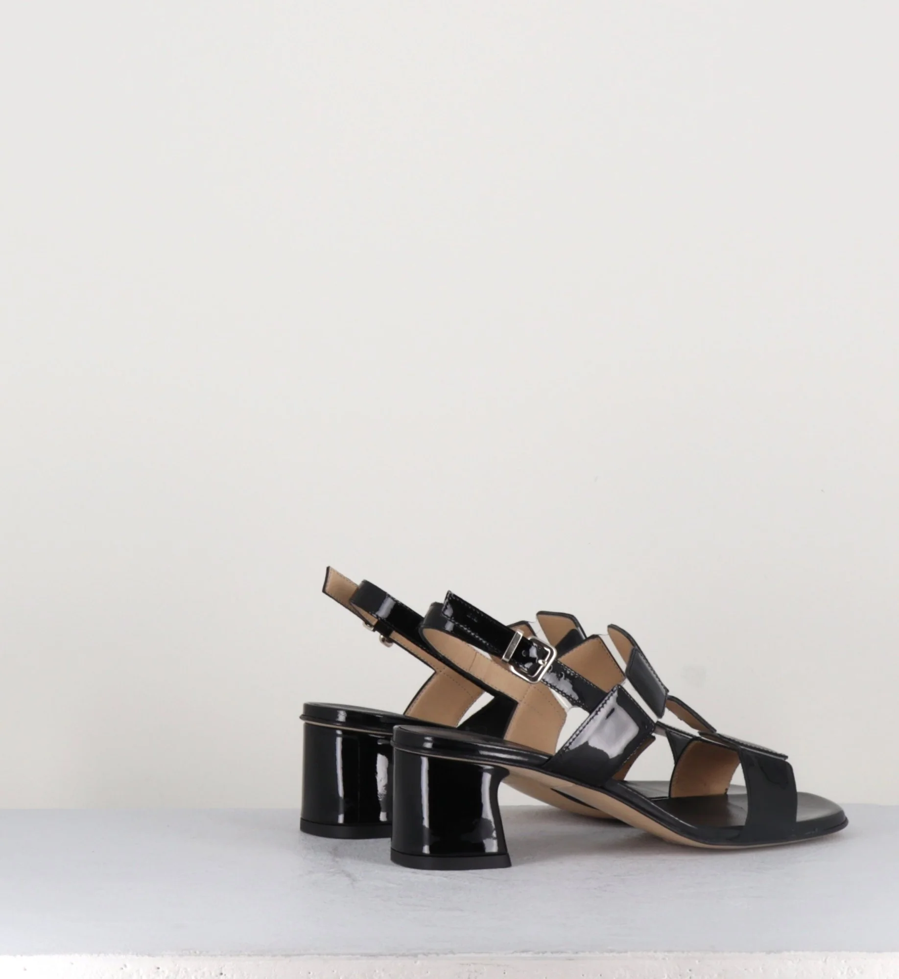 Sandales 60s bout carré en cuir vernis noir – LEFAI2 VERNICE NERO