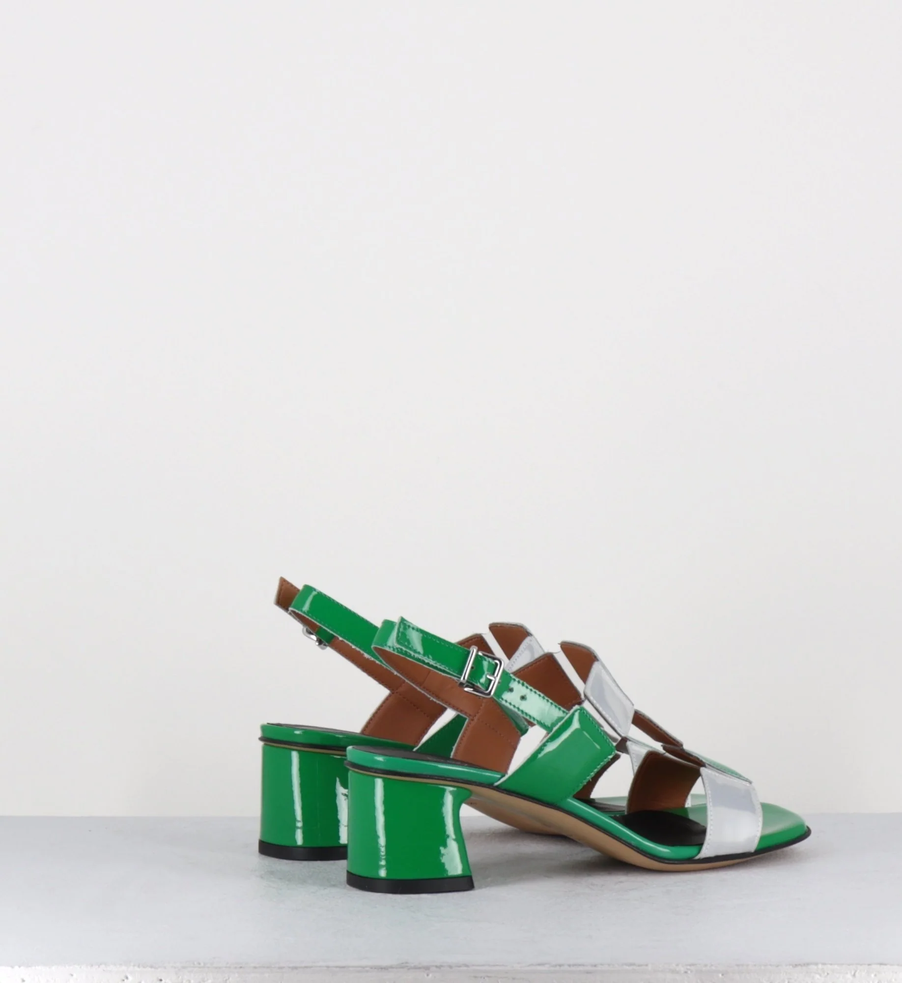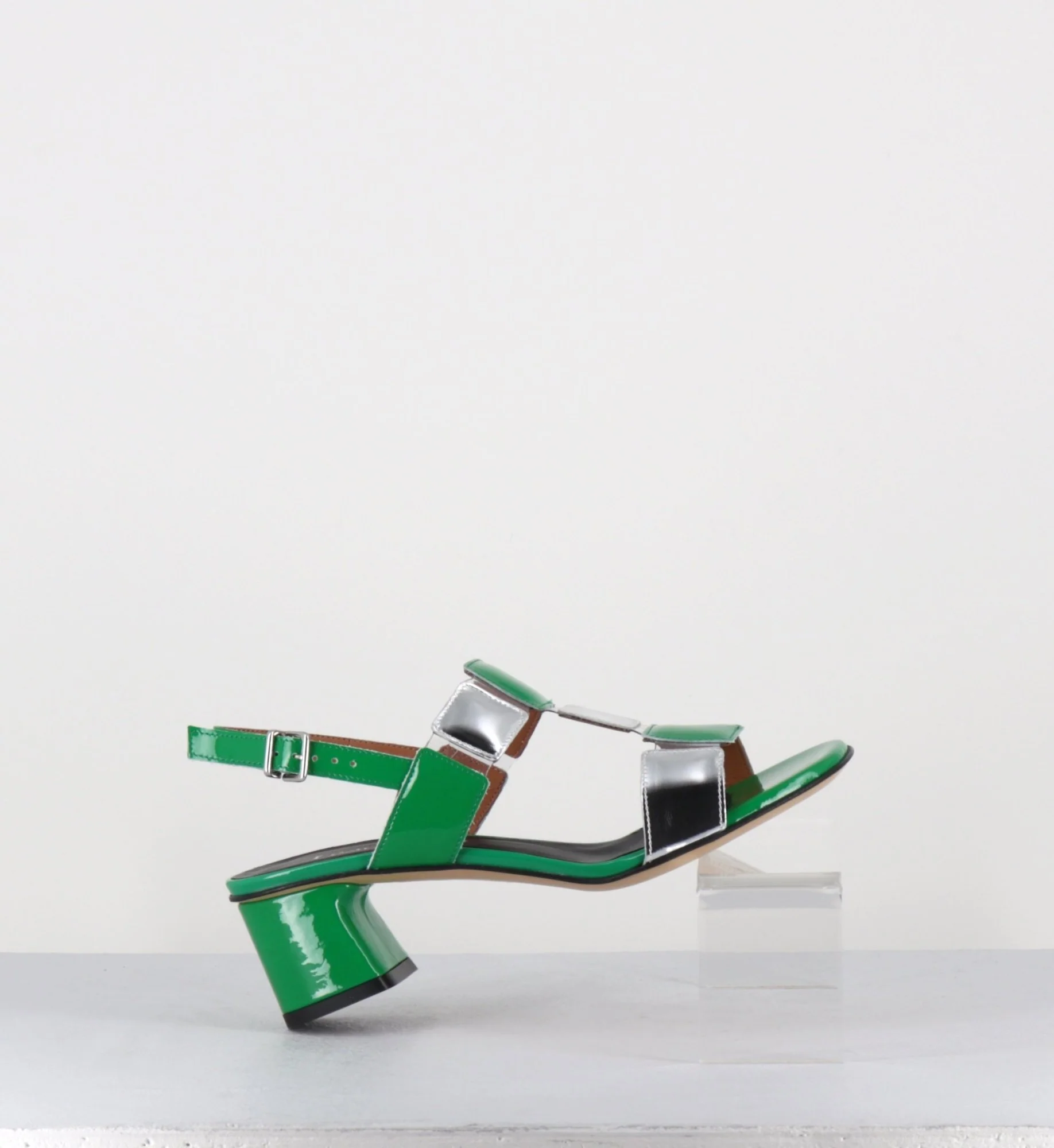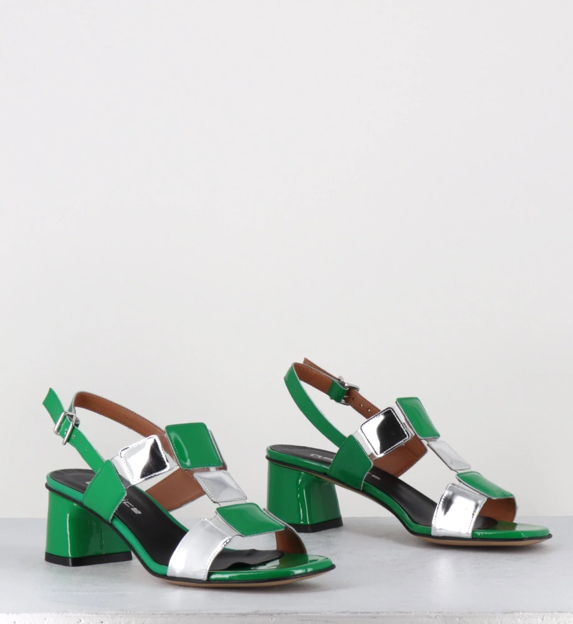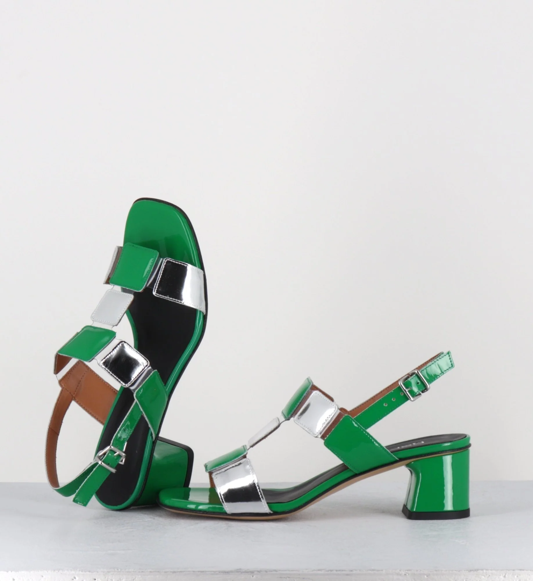 Sandales 60s bout carré en cuir vernis vert & argent – LEFAI7 VERDE ARGENTO